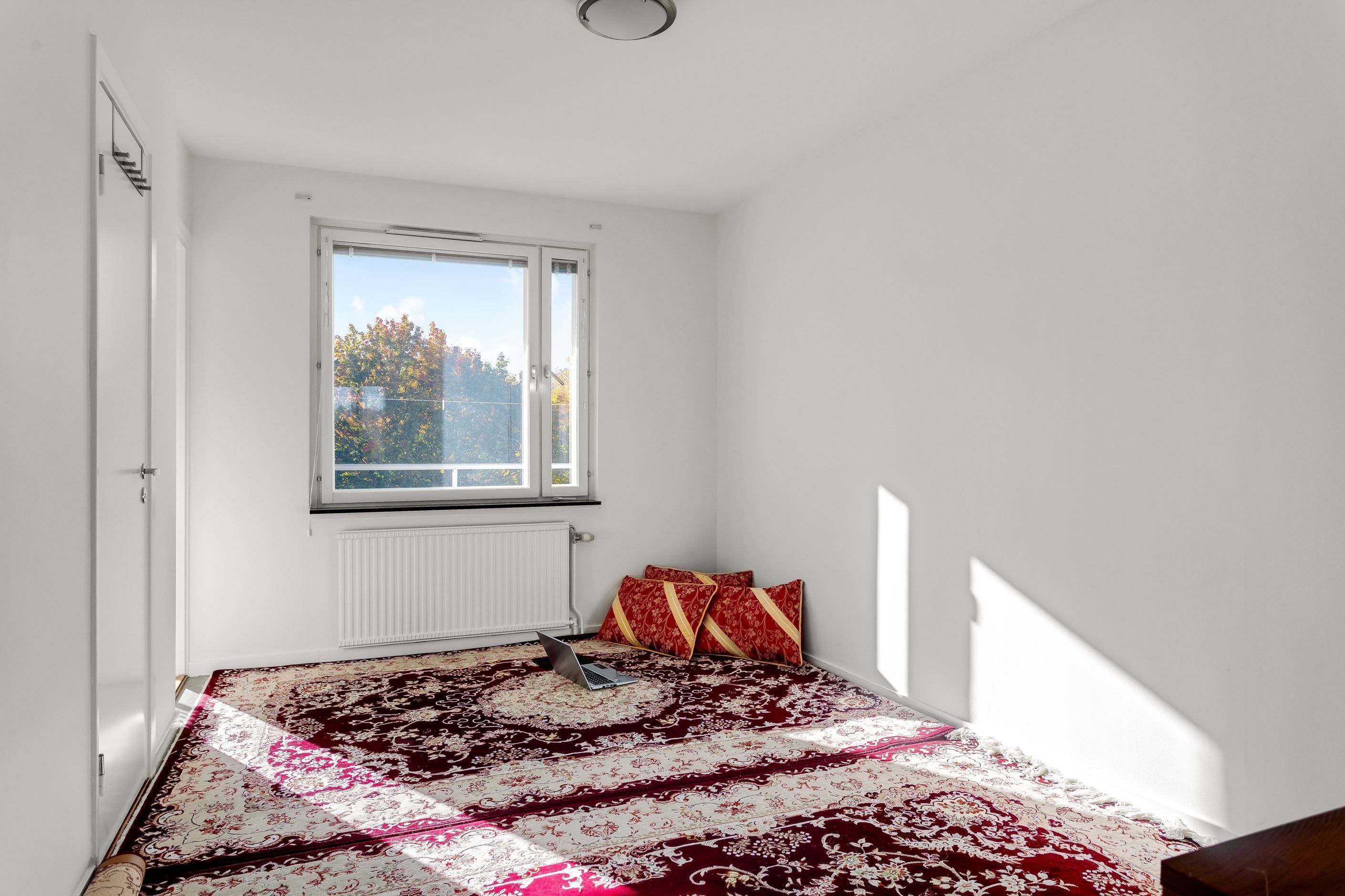 Helt nymålad lägenhet, och stambytt badrum och wc! Äntligen en 4:a till salu, med soldränkt balkong i söderläge och en fantastisk utsikt över den grönskande innergården i populära Brf Jaktflyget. Här bor du helt ostört högst upp i huset, och med kort gångavstånd till Barkarby station med pendeltåg och bussar, men som inom kort blir Stockholm Väst när även tunnelbanan börjar trafikera området. Lägenheten är välplanerad med 3 sovrum av bra storlek, ett stort vardagsrum, kök med matplats samt ett badrum och en separat wc, båda renoverade och stambytta.
