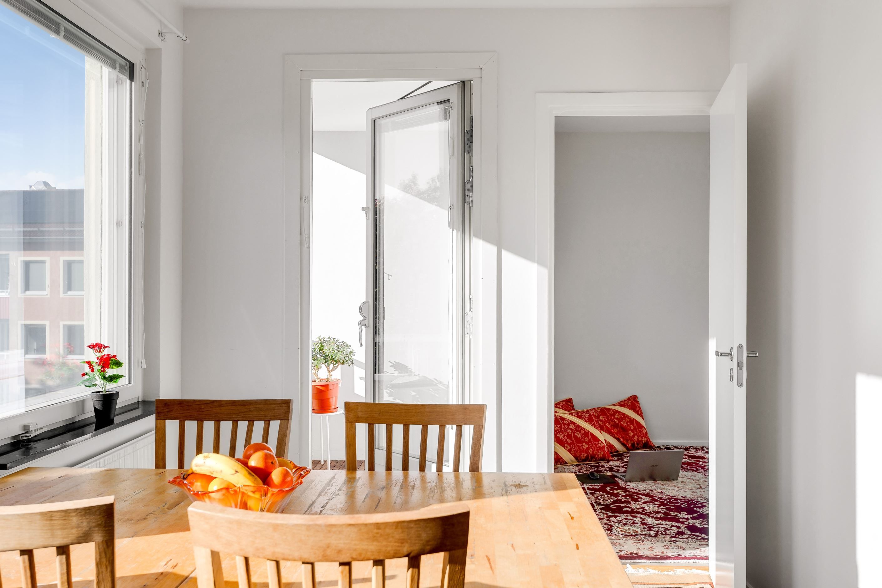 + Soldränkt balkong i söderläge och utsikt mot innergården