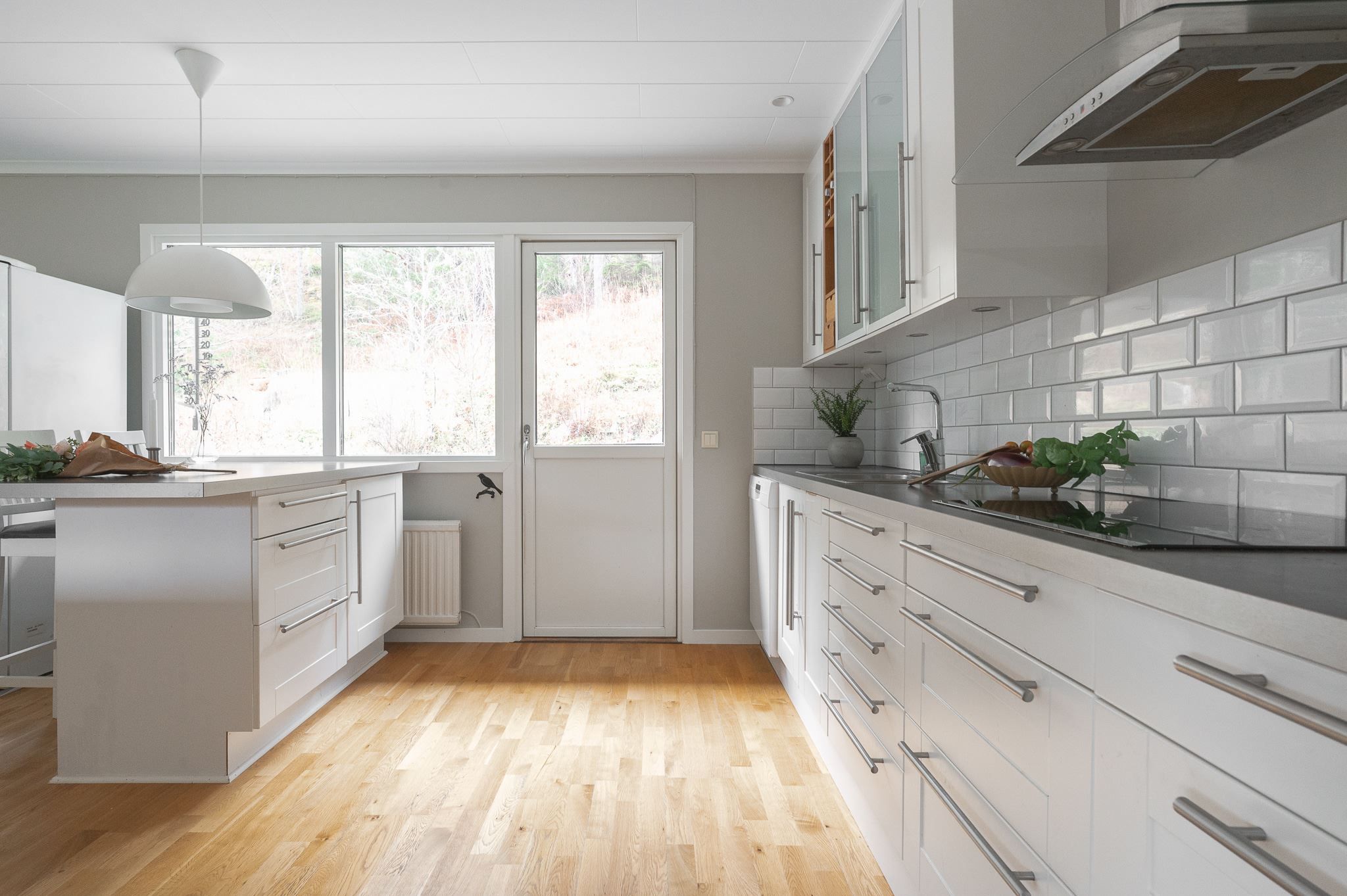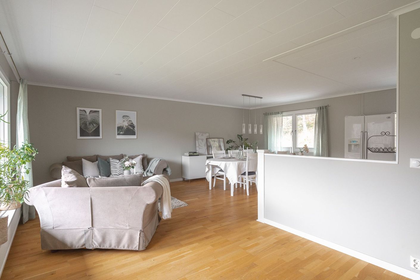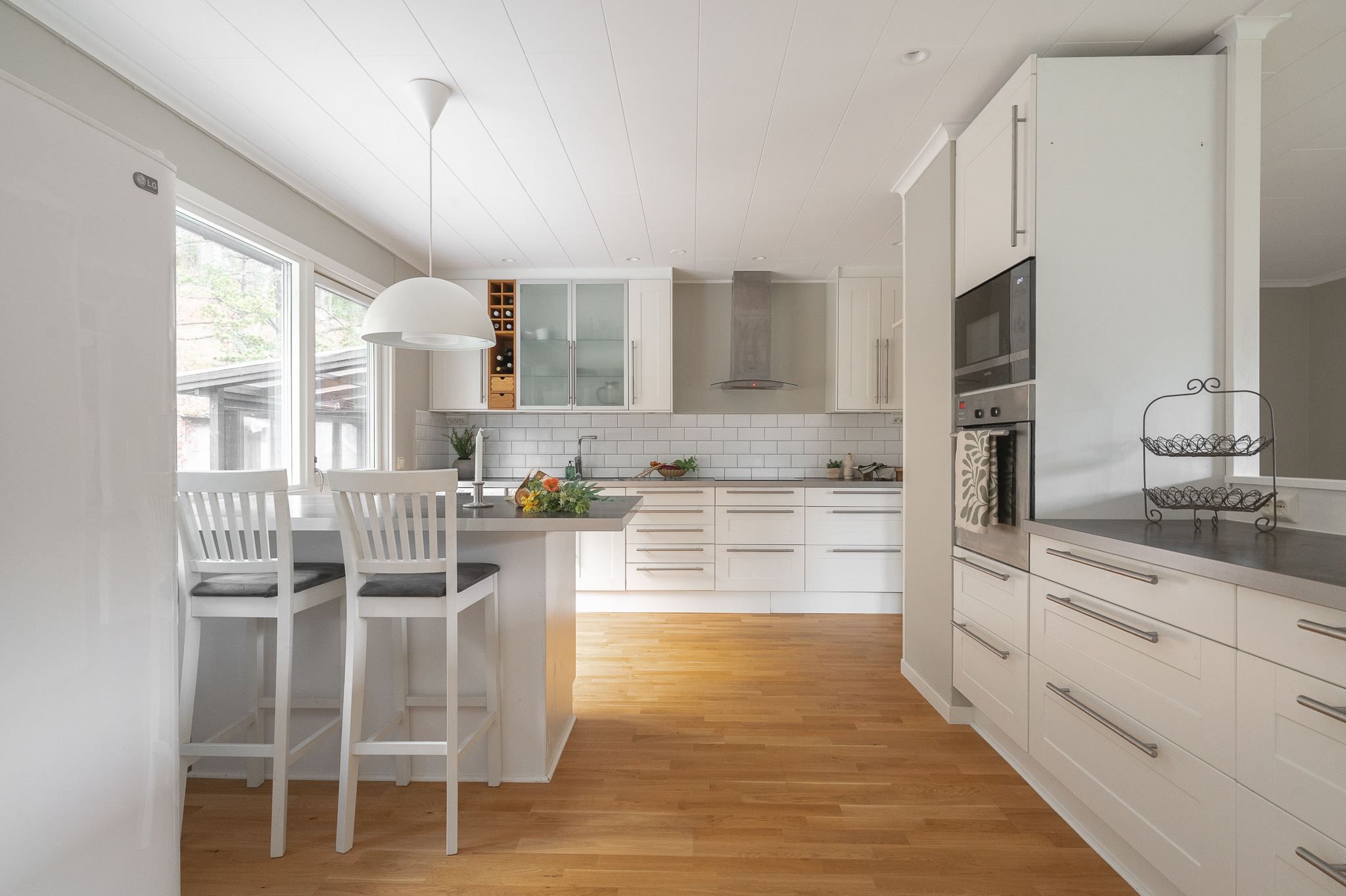 Huset erbjuder en genomtänkt planlösning med stora fönster som släpper in rikligt med ljus och suddar ut gränsen mellan inne och ute. Köket och vardagsrummet binds samman av en öppen, social yta som passar både vardagsliv och fest. På entréplan finns även ett mysigt allrum med öppen spis som höjer trivselfaktorn.