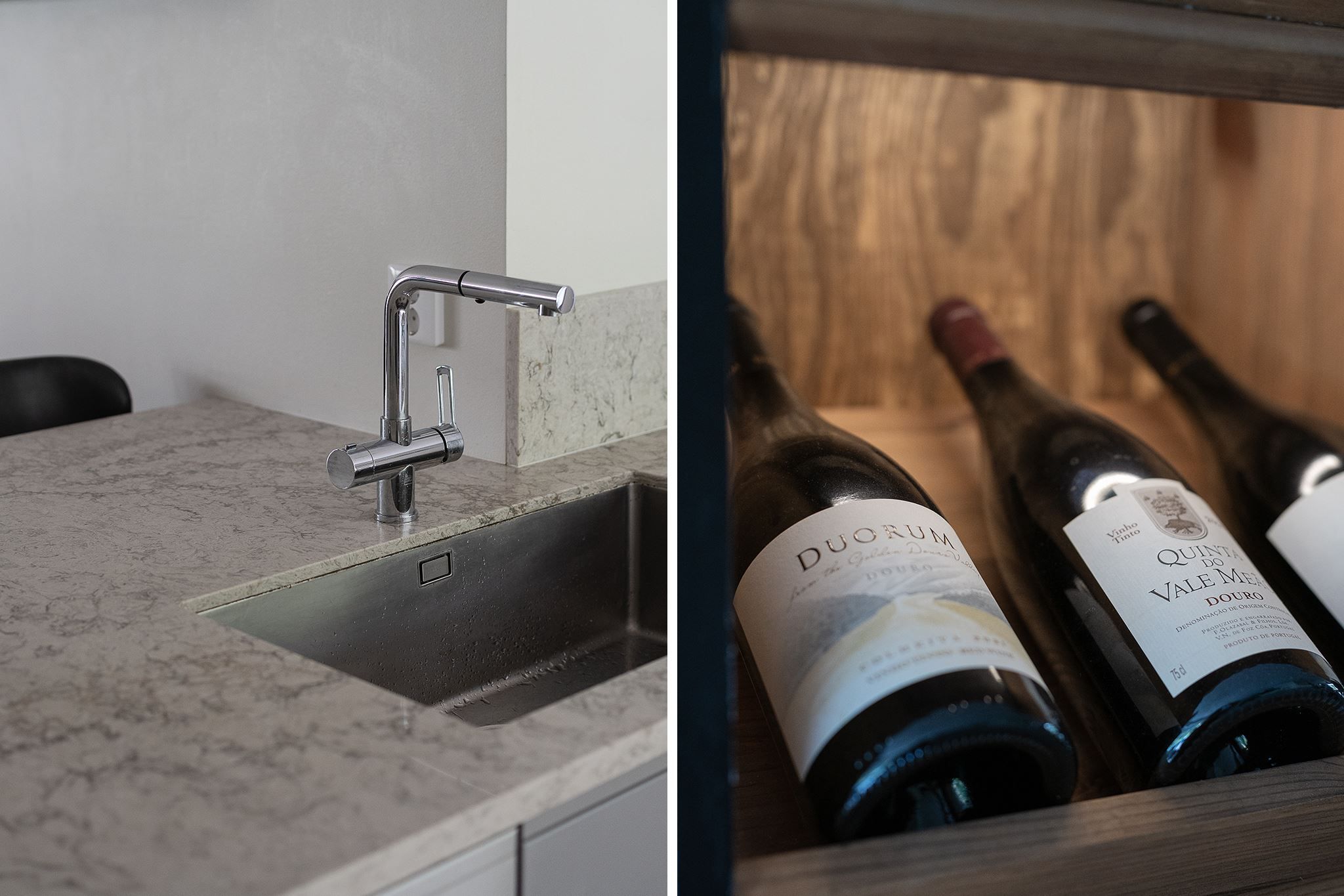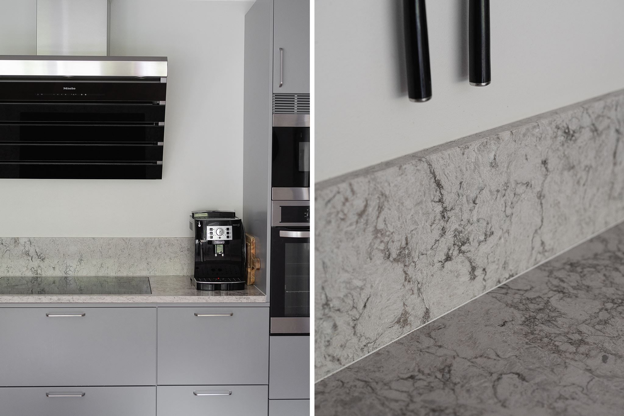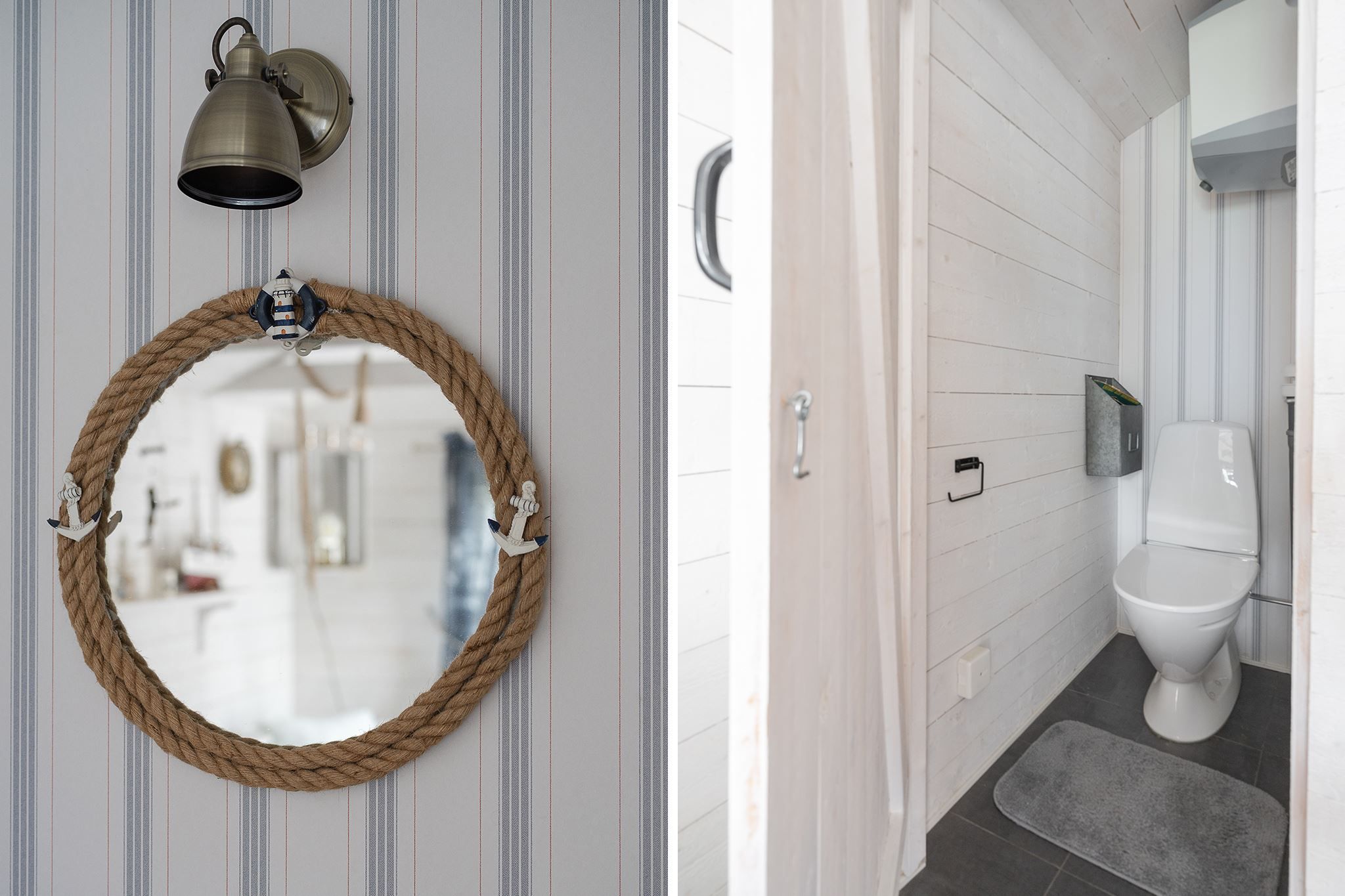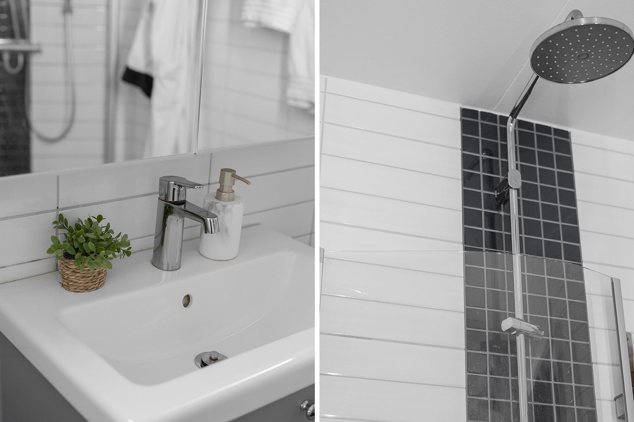 Tvättstugan nås smidigt både från köket och via en egen utgång mot framsidan. Tvättmaskin från Miele och torktumlare från Huskvarna är placerade under en rymlig arbetsbänk som ger gott om yta för vikning och sortering. En tvättho underlättar grovtvätt och städmoment, samtidigt som välplanerade skåp och generösa ytor för klädhängning gör det enkelt att hålla ordning. Här återfinns även husets centraldammsugare samt ett praktiskt förråd/skafferi som ger extra förvaring för både hushållsartiklar och förnödenheter.