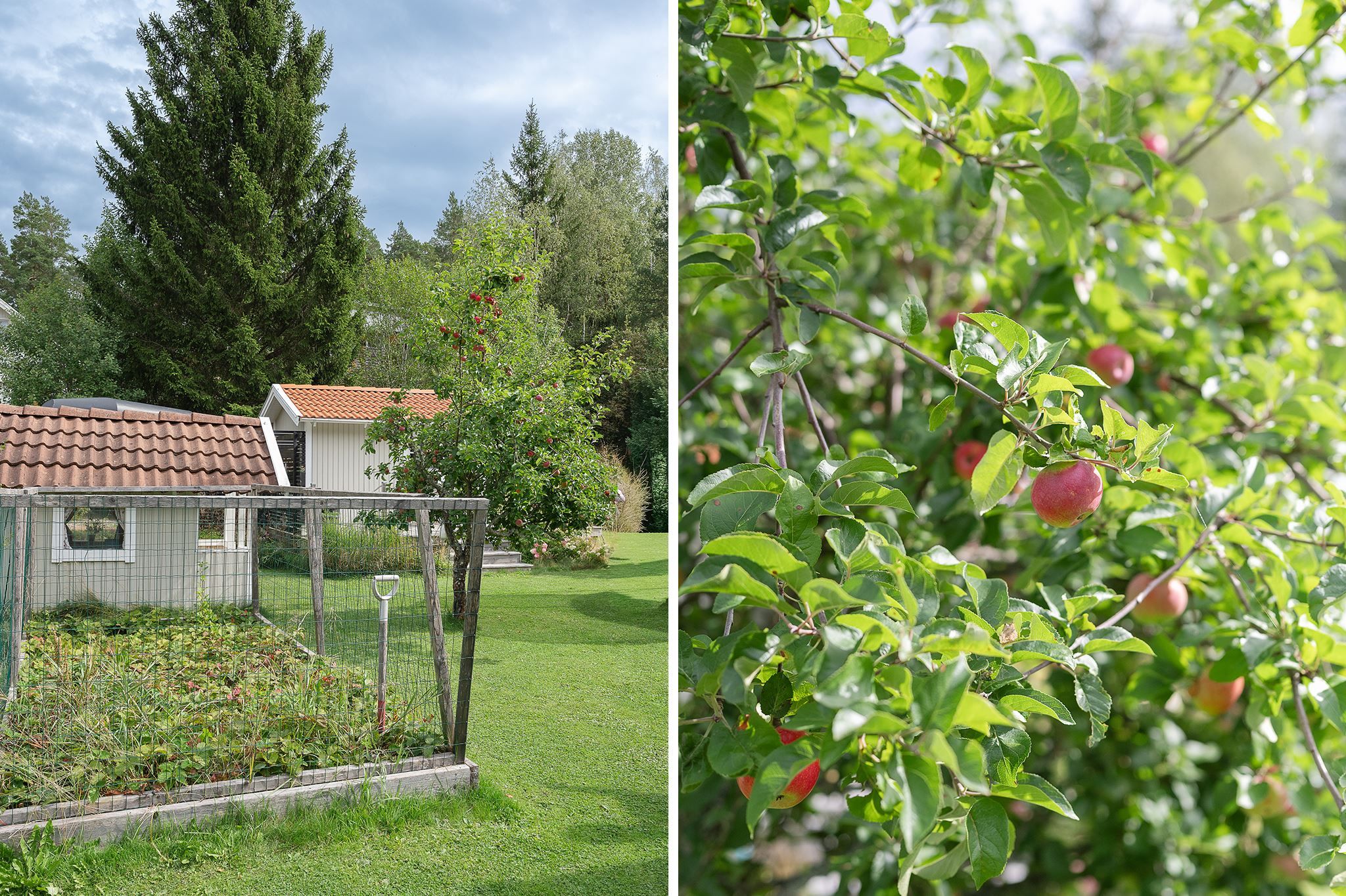 Trädgården är minst lika inbjudande som huset. Ett generöst trädäck binder samman bostaden med bastubyggnaden och erbjuder många härliga platser i solen. Här finns även ett Hydropool-spabad med selfcleaner och plats för hela familjen, vackert inramat av stämningsfull belysning. Bastubyggnaden rymmer en egen relaxdel, separat wc och dusch samt en rymlig bastu, vilket gör den till en privat spa-oas. På tomten finns också en isolerad friggebod med snickarbänk som även kan användas som gästrum, en charmig lekstuga för de yngre och ett växthus. De plana gräsytorna gör trädgården både vacker och lekvänlig.