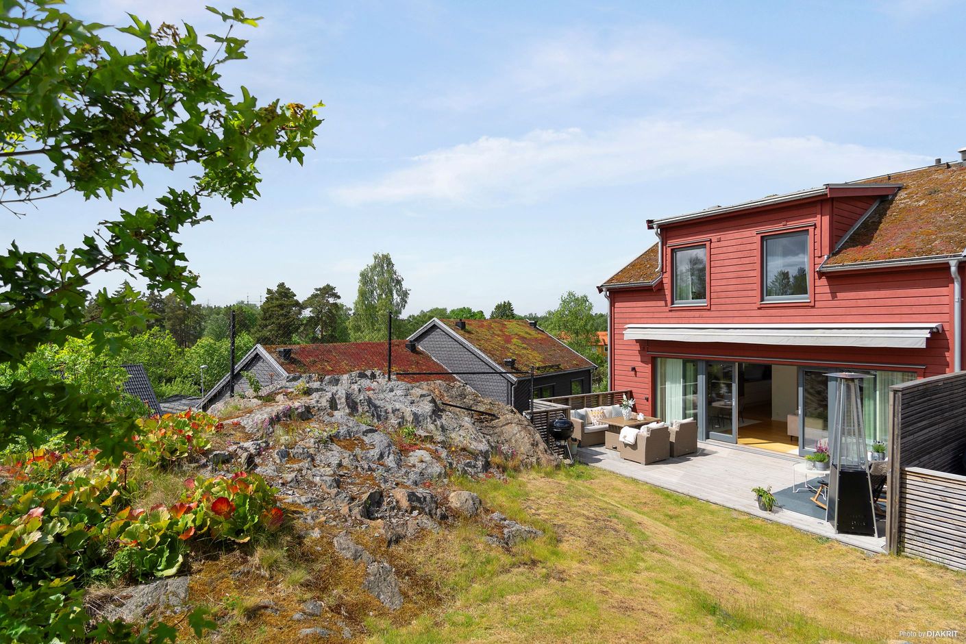 Unik Chans! Välkommen till detta stora och exklusiva bostadsrättsparhus i tre plan, med egen tomt med gräsytor med plats för lek samt stor trädäckad altan/terrass i söderläge!