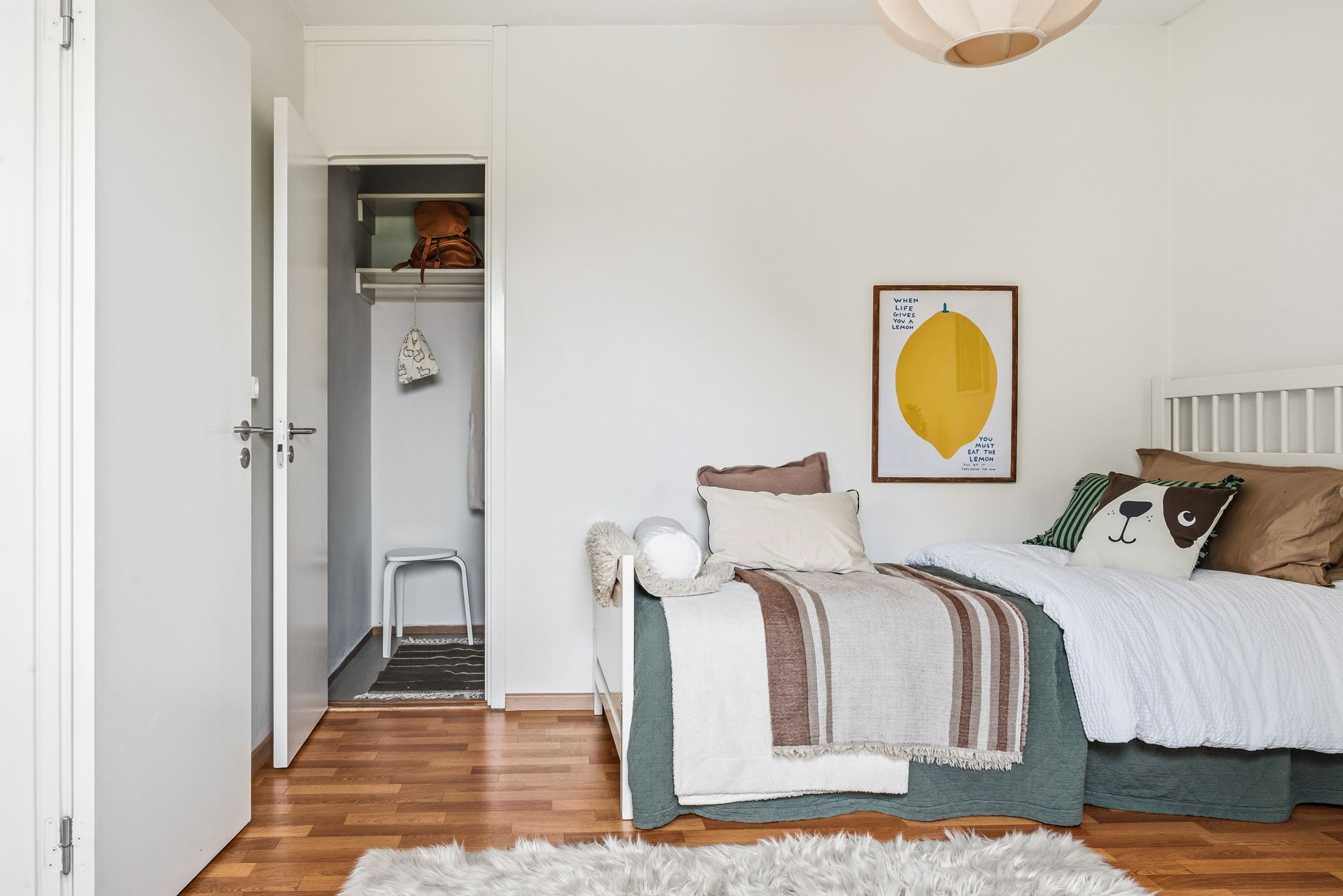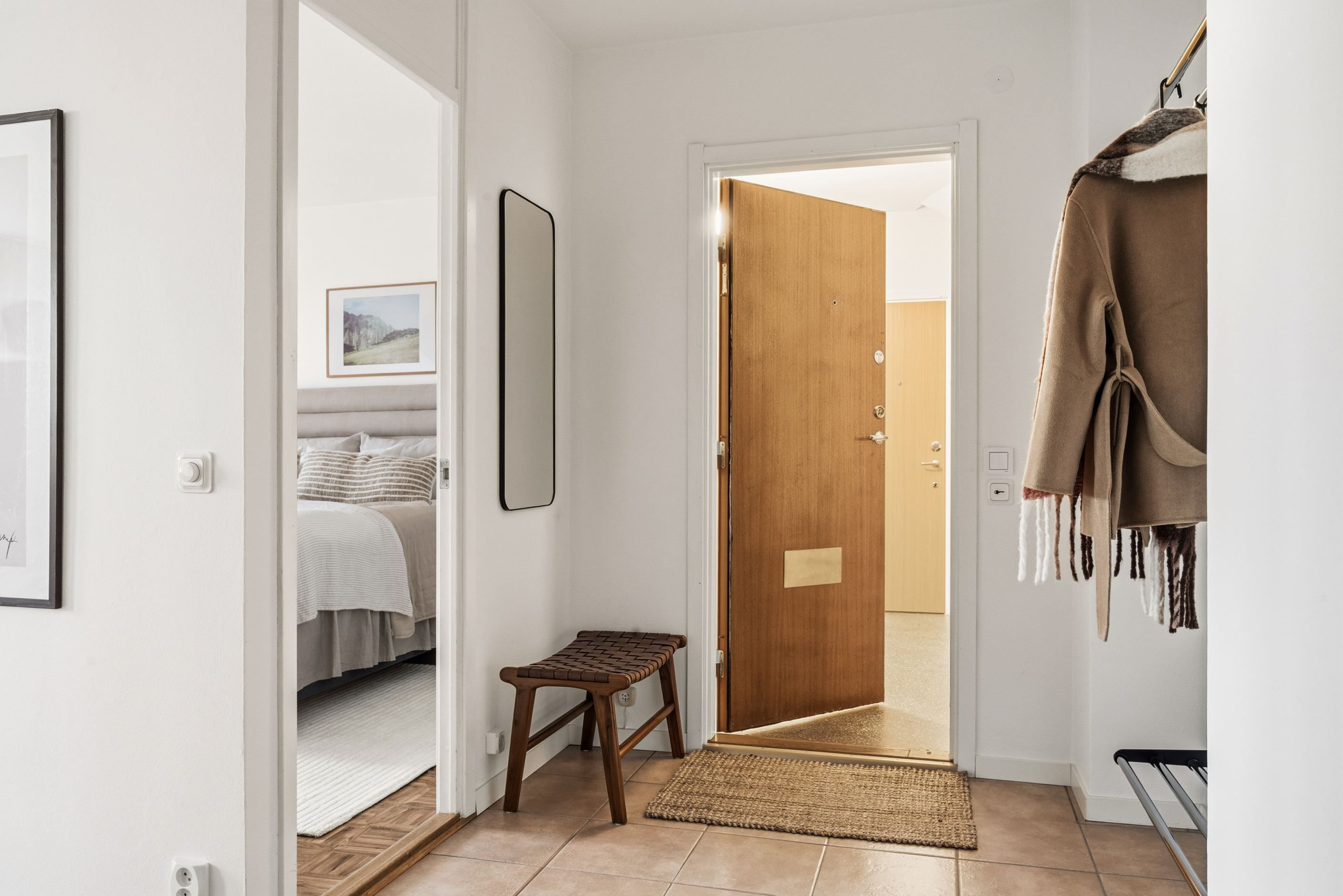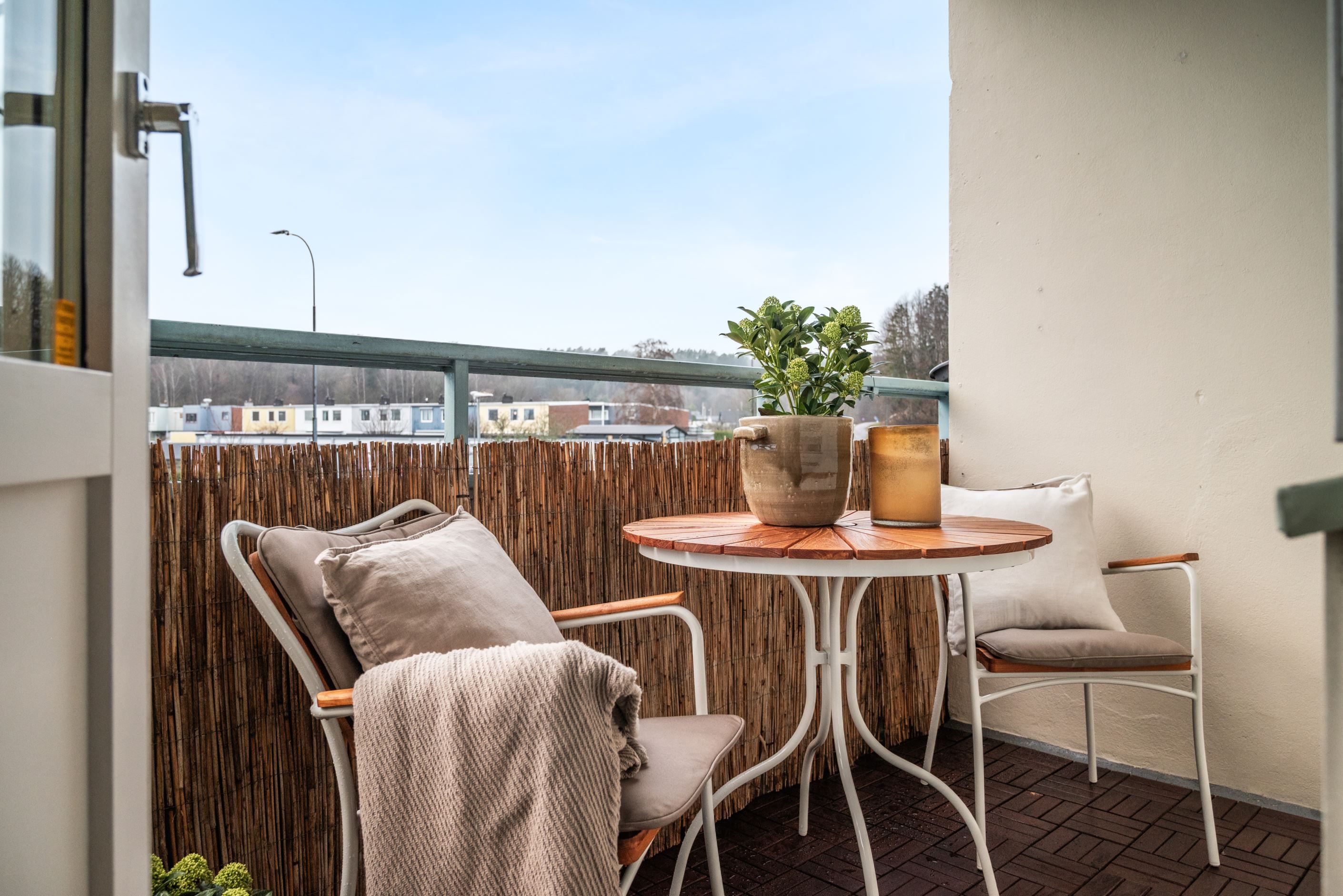 Bostaden ligger en trappa upp, vilket gör att du får ett behagligt och insynsskyddat läge samtidigt som du slipper känna av de högre våningsplanen. Från det stora sovrummet nås den trevliga balkongen i eftertraktat sydvästläge, en perfekt plats att njuta av dagens sista sol och låta sommaren bli en naturlig del av vardagen.