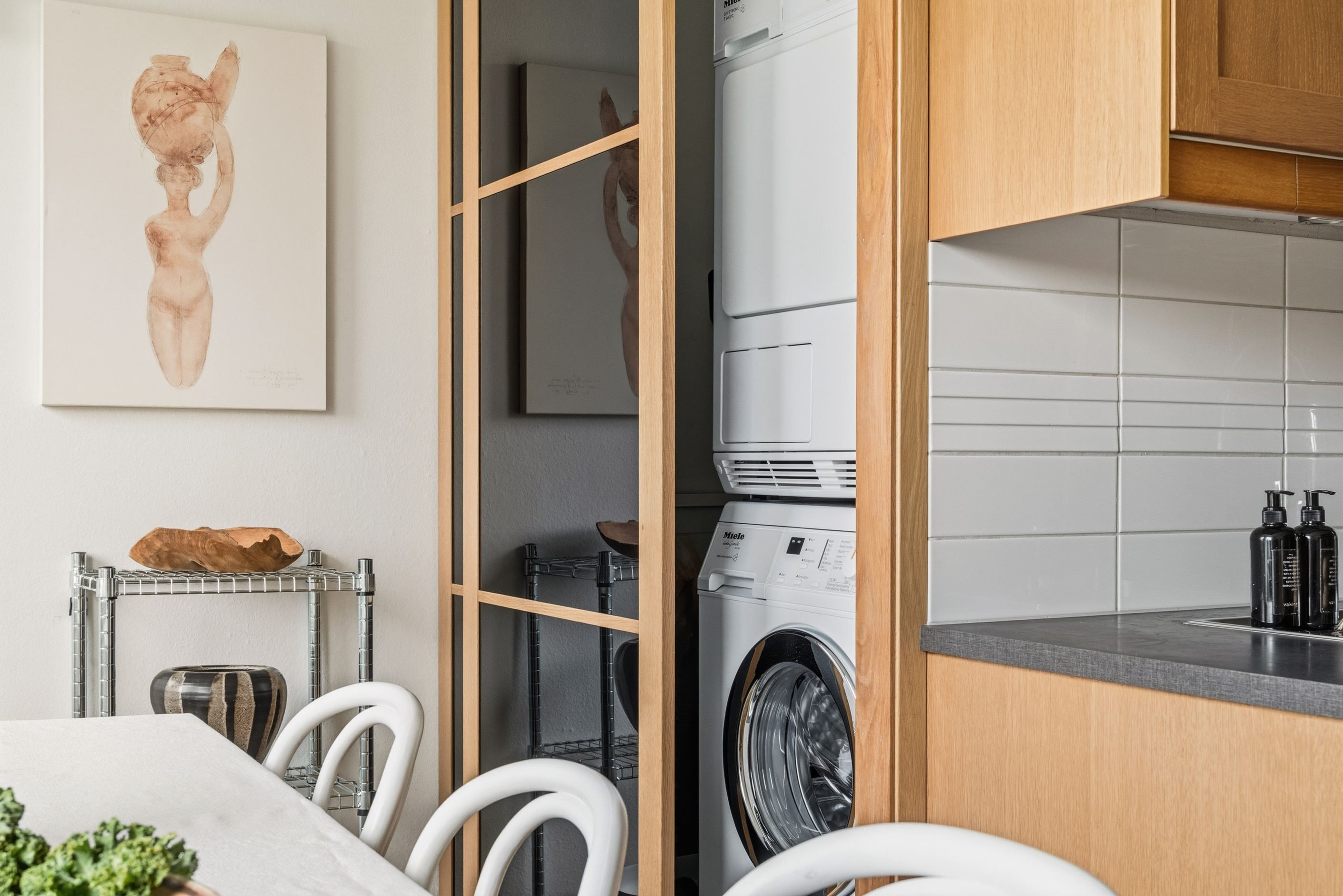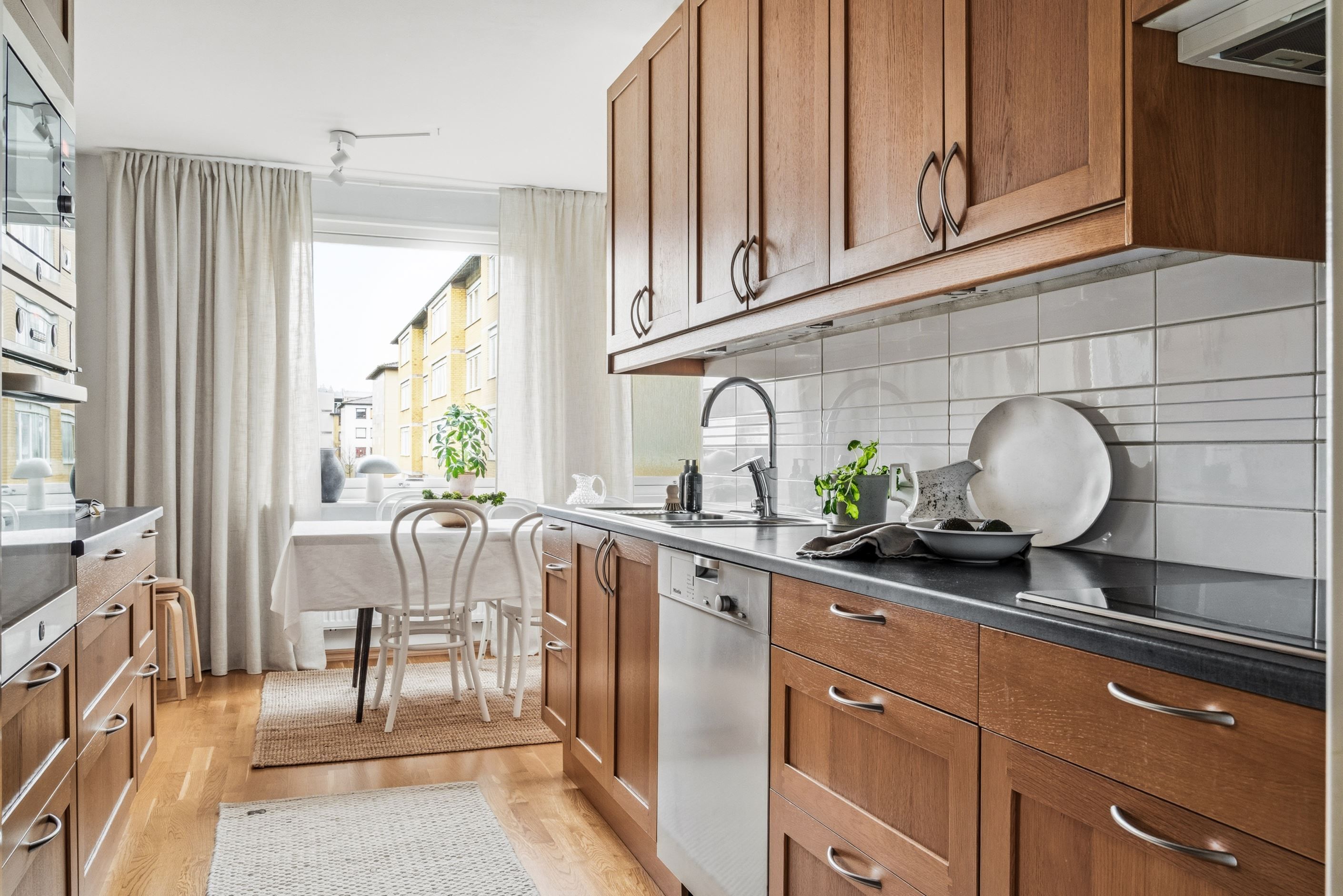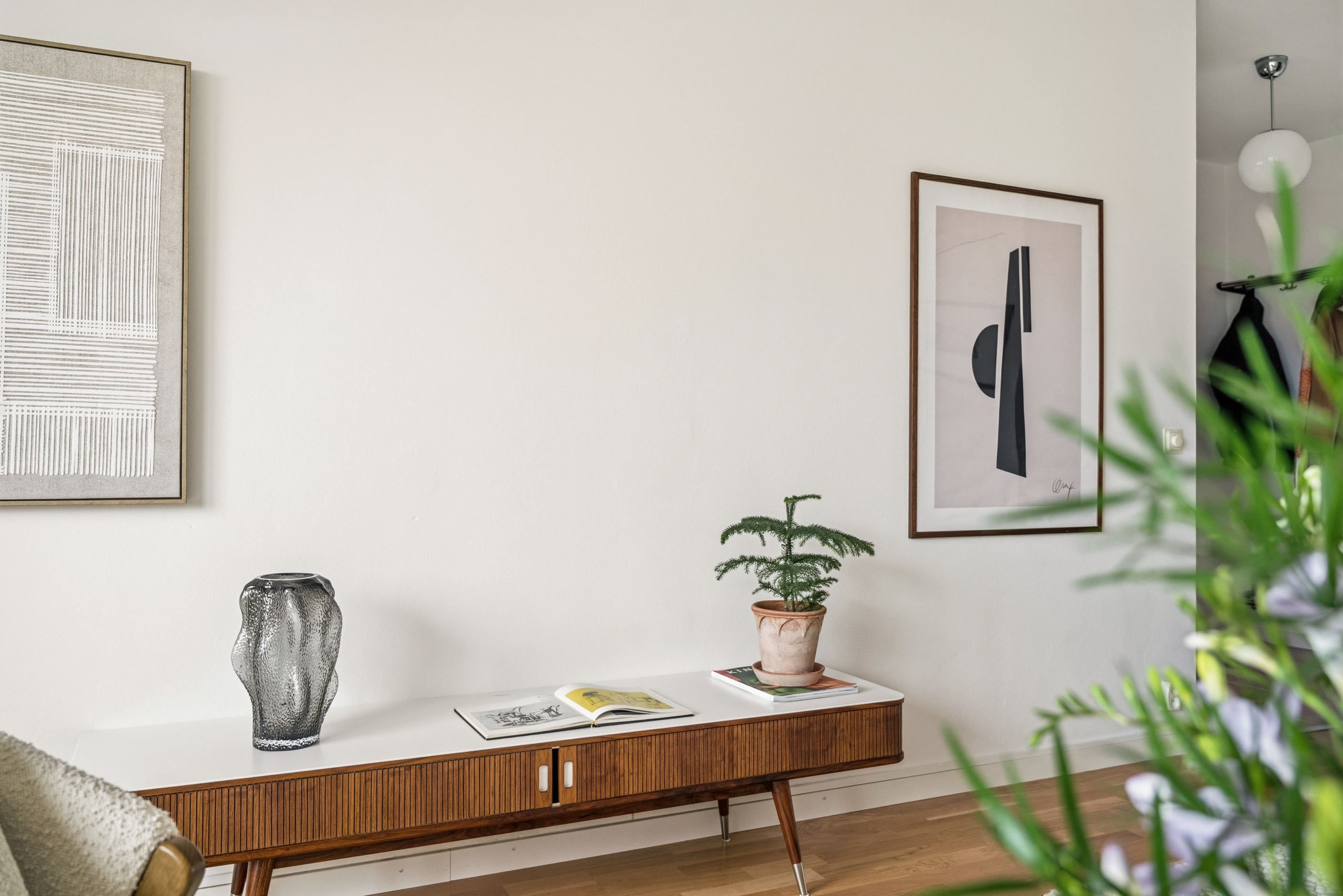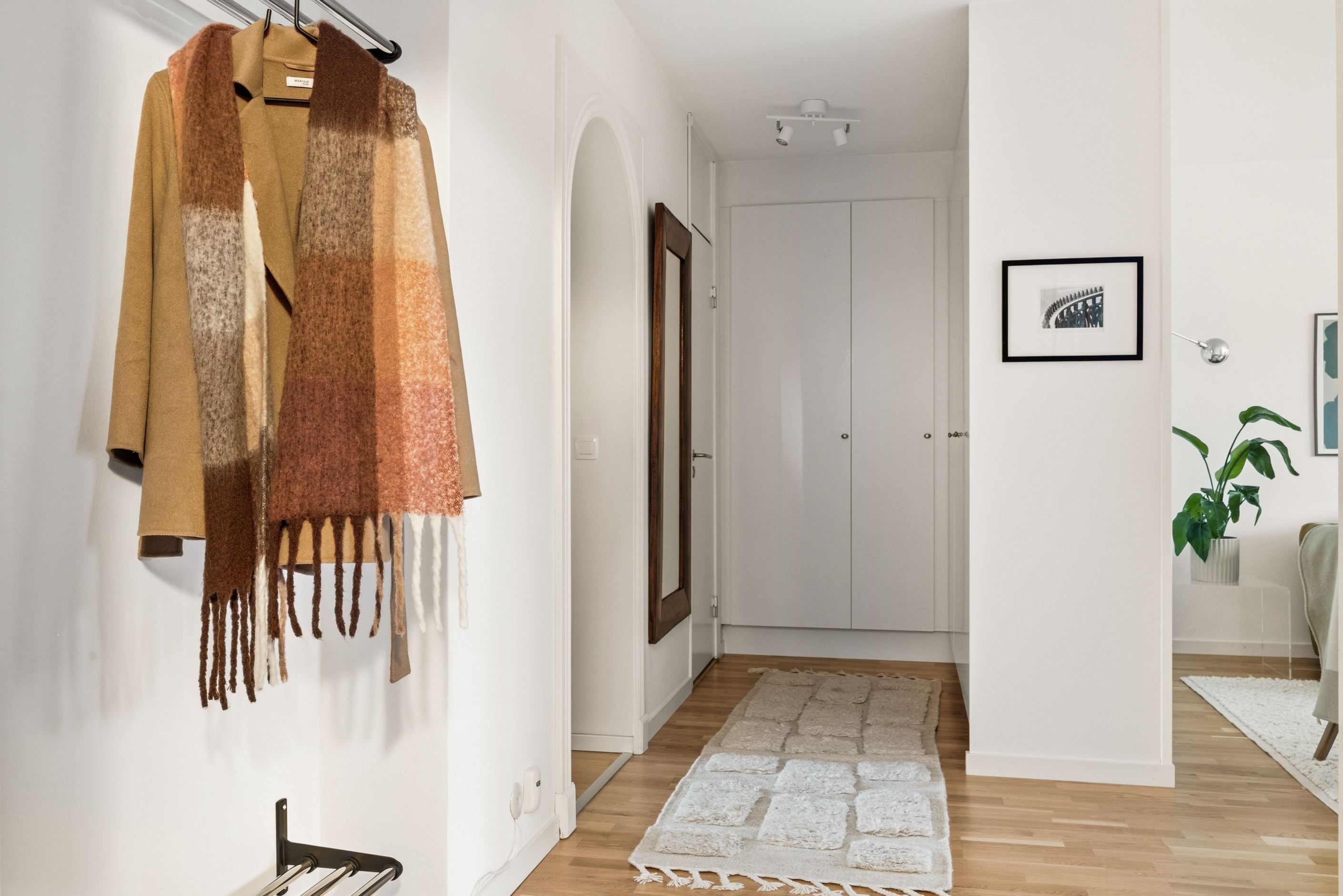 Bostaden ligger en trappa upp, vilket gör att du får ett behagligt och insynsskyddat läge samtidigt som du slipper känna av de högre våningsplanen. Från det stora sovrummet nås den trevliga balkongen i eftertraktat sydvästläge, en perfekt plats att njuta av dagens sista sol och låta sommaren bli en naturlig del av vardagen.