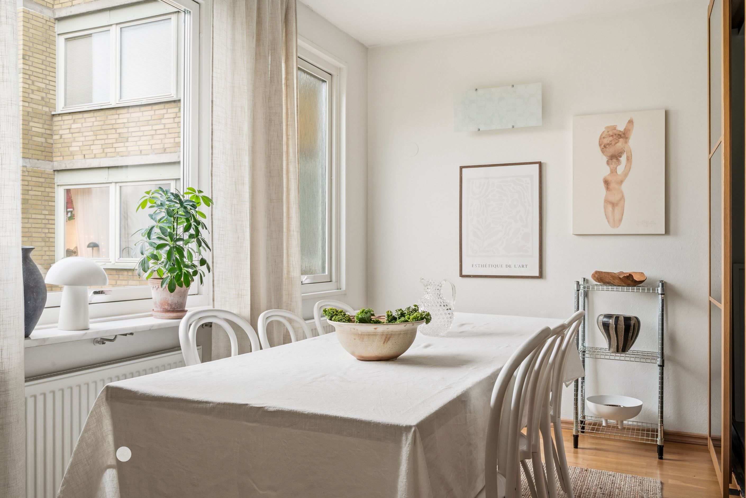 Här erbjuds ett hem med härliga ljusflöden, väl tilltagna rum och en social planlösning där vardagsrum och kök får ta ordentligt med plats. Lägenhetens ytor passar perfekt för dig som vill trivas länge, oavsett om du söker utrymme för familjen, hemmakontor eller bara vill bo bekvämt och luftigt.