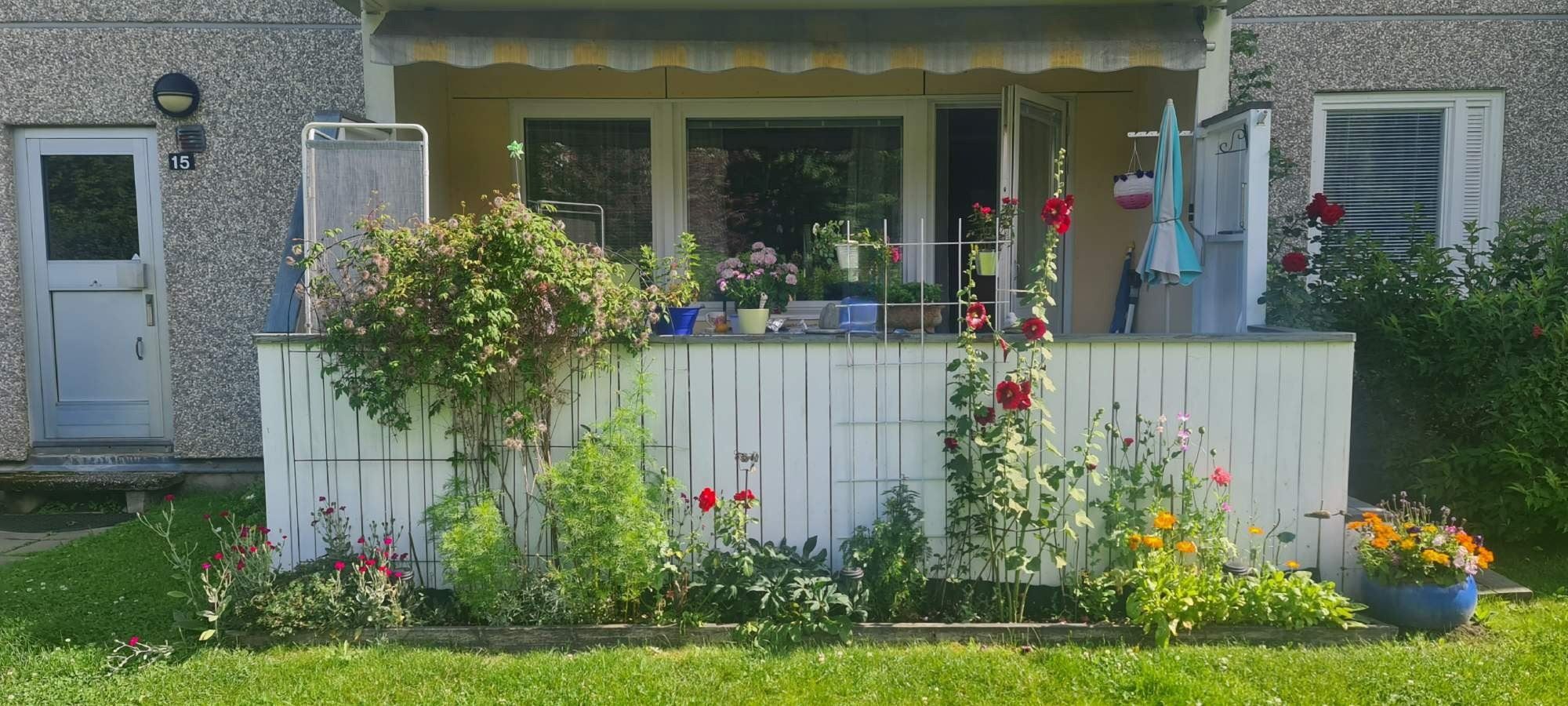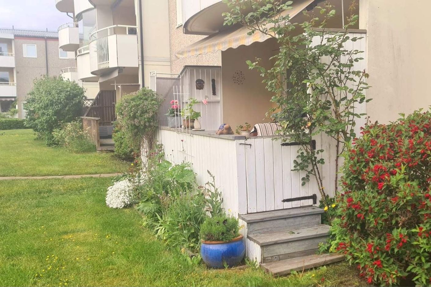 Uteplats! På områdets förmodligen bästa läge finner vi denna välplanerade och renoverade 4:a med stor fin uteplats. Läget är optimalt pga den stora uteplatsen med eftermiddags- och kvällssol som vetter mot en stor gräsmatta. Här kan barnen fritt springa och leka på gräsmattan medan du har full uppsikt från uteplatsen. För den odlingsintresserade köparen kan du inte hitta en bättre lägenhet, då du kan odla utanför din uteplats, och det finns en grind för enkel access. Solläget gör att både växter och grönsaker frodas. Den här lägenheten passar verkligen för alla! Är du en barnfamilj kommer du att älska uteplatsen och dess enkelhet till gräsmattan utanför. Är du äldre har du enkel tillgång till lägenheten genom ramp och kan lugnt sitta på uteplatsen och ta en kopp kaffe i solen.