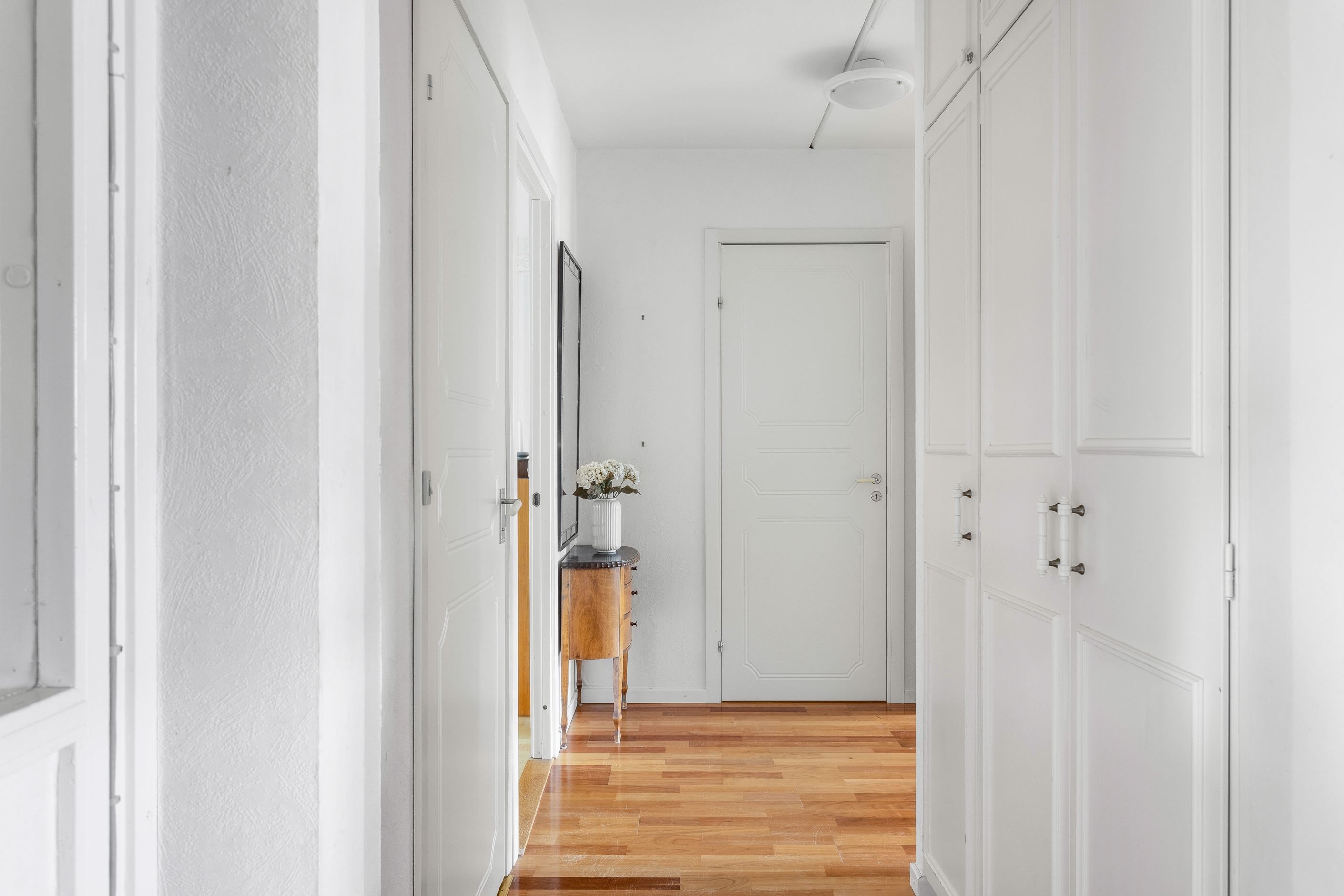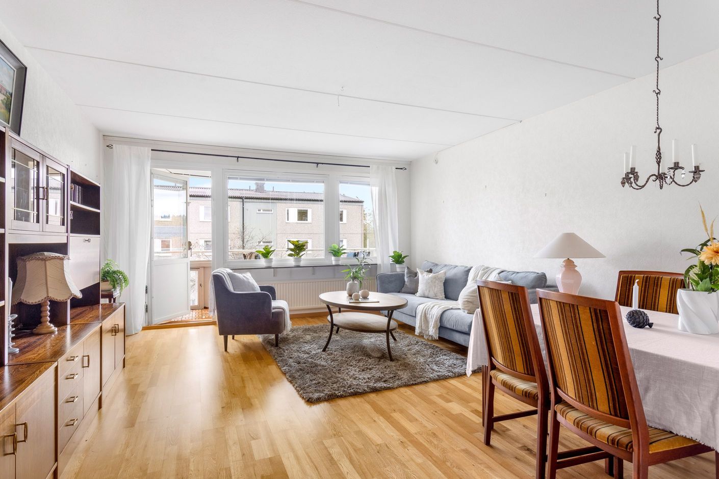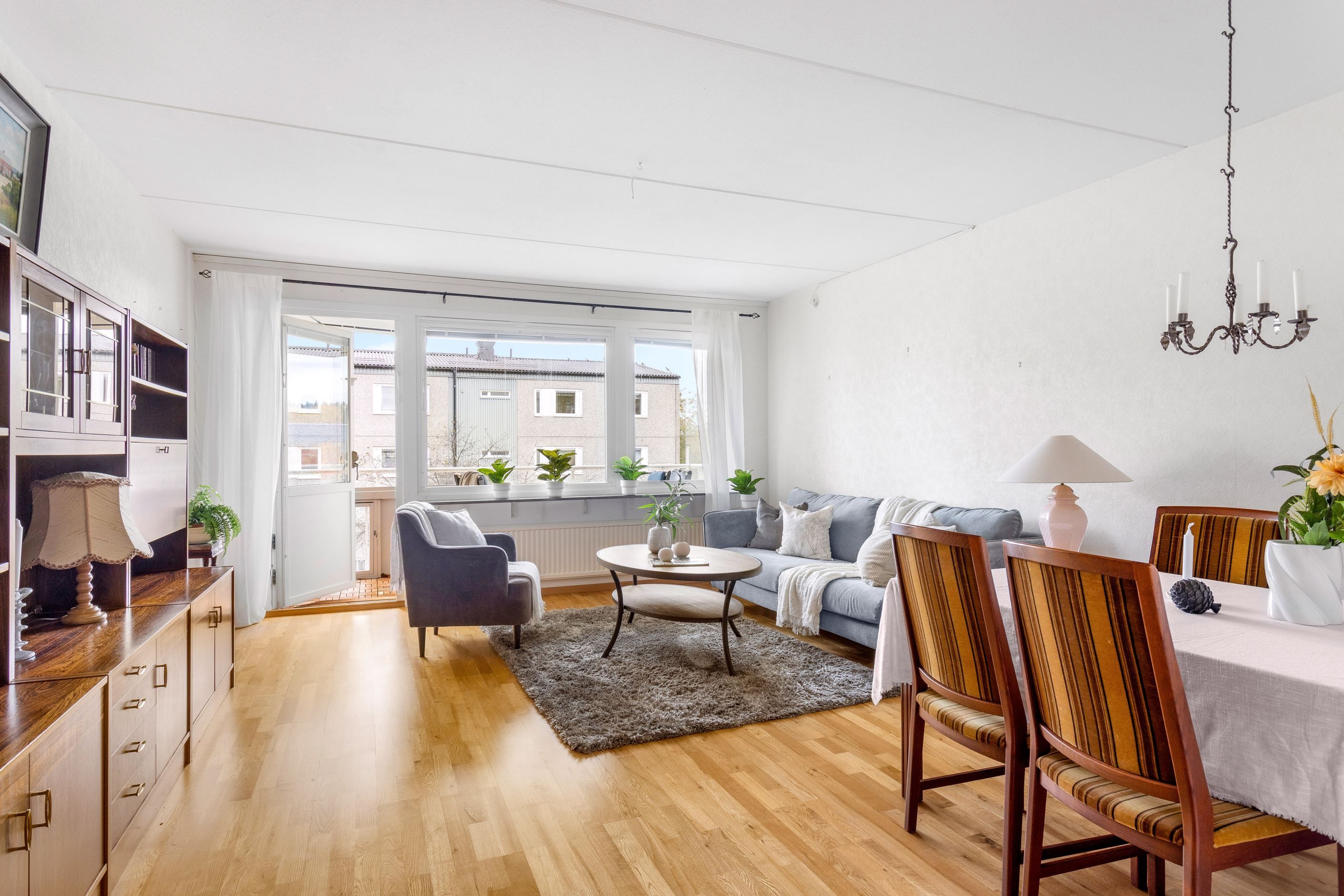 Välskött 4:a belägen 1 trappa upp i huset dvs på mellanplan av husets totalt 3 bostadsplan. En mer ovanlig lägenhetstyp i föreningen med badrummet placerat inne vid de 3 sovrummen som alla håller god storlek, separat tvättstuga med ingång från köket, separat wc med ingång från hall och med trivsam planlösning mellan kök och vardagsrum. Rikligt med förvaring i garderober och stor klädkammare, som även kan användas som kontor. Inglasad balkong.