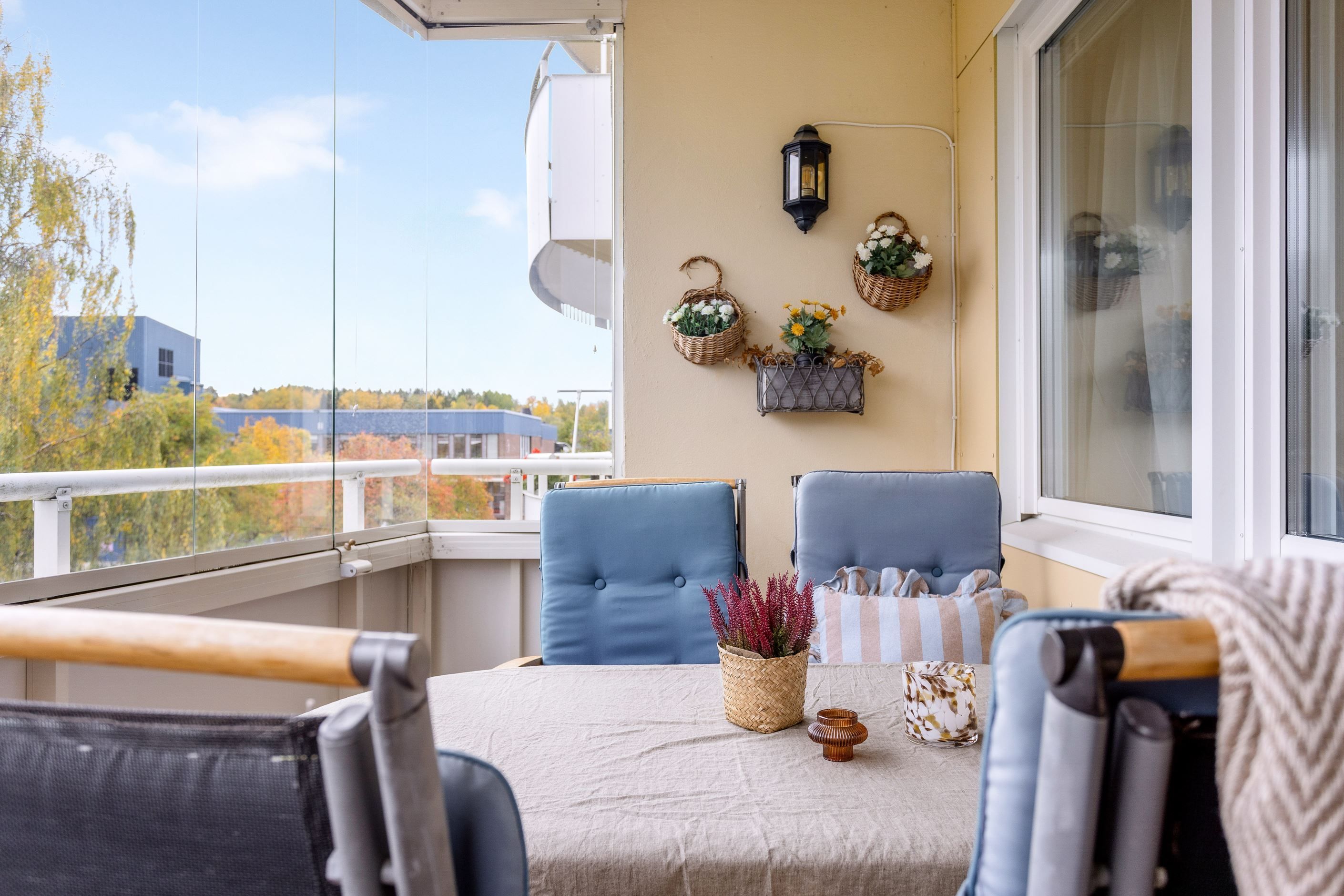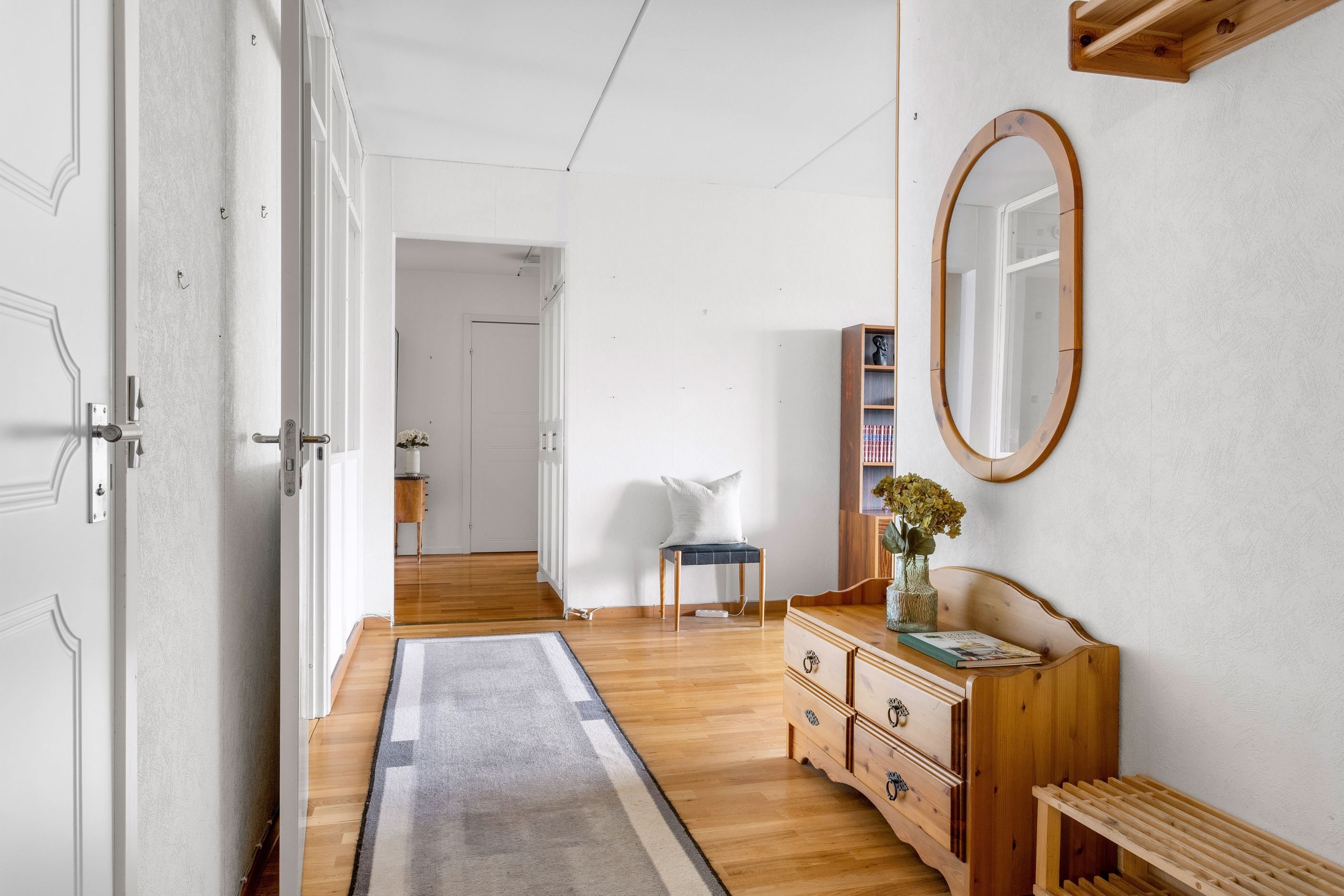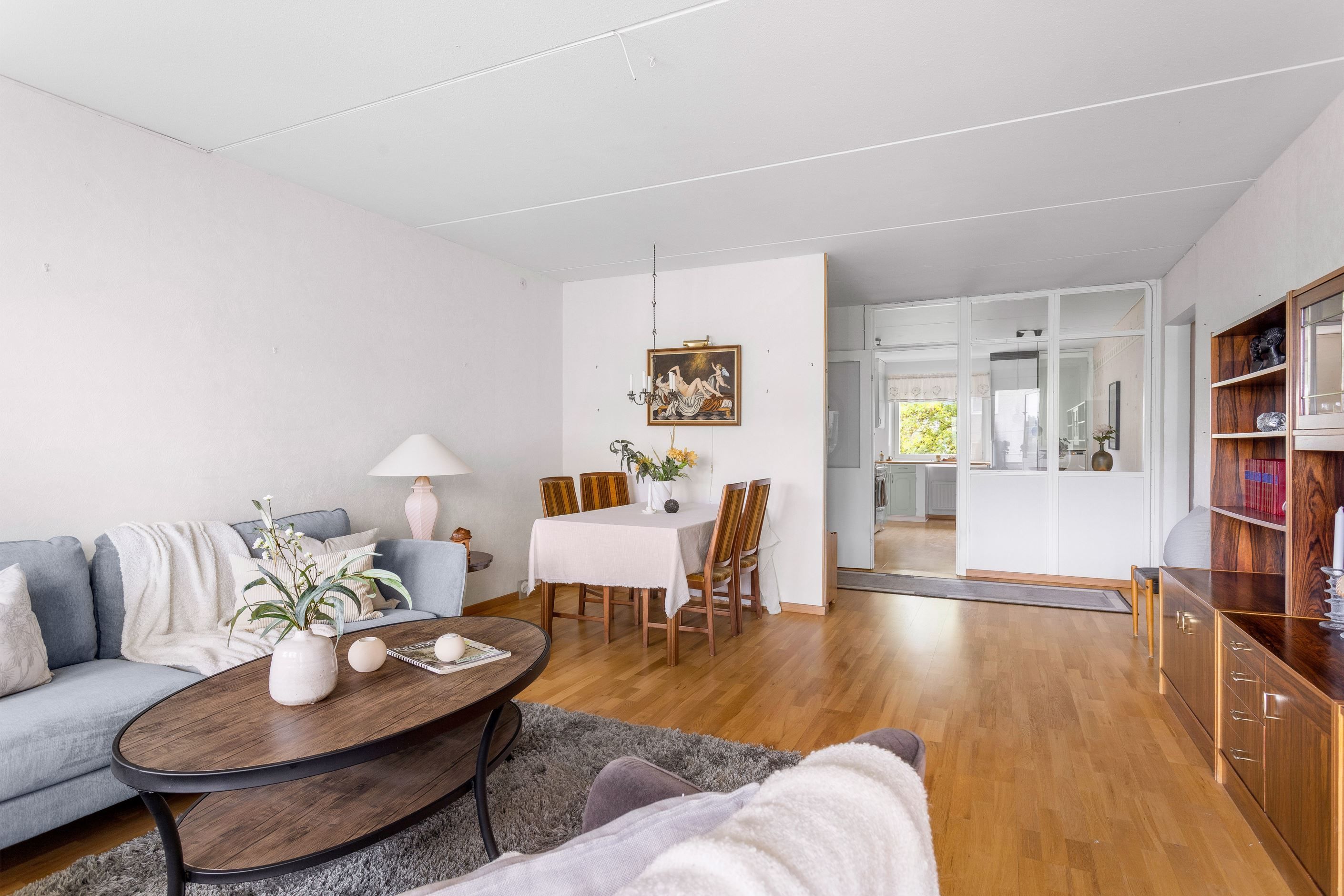 Välskött 4:a belägen 1 trappa upp i huset dvs på mellanplan av husets totalt 3 bostadsplan. En mer ovanlig lägenhetstyp i föreningen med badrummet placerat inne vid de 3 sovrummen som alla håller god storlek, separat tvättstuga med ingång från köket, separat wc med ingång från hall och med trivsam planlösning mellan kök och vardagsrum. Rikligt med förvaring i garderober och stor klädkammare, som även kan användas som kontor. Inglasad balkong.