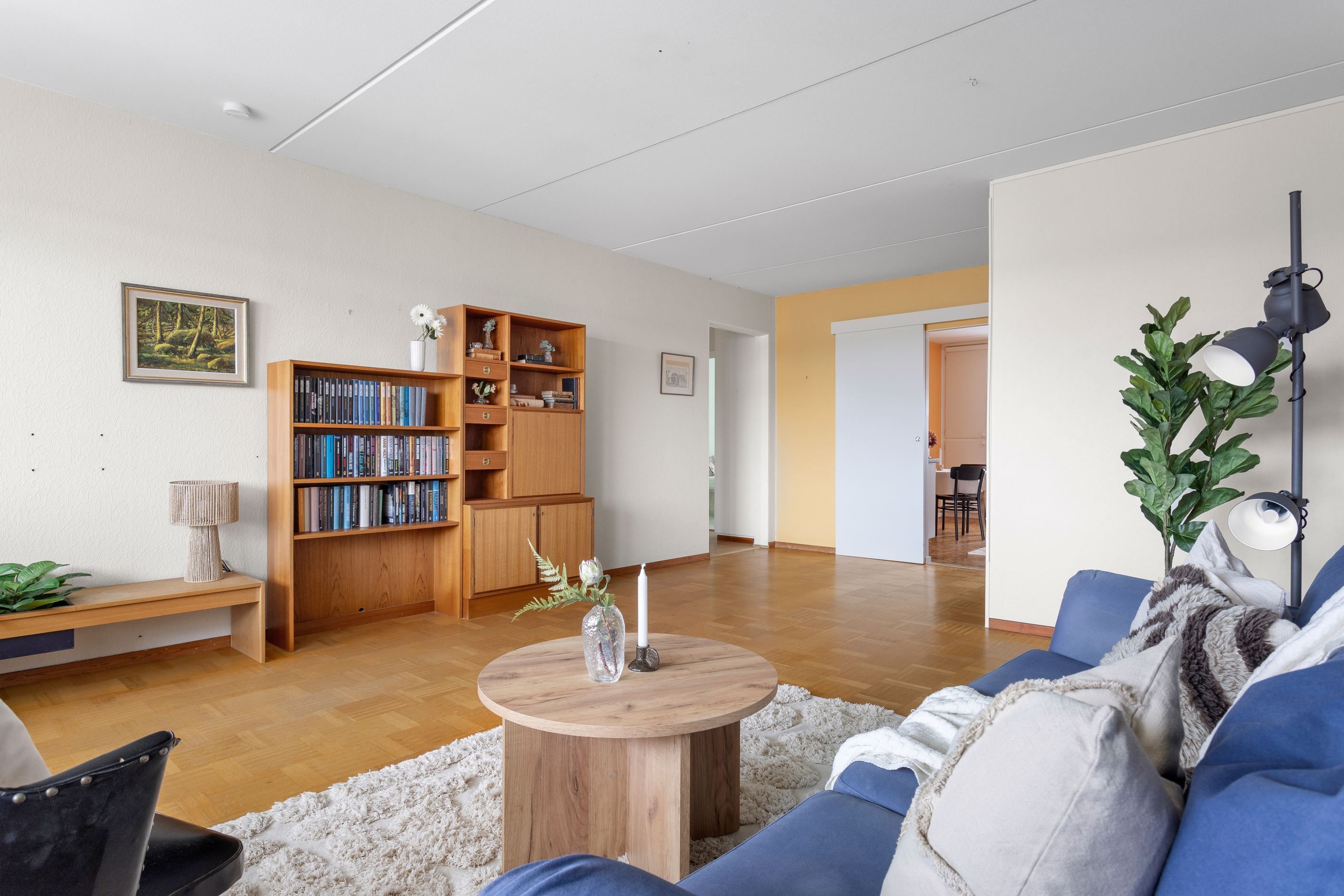 Välskött 3:a belägen 2 trappor upp i huset dvs på ostört läge högst upp av husets totalt 3 bostadsplan. En stor 3 rok om 90kvm med badrummet placerat inne vid de 2 sovrummen som båda håller god storlek, separat tvättstuga med ingång från köket, separat wc med ingång från hall och med trivsam planlösning mellan kök och vardagsrum. Rikligt med förvaring i garderober och stor klädkammare, som även kan användas som kontor. Här finns verkligen chansen till ett prisvärt boende för dig och barn/ungdom!