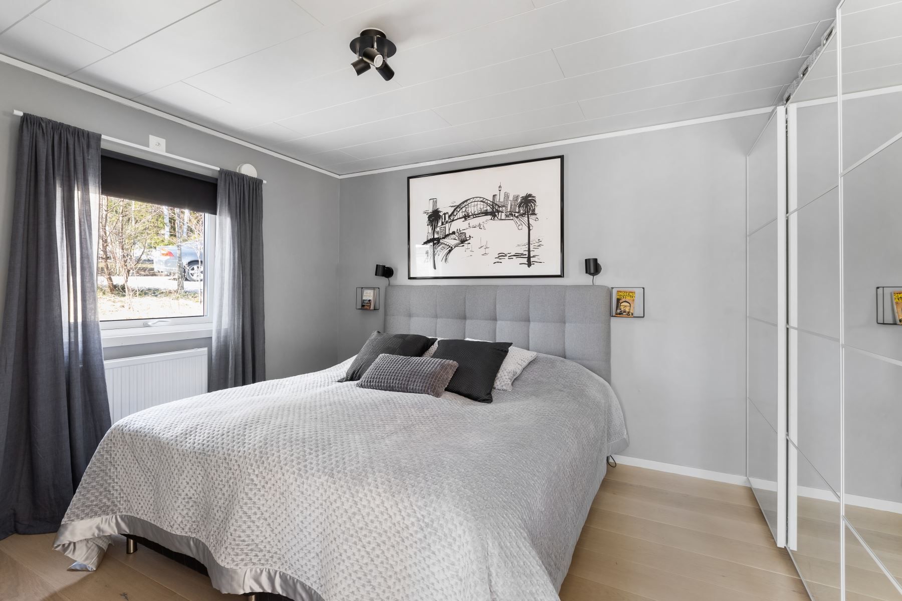 Från vardagsrummet finns ingång till Master Bedroom. Här finns plats för dubbelsäng och övrig möblering. Garderober med skjutdörrar.