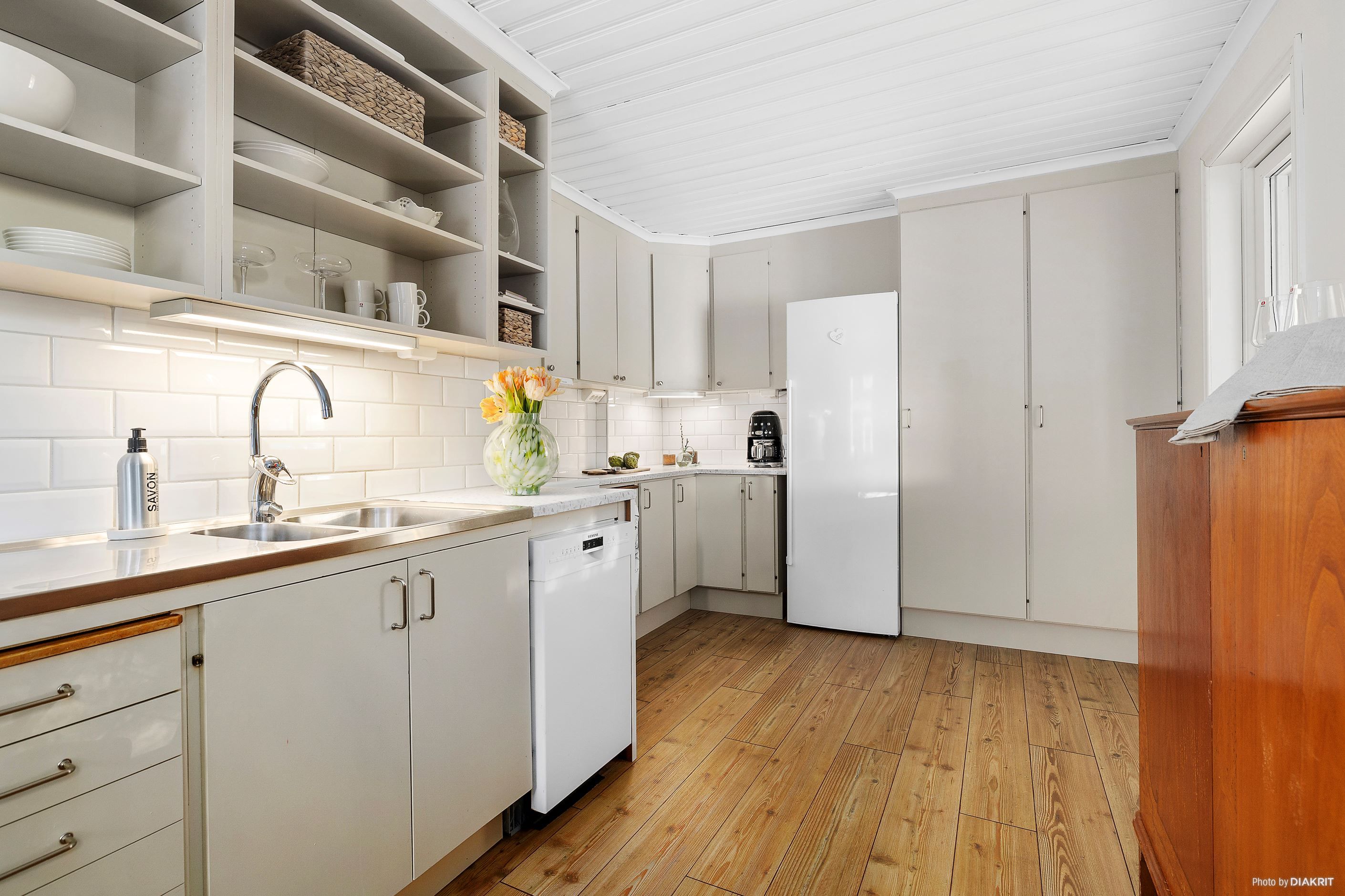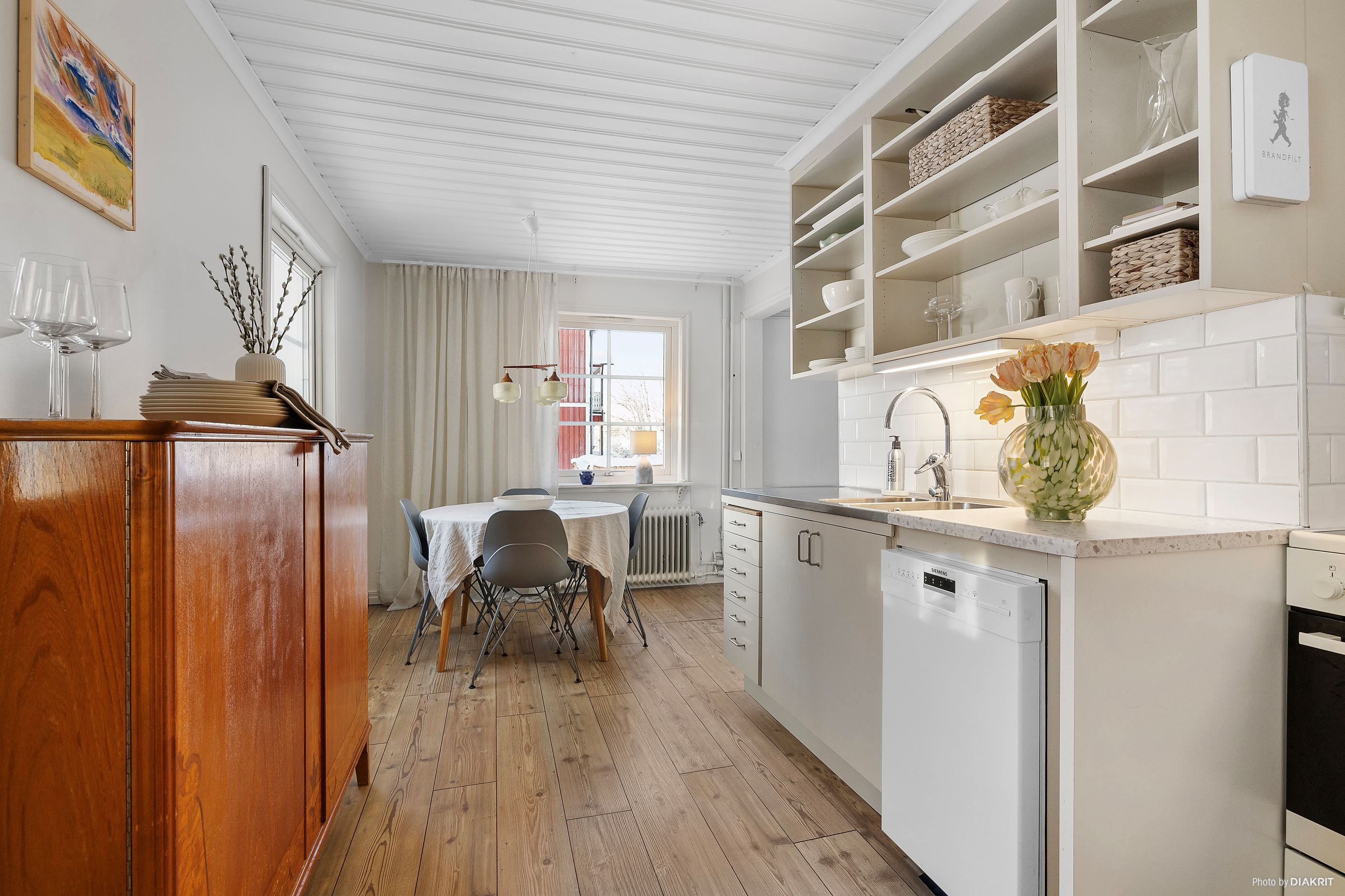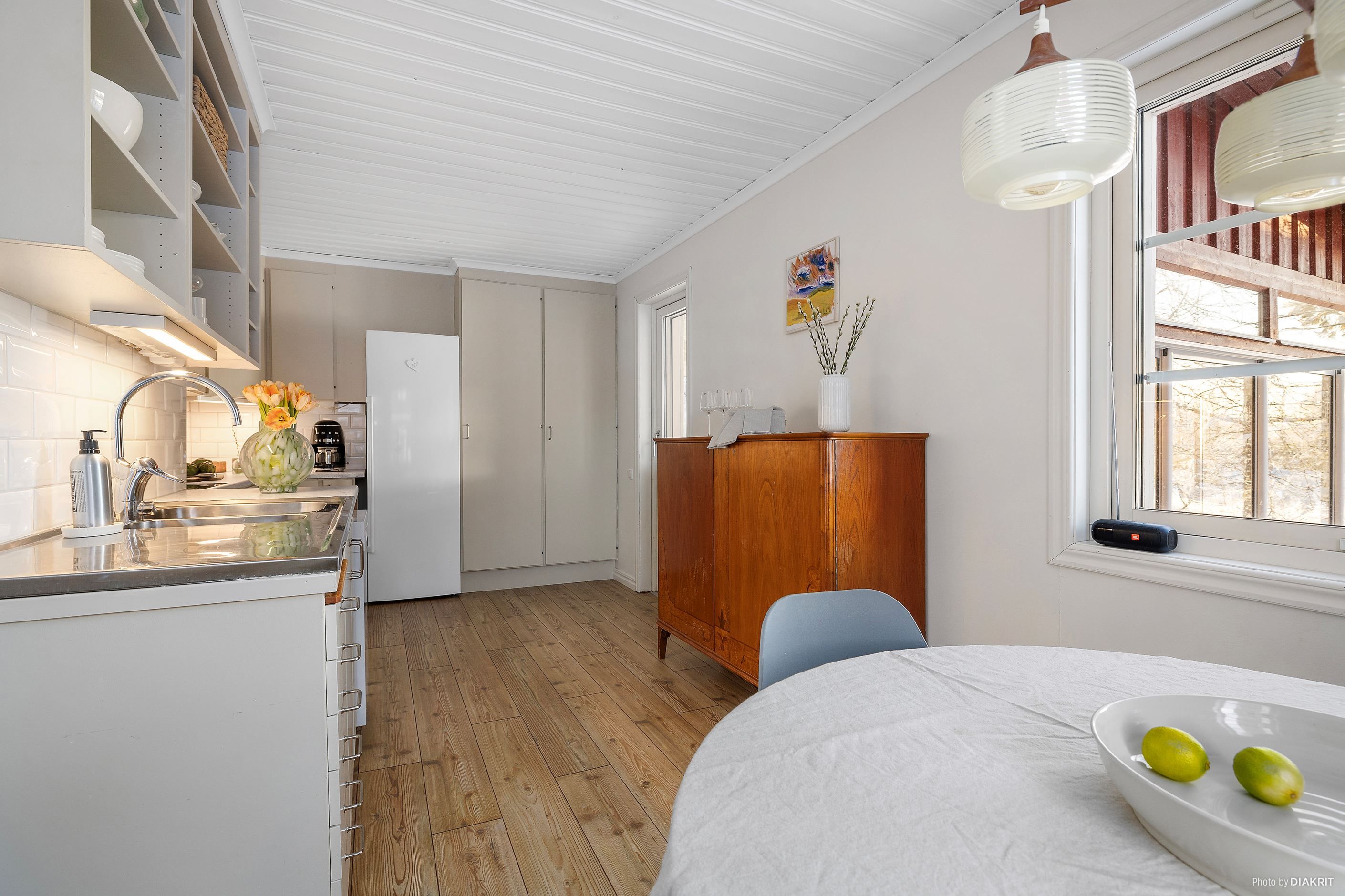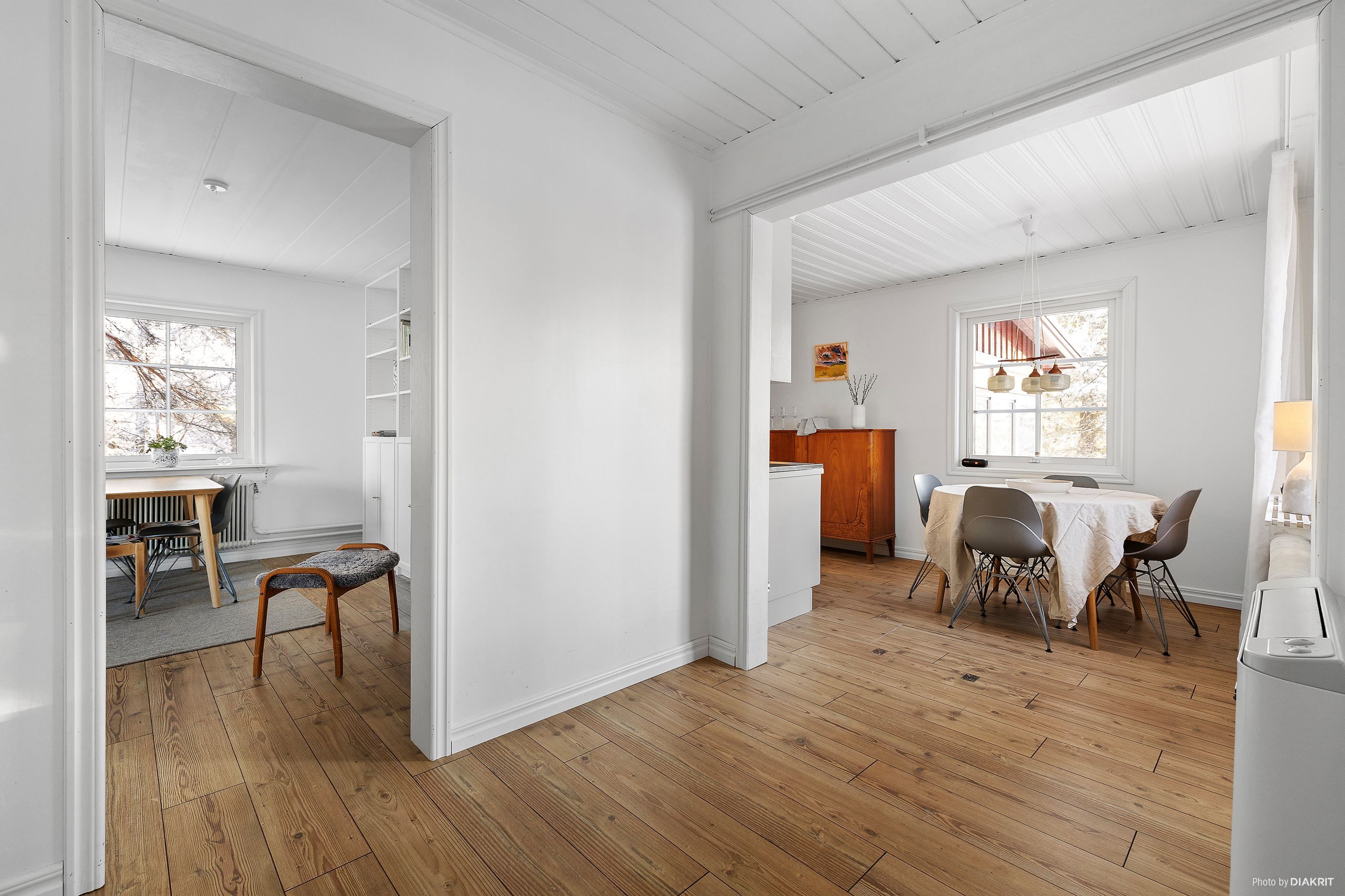 Entréplanet bjuder på ljusa och öppna sällskapsytor med nya golv (2025). Köket har fräschats upp under 2025 och erbjuder goda arbetsytor samt plats för familj och vänner. Badrummet renoverades 2024 och gäst-wc 2023, båda i modern och stilren utformning. Slipade golv (2024) ger hemmet en enhetlig och elegant känsla. Huset är även utrustat med nya elcentraler och fasadskåp (2024) samt elbilsladdare.