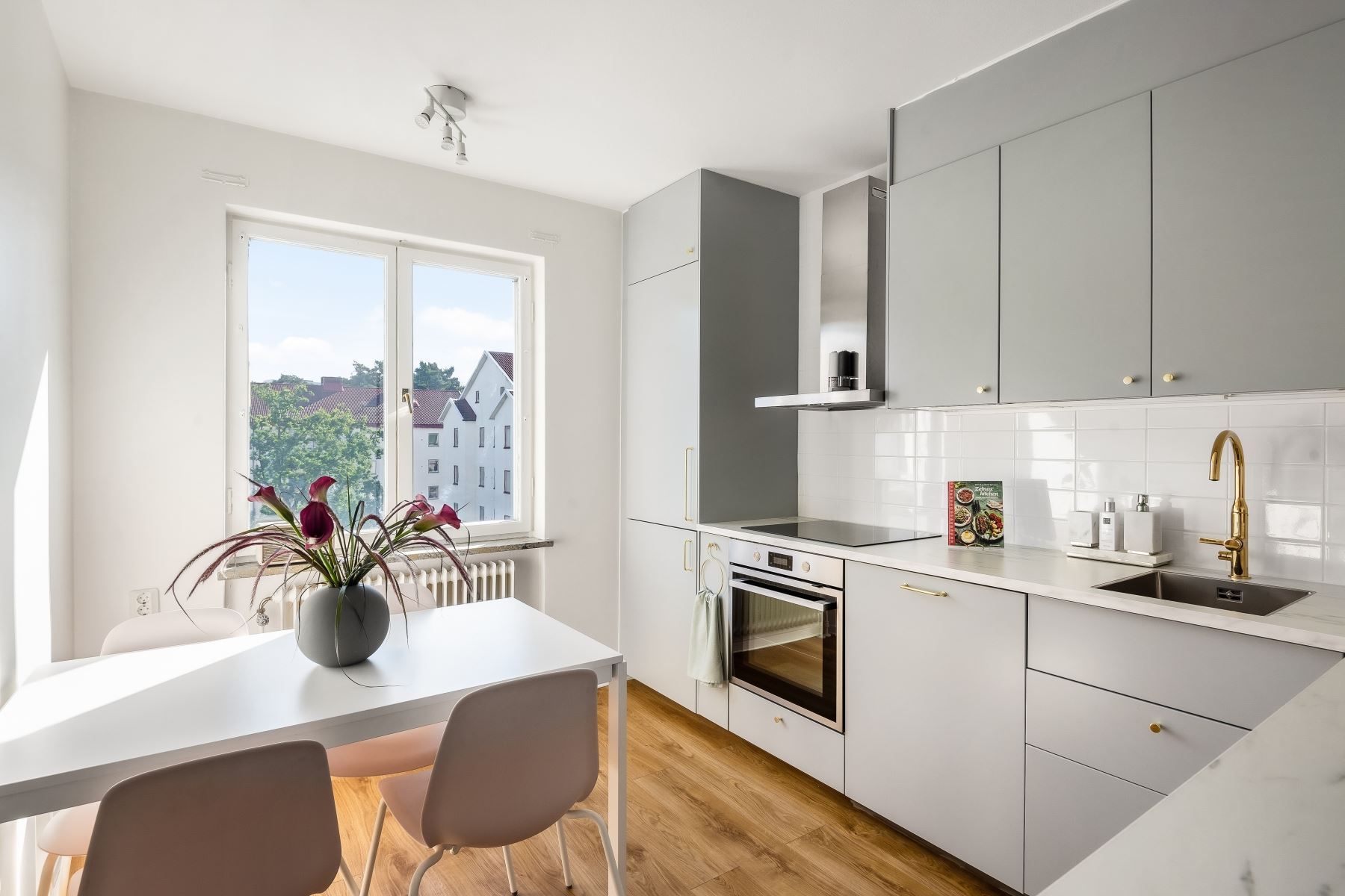 På våning 6 av 6 finner vi denna attraktiva 1,5:a intill Råstasjön och Mall Of Scandinavia. Här bor du i ett lugnt och skyddat läge med grönska bredvid huset samtidigt som du har Solna C runt hörnet. Renoverad bostad i väldigt bra skick där varje kvadratmeter tjänar sin fulla rätt. Härligt vardagsrum med en mysig sovalkov, ett ljust kök i grått och marmor. En bostad som har alla bekvämligheter man kan önska sig. Härlig takterrass en våning upp där du kan umgås tillsammans med familj och vänner!