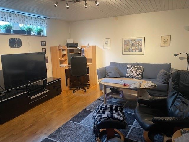 Entréplan med 2-3 sovrum allt beroende på hur man önskar disponera de olika rummen. Renoverad bad/wc, trivsamt kök med ljusa sobra färger. Väl tilltaget vardagsrum som enligt orginalplanlösningen var vardagsrum samt sovrum.