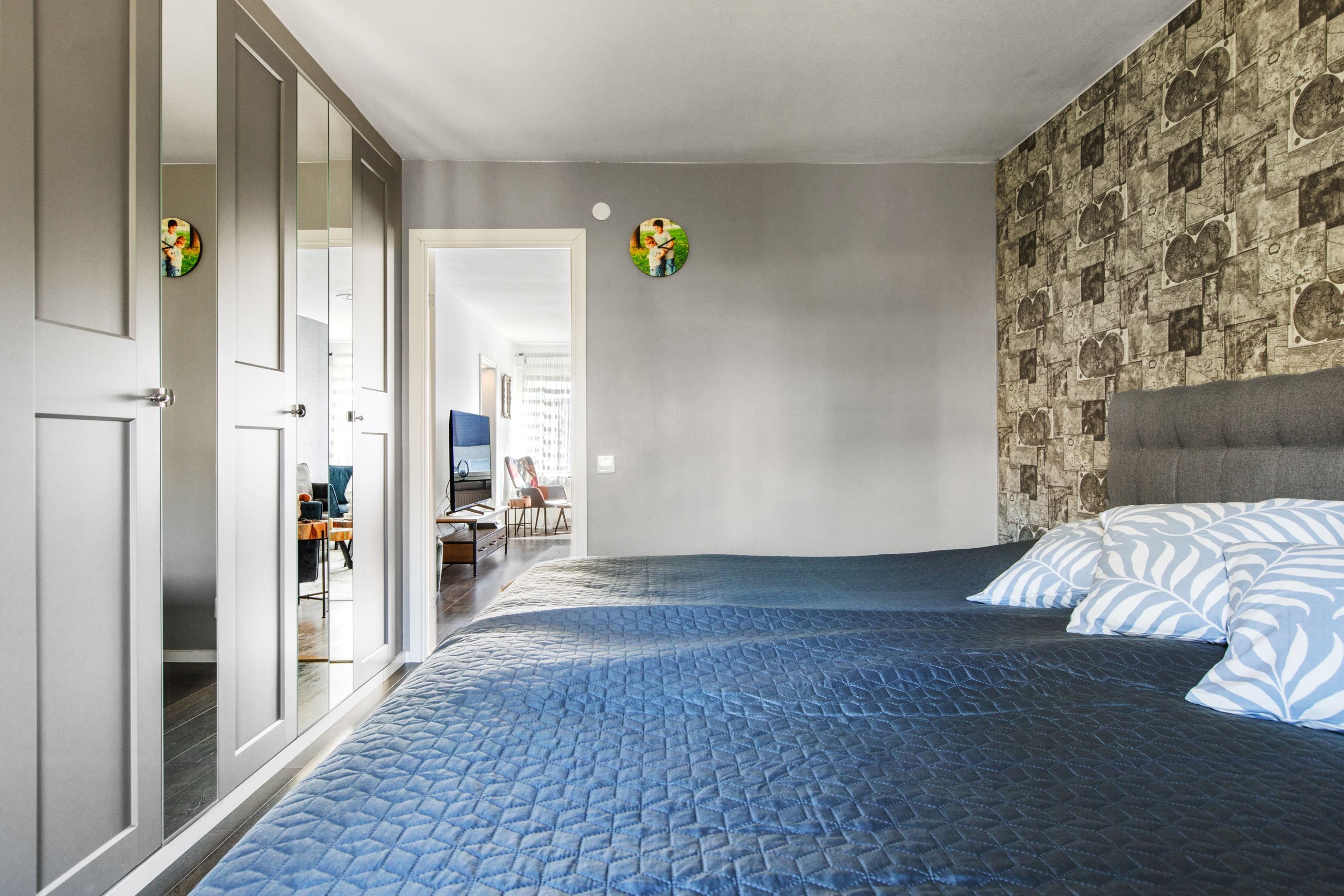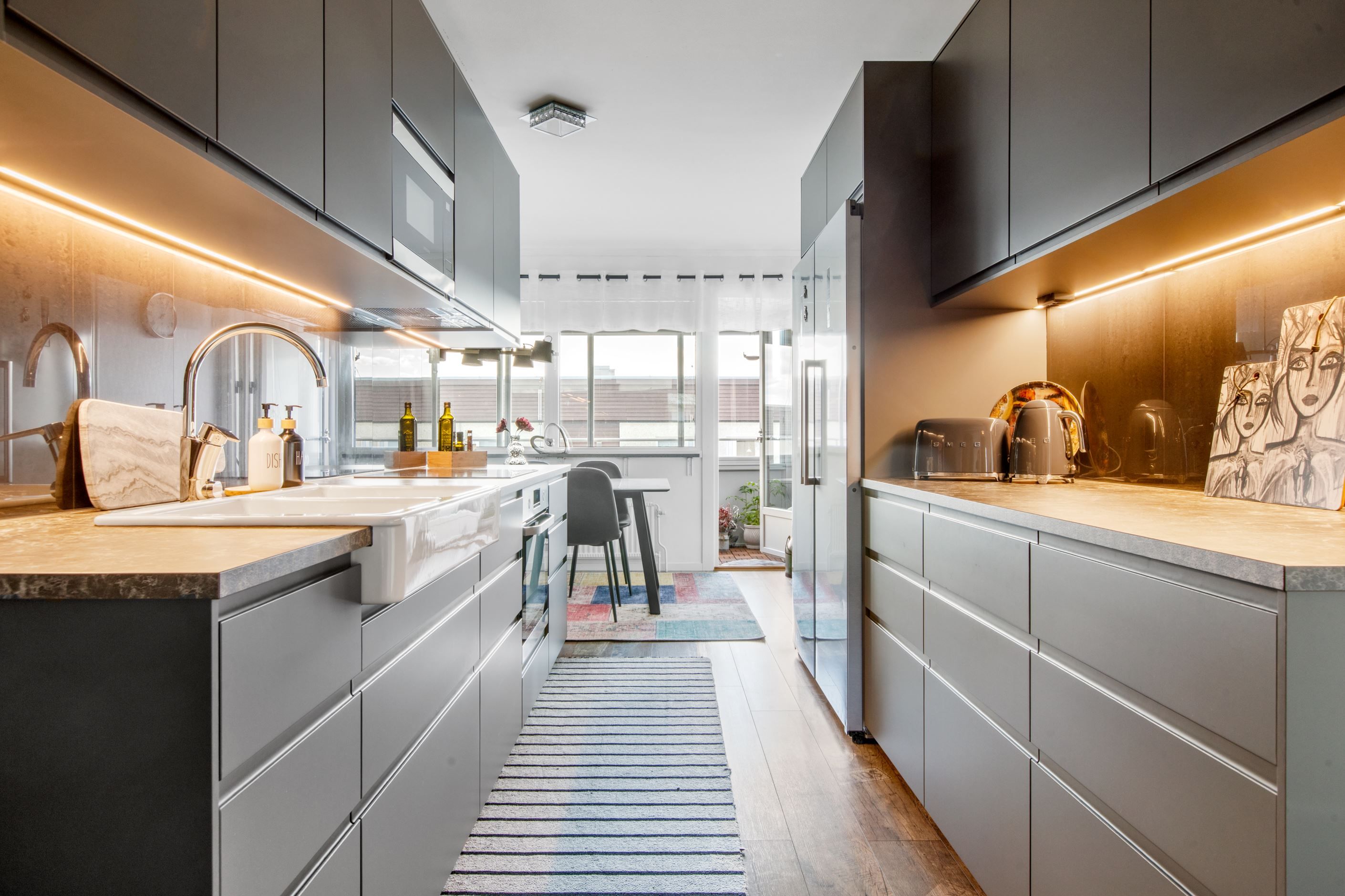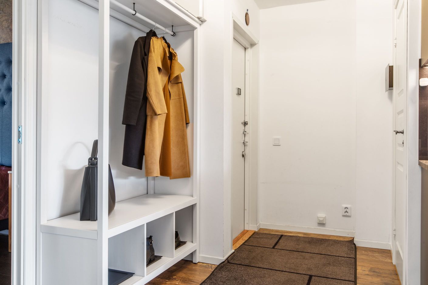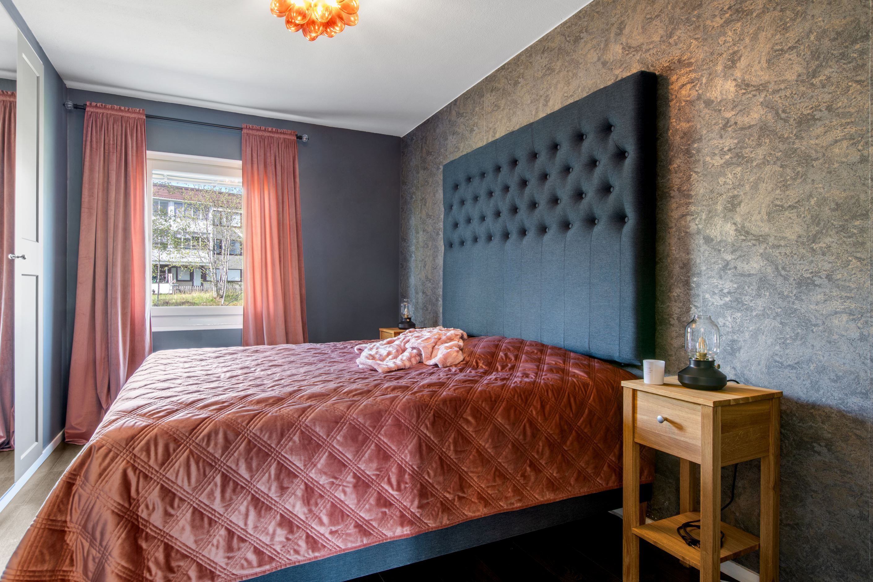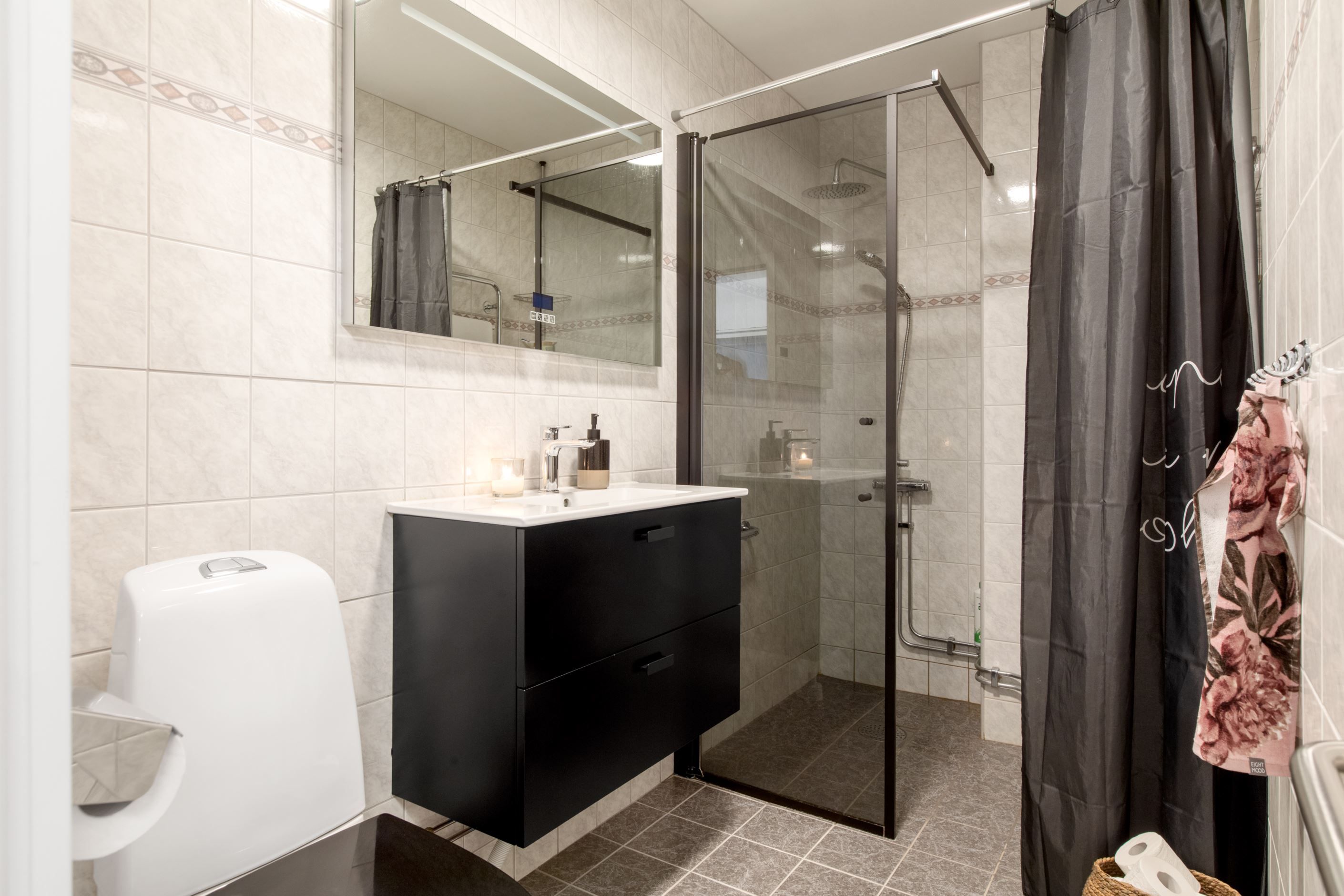 Köket är stilrent och välutrustat, med smakfulla materialval och goda arbetsytor. De två sovrummen erbjuder generöst med plats och förvaring, och badrummet är snyggt renoverat med moderna ytskikt. Genomgående ljusa material och väl valda detaljer ger bostaden en inbjudande och harmonisk känsla.