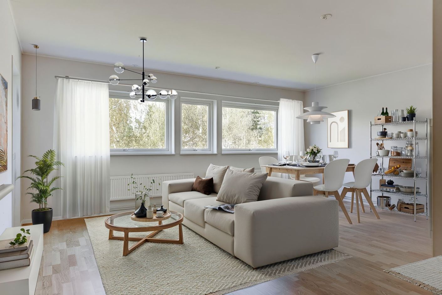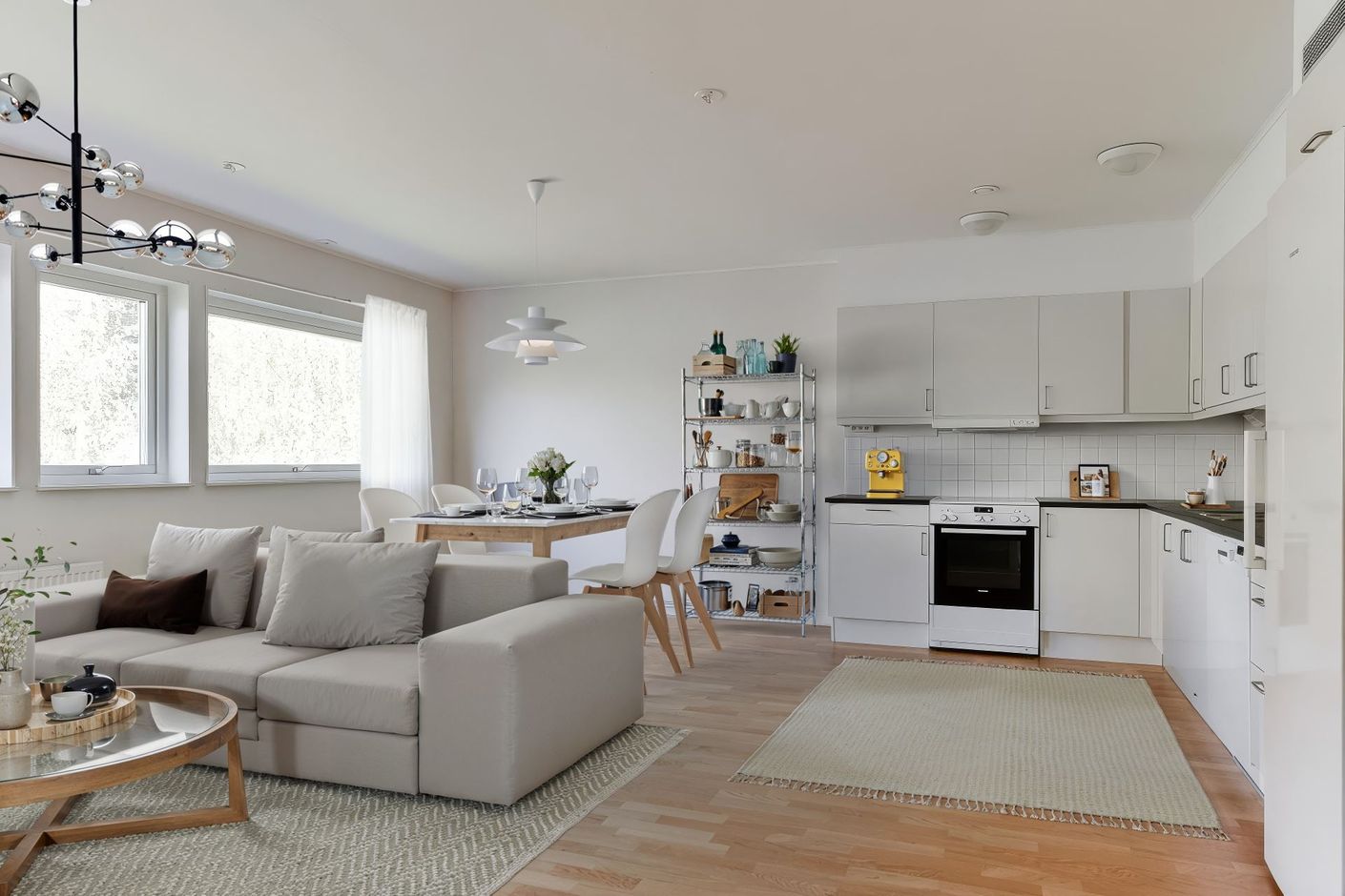 Redan vid ankomst möts ni av en trevlig loftgång där ni direkt utanför entrén har ert eget förråd samt plats för ett litet caféset – en charmig detalj som förlänger boendet, där ni kan njuta av morgonsolen. Bostaden är disponerad om 69 välplanerade kvadratmeter och bjuder på genomgående ljusa färger, ett vackert parkettgolv och en öppen planlösning som skapar rymd och en härlig social atmosfär.