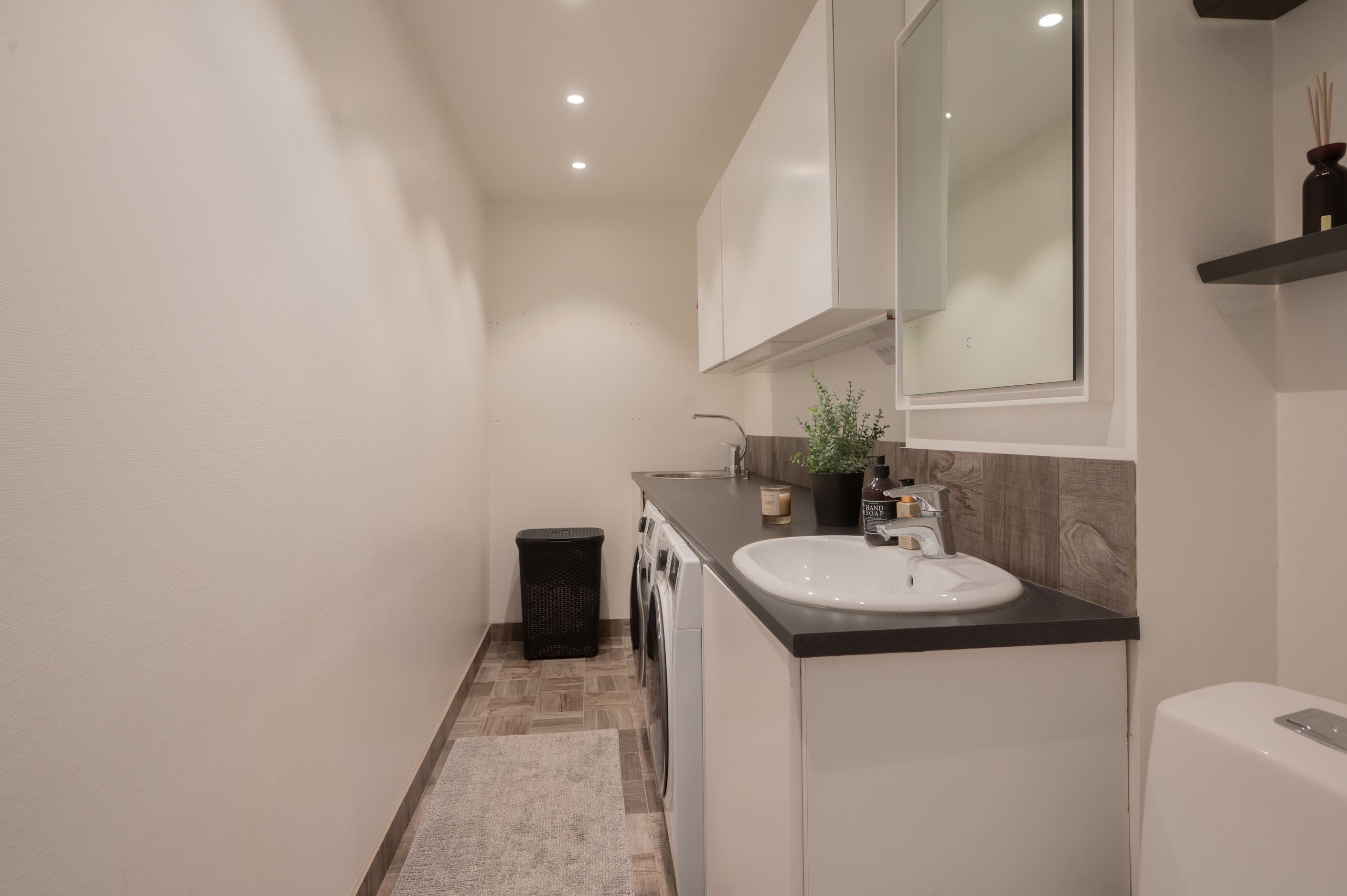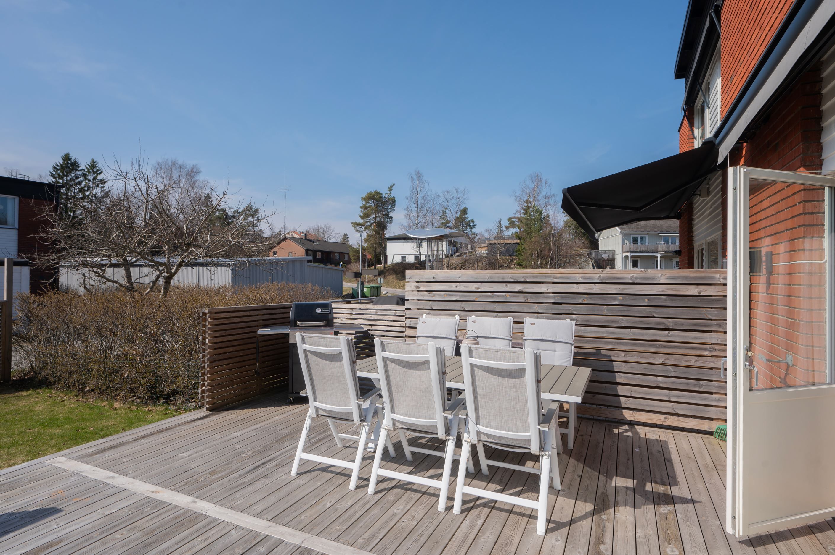 På baksidan väntar en uteplats i ett högt läge med härligt sydvästläge och fjärrstyrd markis – perfekt för avkoppling i solen. Även på framsidan finns en trivsam uteplats, idealisk för morgonkaffet. Här finns även en bilplats!