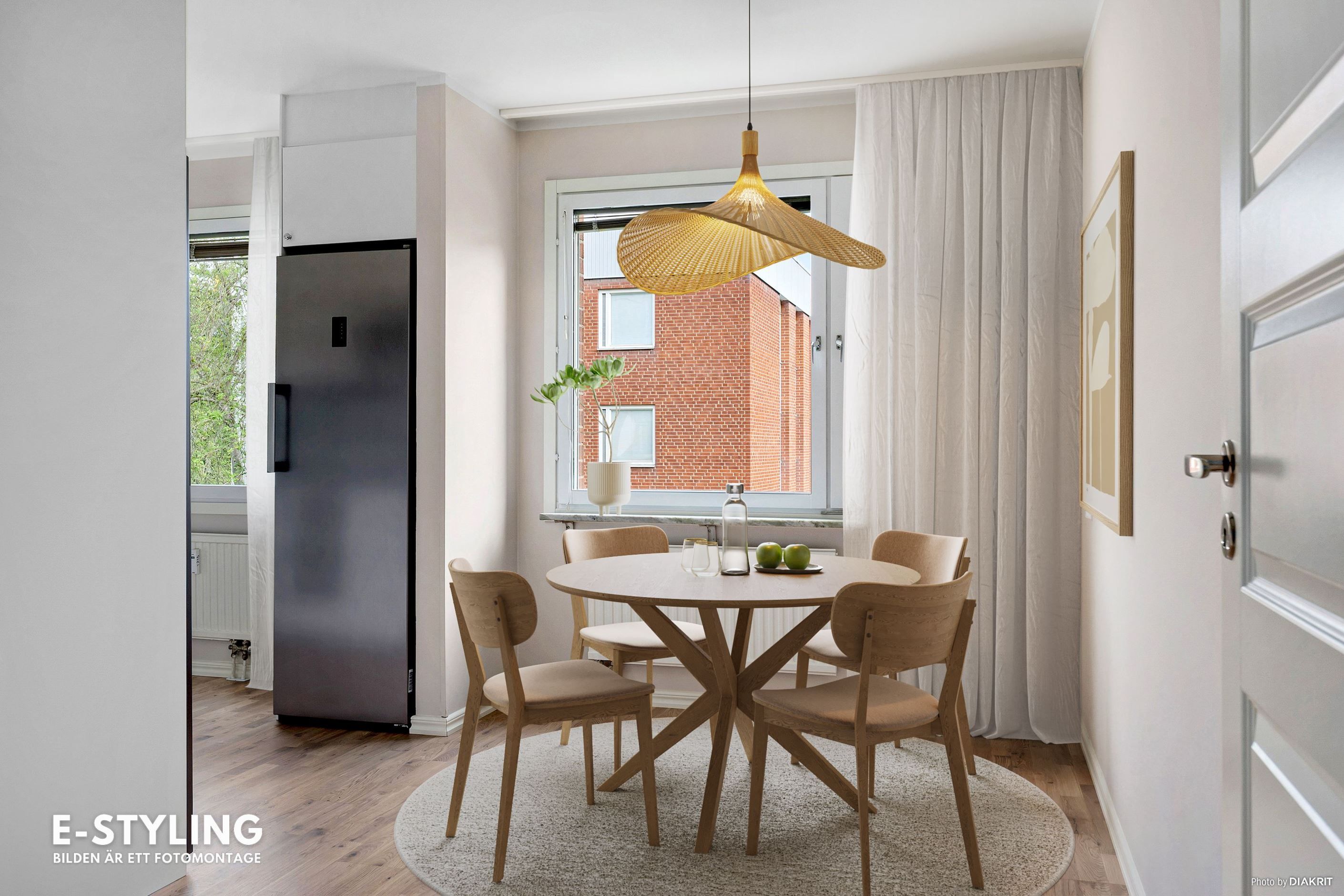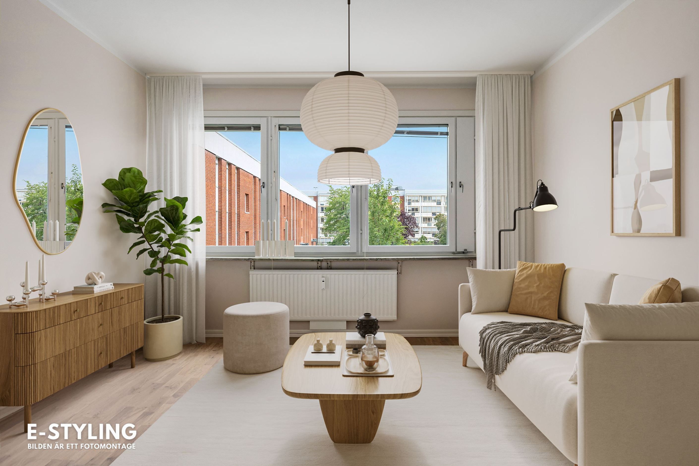 Nu har vi möjligheten att hälsa er varmt välkomna till en av områdets finaste trerummare. Lägenheten är belägen i ett av de populära femvåningshusen centralt på området, insynsskyddat och med grönska utanför fönster och balkong i dubbla väderstreck.
