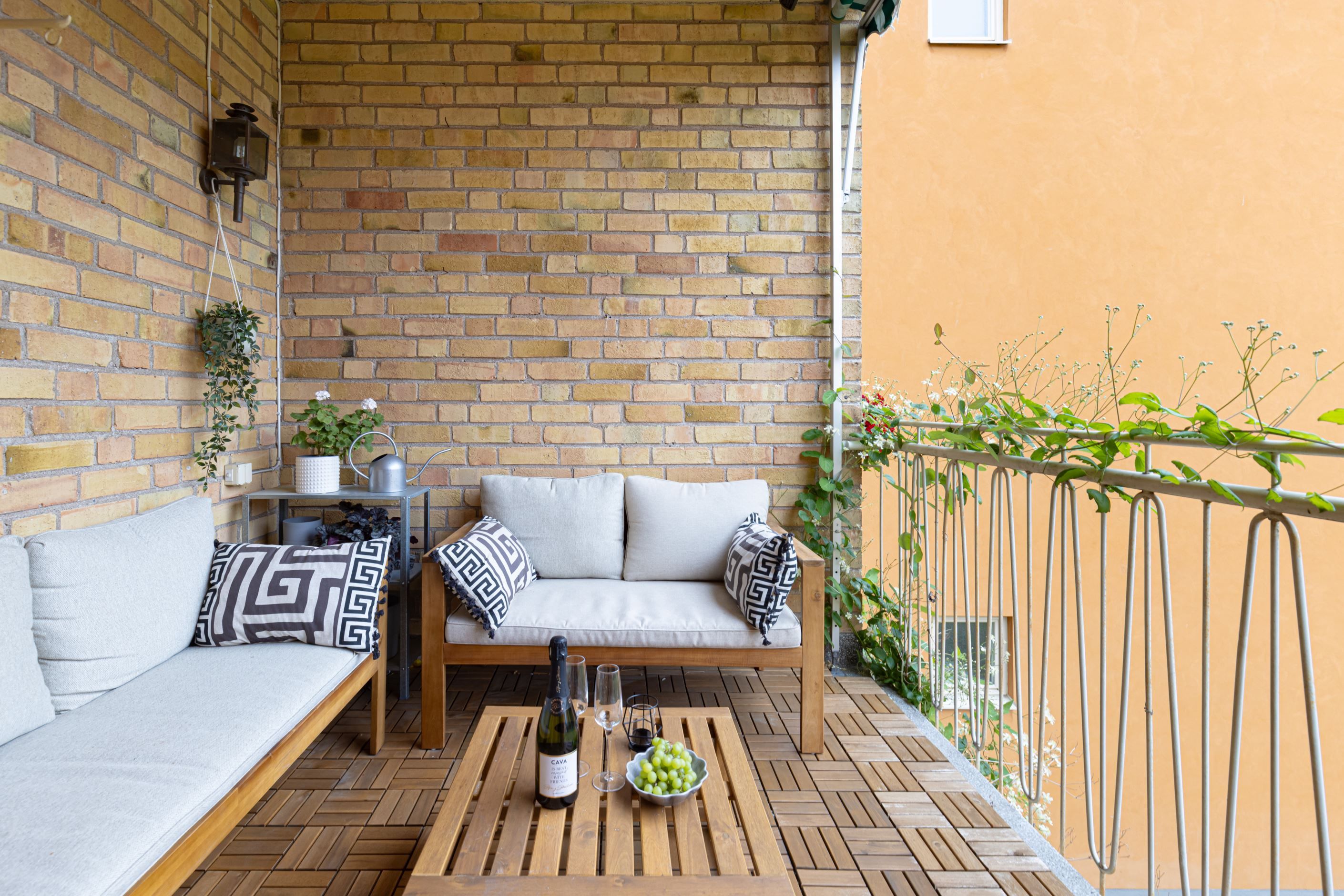 Från ett av sovrummen når du den mysiga loggian – en vindskyddad plats perfekt för morgonkaffet eller eftermiddagens sol. Den lummiga innergården ger en känsla av lugn mitt i staden och bjuder in till både avkoppling och sociala stunder.