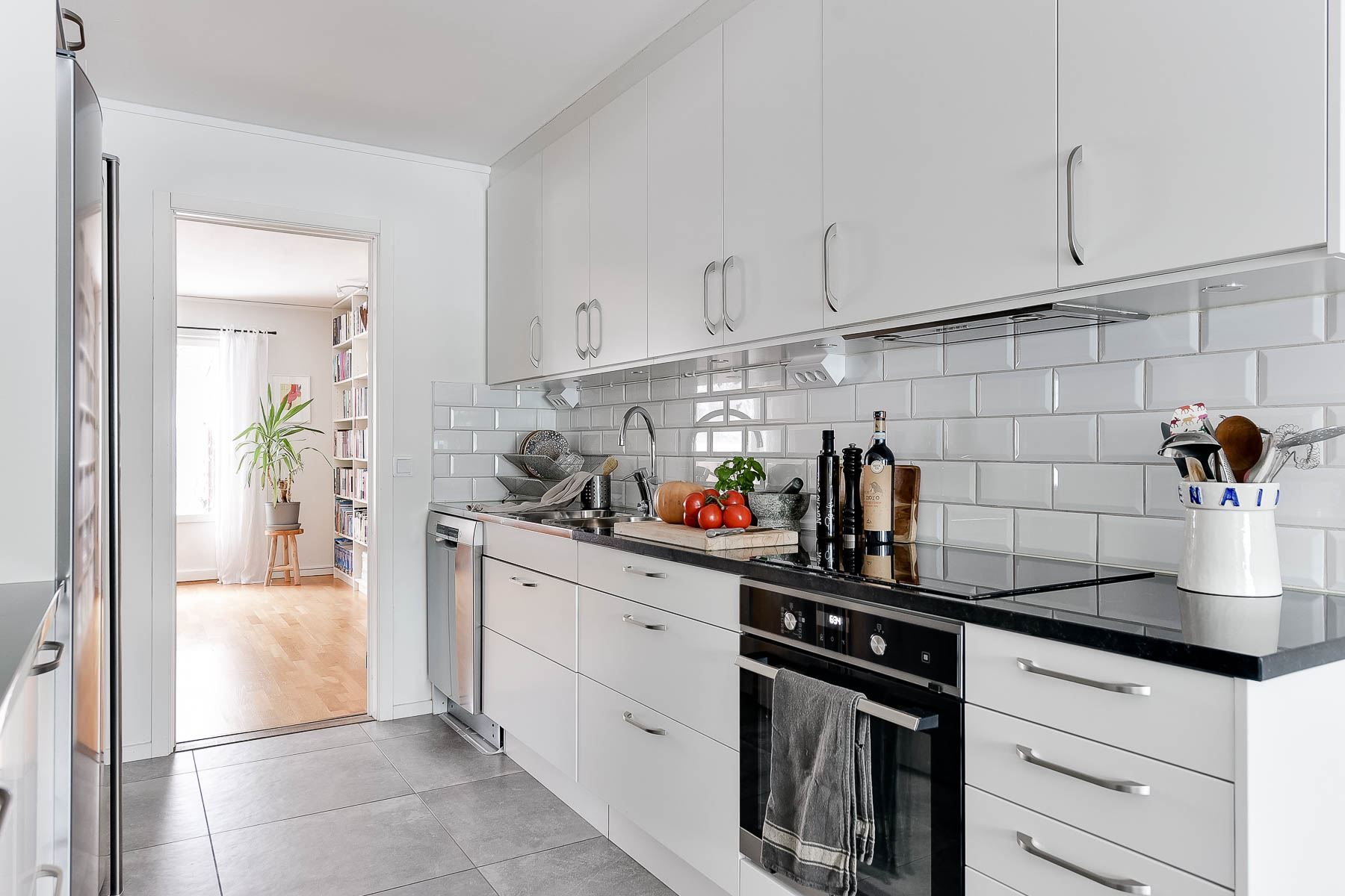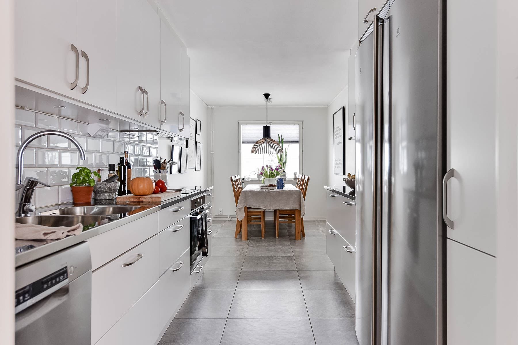Entréplanet välkomnar dig med ett smakfullt och modernt kök med matplats. Det rymliga vardagsrummet inbjuder till avkoppling och umgänge, med direkt utgång till husets baksida, vilket förlänger vardagsrummet under sommarmånaderna. Här finns även en praktisk gäst-WC.