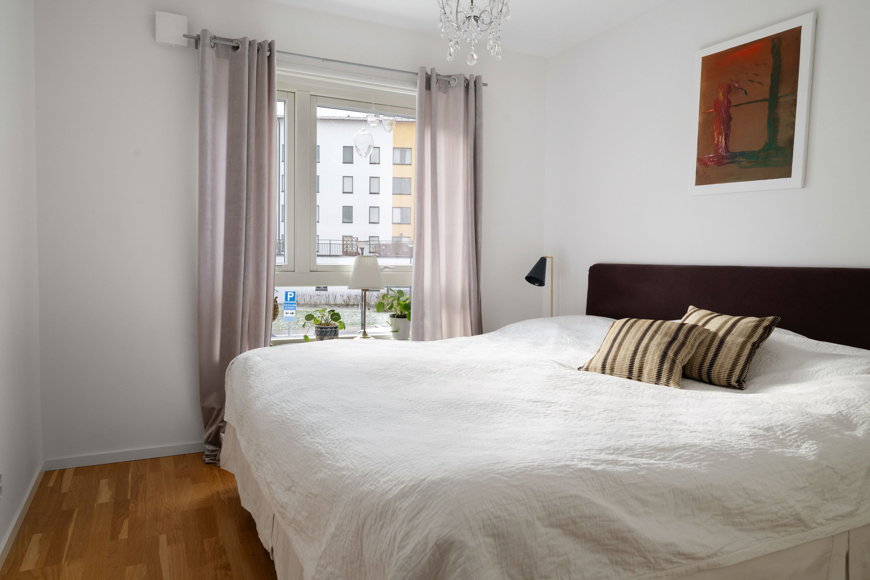 -Tre välplanerade och rymliga sovrum. I ett av sovrummen finns en stor inbyggd garderob med gott om plats för förvaring