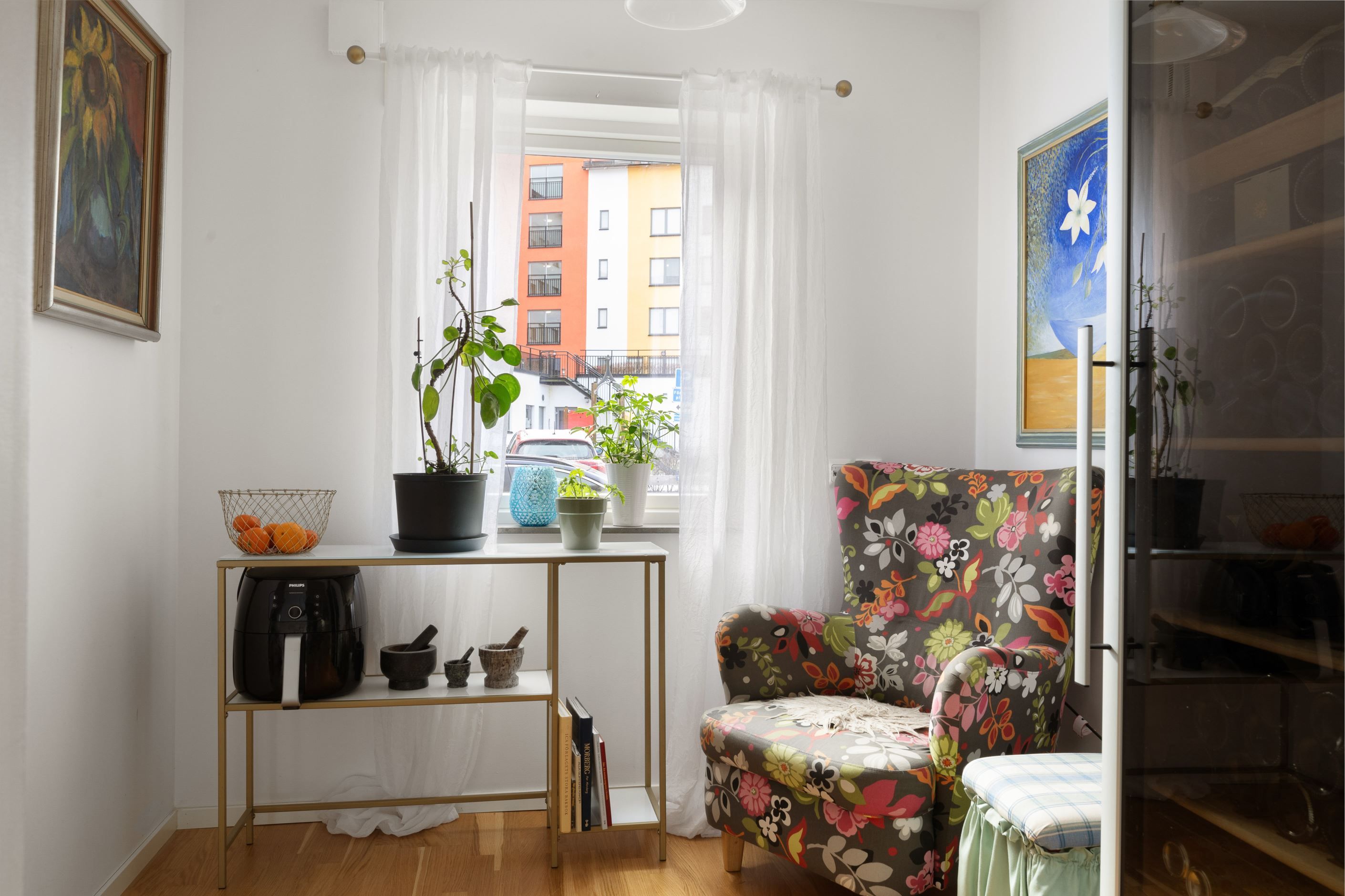 -Vardagsrum med utgång till det inglasade uterummet med golvvärme