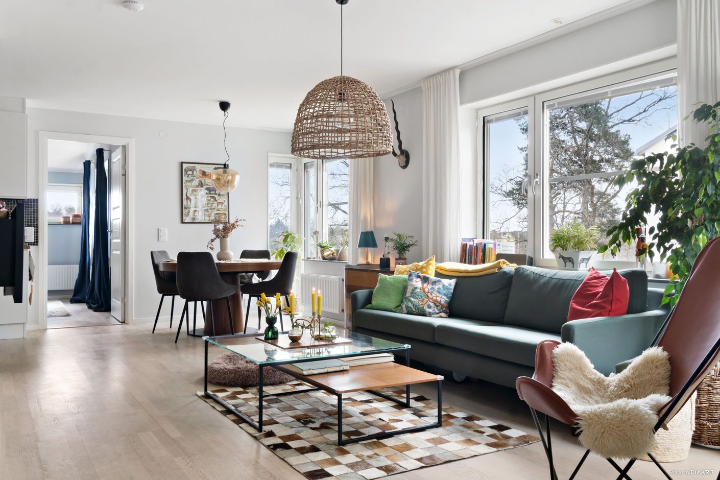 Bostaden erbjuder tre sovrum samt ett extra allrum som ger flexibilitet för exempelvis hemmakontor, tv-rum eller lekyta. Två rymliga badrum höjer komforten ytterligare – ett med badkar för avkopplande stunder och ett med dusch.