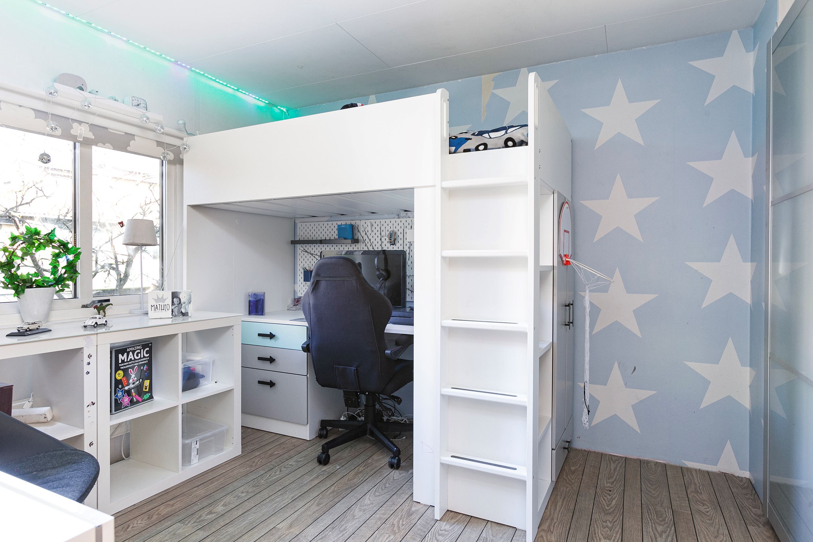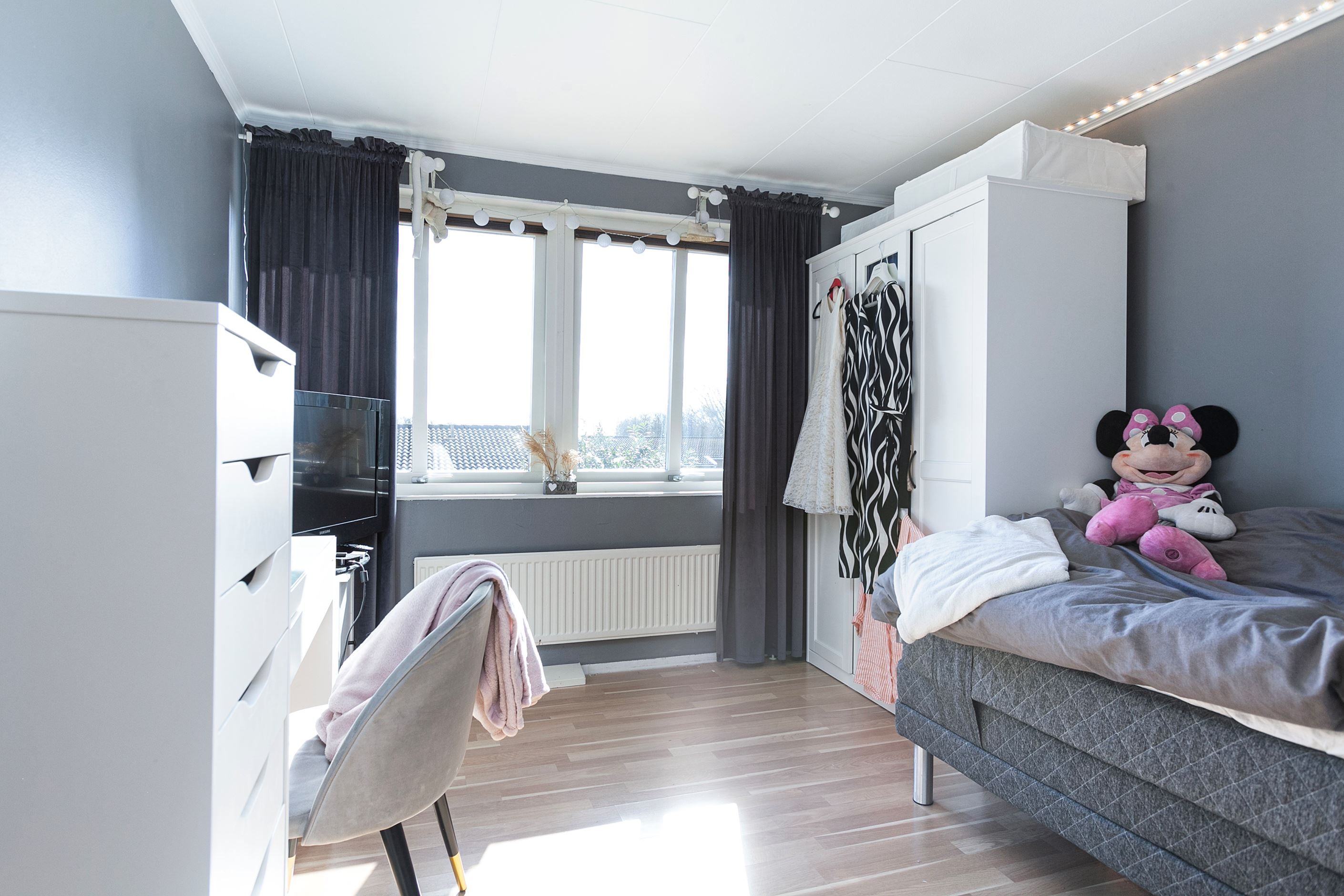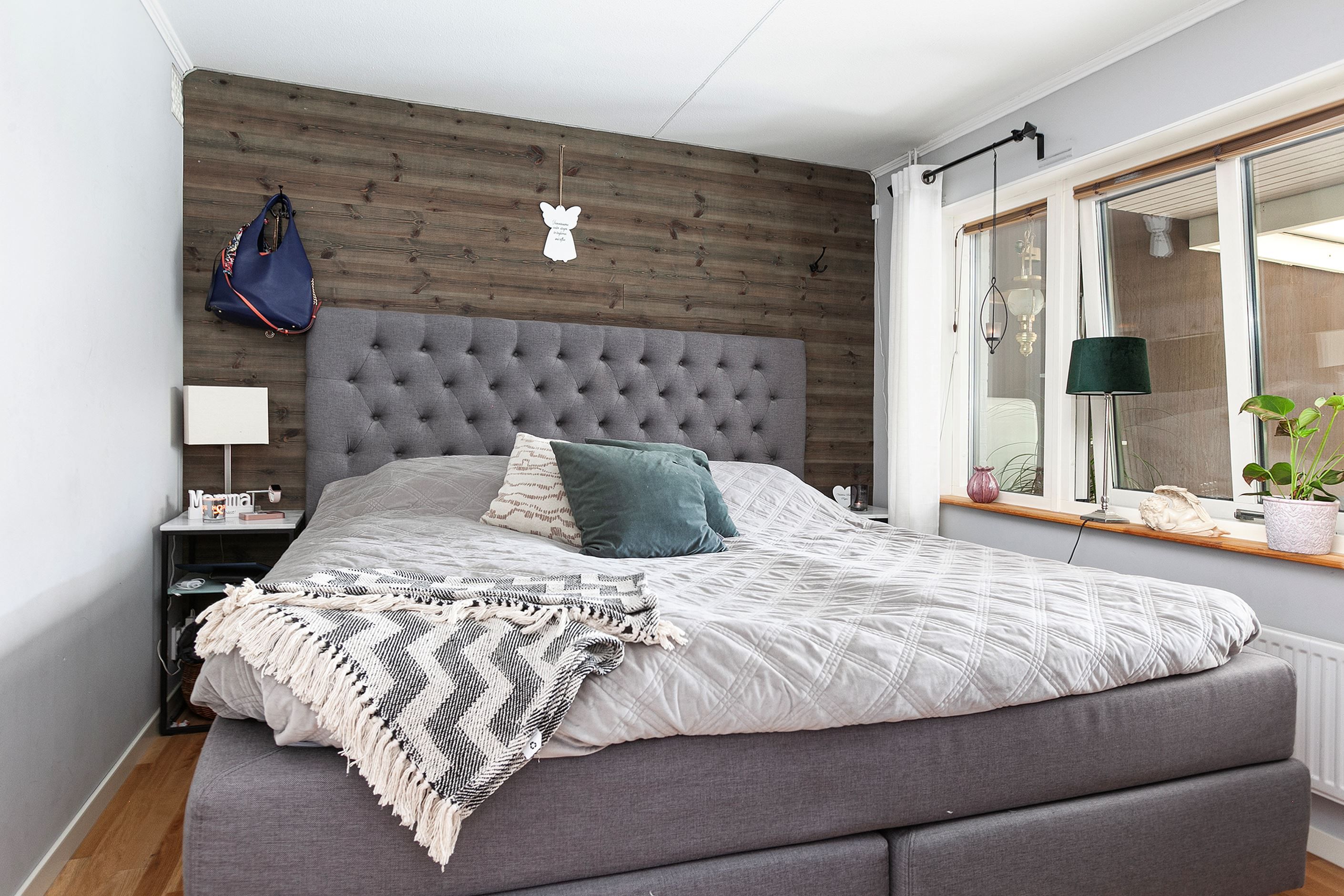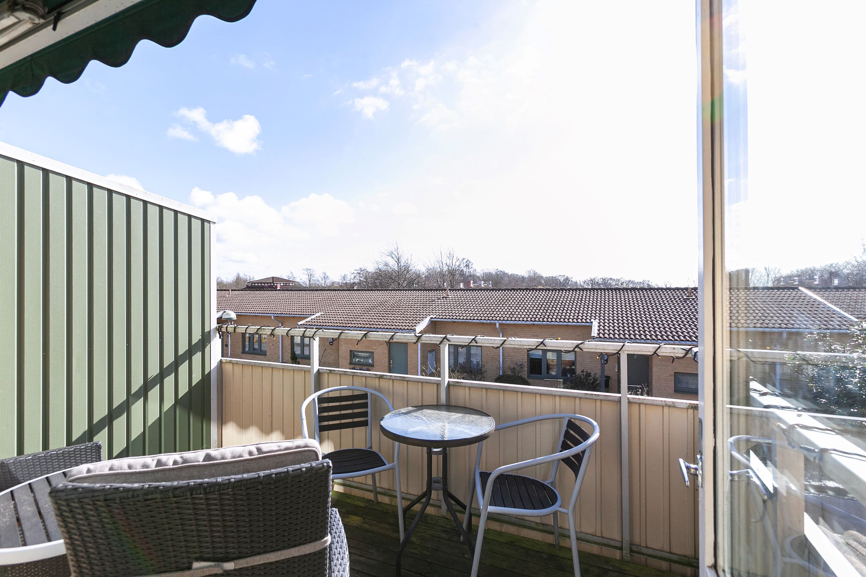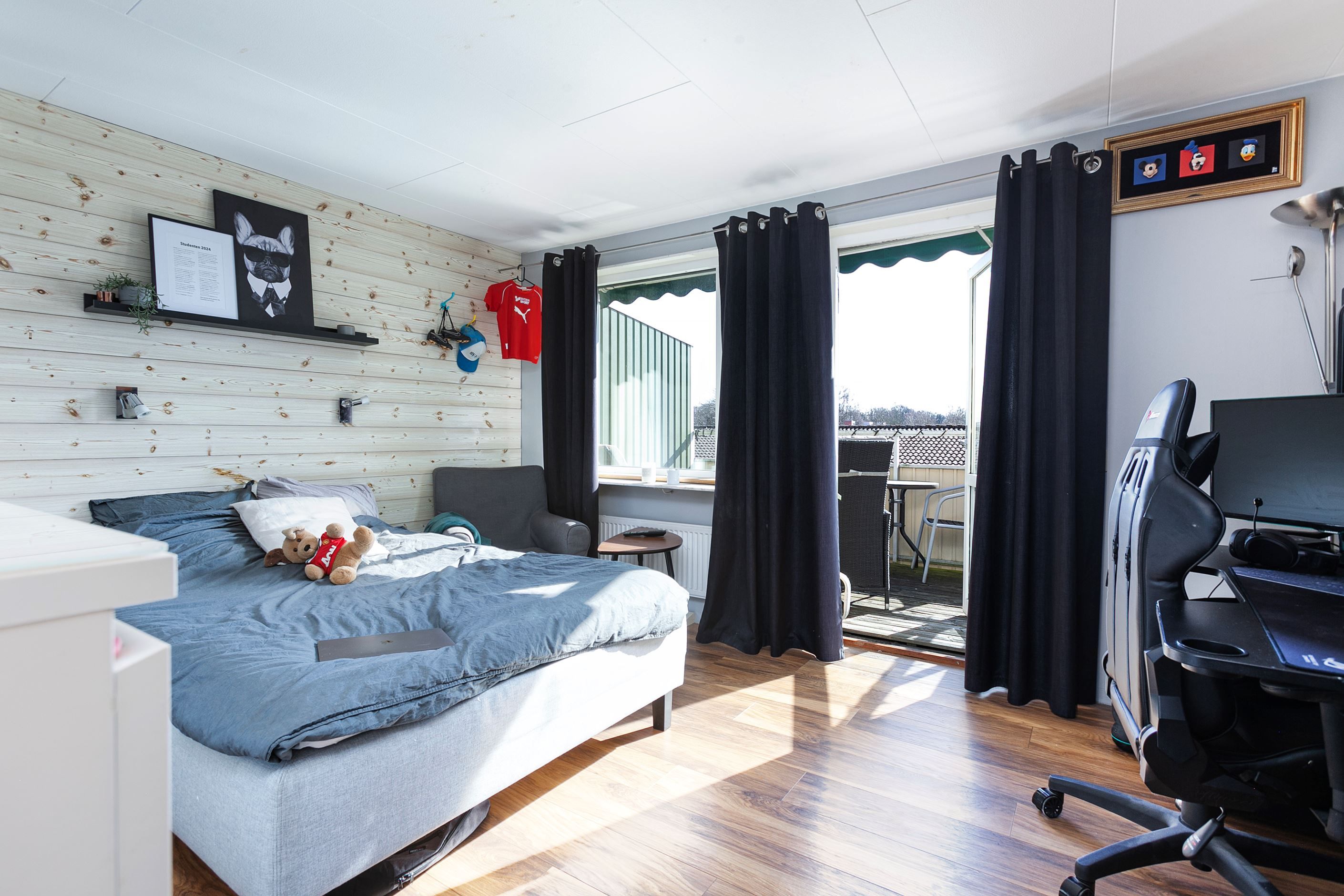 På övre plan väntar tre rymliga sovrum, vilket ger möjlighet till både familj, gäster eller hemmakontor. Från ett av rummen leder en balkong ut med härlig utsikt över omgivningarna. Här uppe finns även bostadens andra badrum.