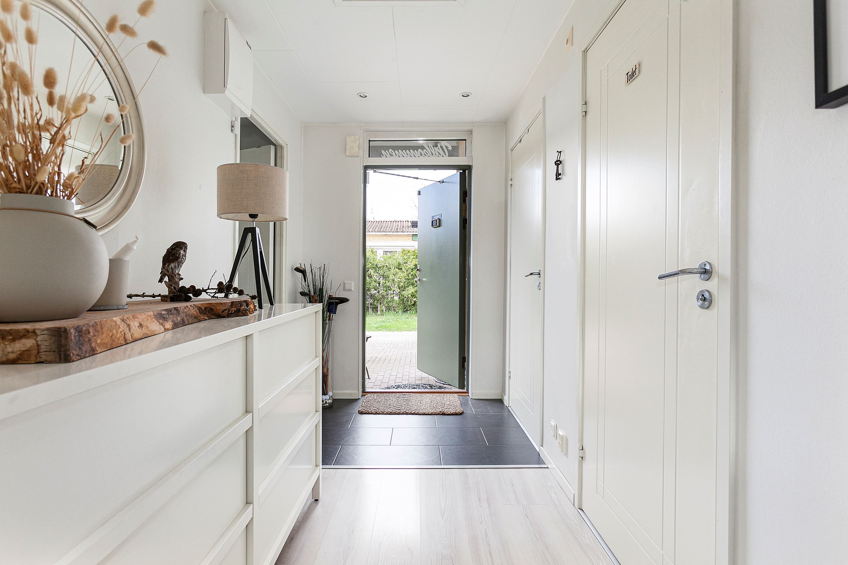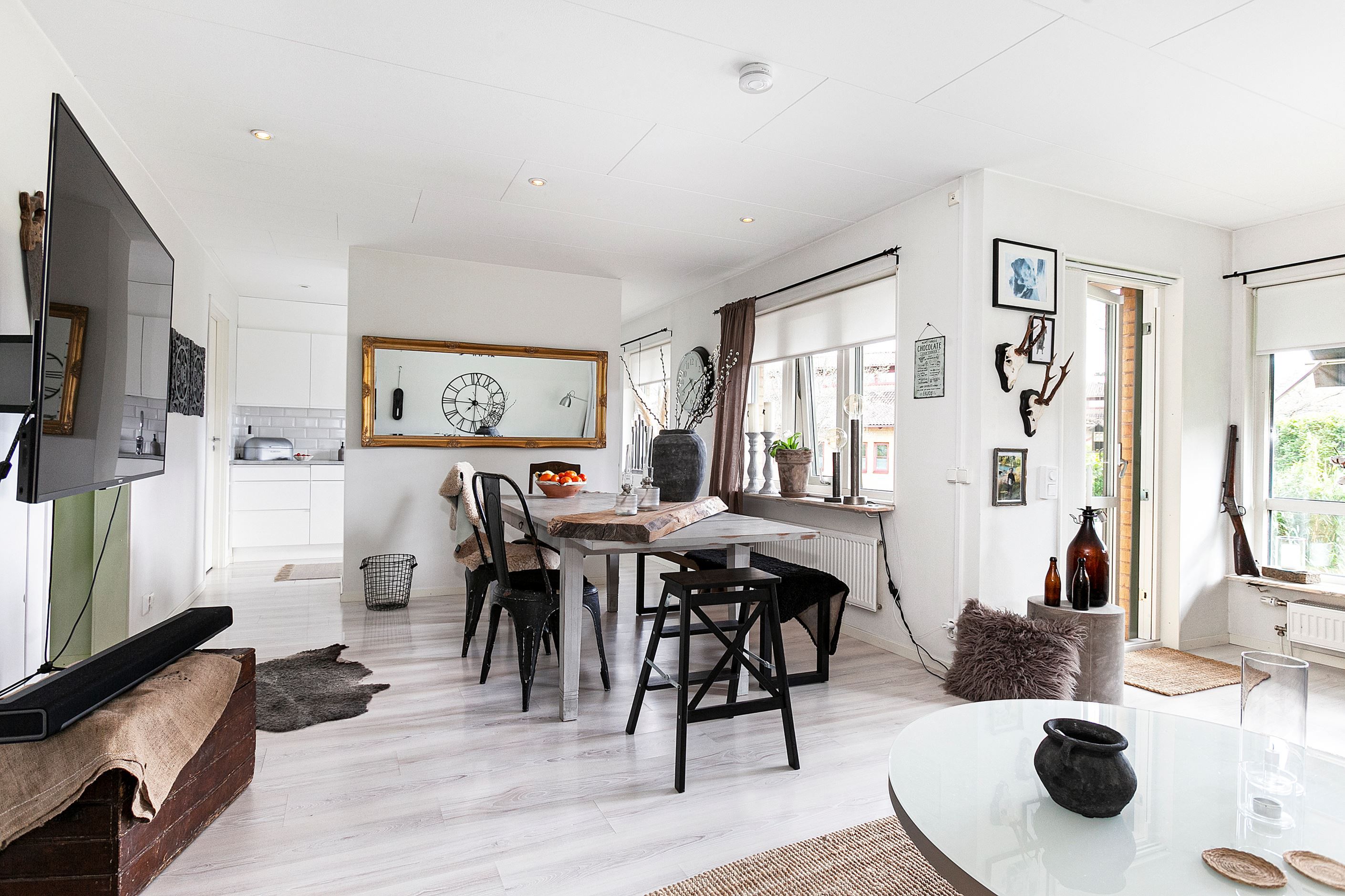 Vid entrén möts du av en möblerbar hall. Den öppna planlösningen skapar en känsla av rymd och samtidigt en perfekt plats för umgänge och avkoppling. Vardagsrummet erbjuder gott om plats för soffgrupp och TV-hörna. Den integrerade matplatsen intill det moderna köket med plats för hela familjen. Från vardagsrummet har du en utgång till den stensatta uteplatsen, perfekt för grillkvällar och avkopplande stunder under sommarmånaderna.