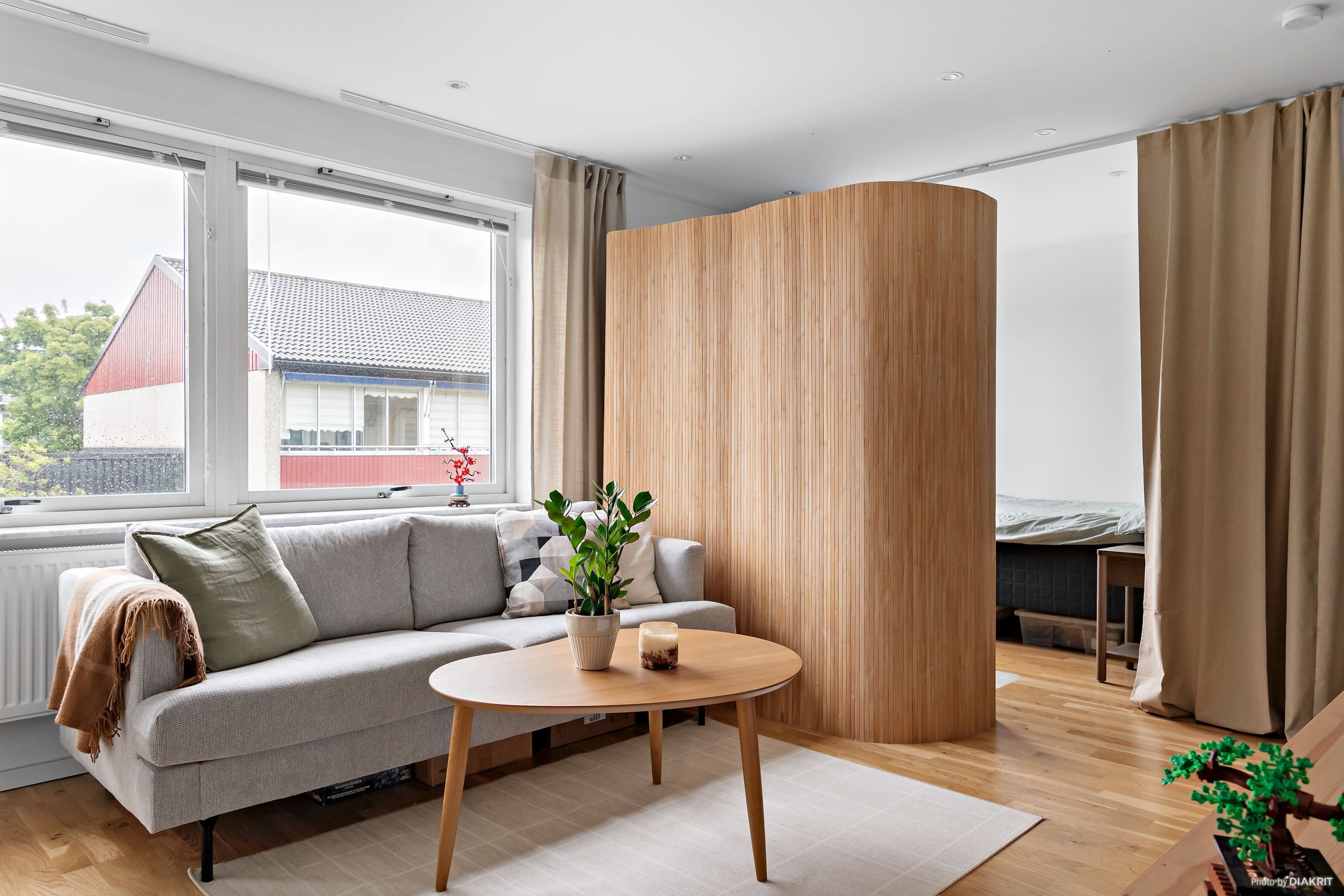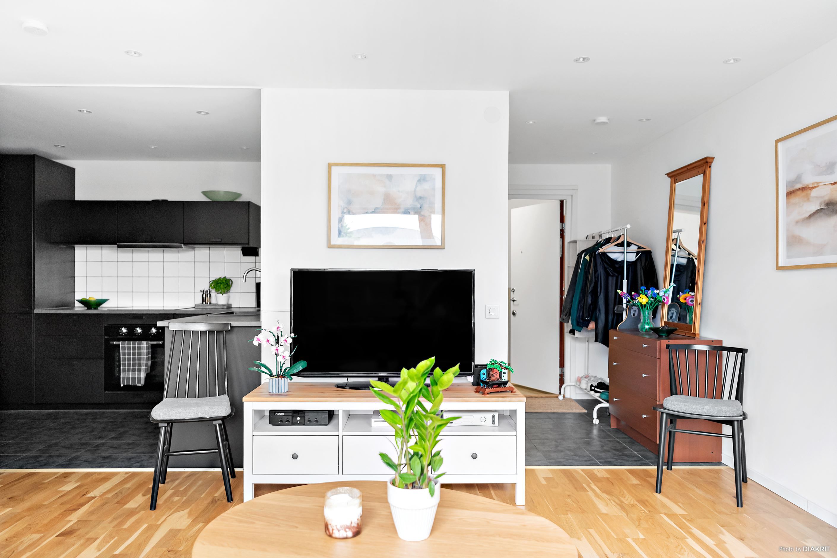 Du välkomnas av en praktisk tambur med direkt tillgång till ett fräscht och renoverat badrum. Vidare möts du av ett ljust och öppet allrum som harmoniskt binds samman med köket.