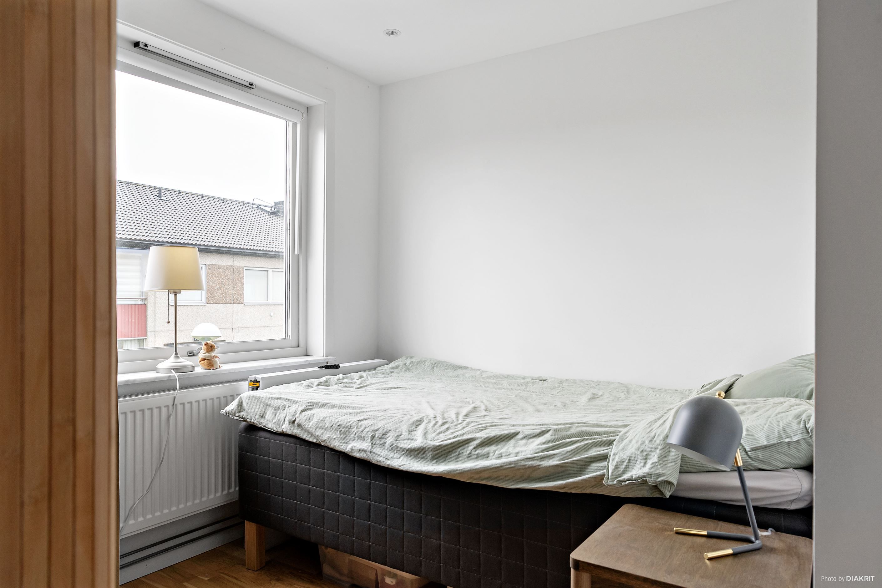 Från allrummet når du bostadens sovdel samt en rymlig klädkammare med goda förvaringsmöjligheter. Ljusa ytskikt och väl omhändertagna materialval präglar hela bostaden.