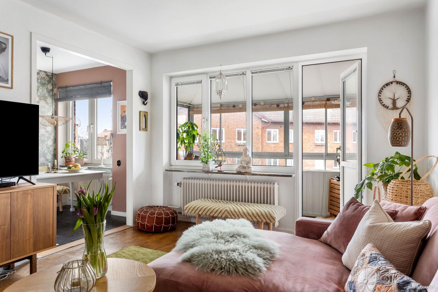 Högst upp i huset med hiss från markplan finner vi denna genomgående tvårummare med inglasad balkong i västerläge. Vi erbjuds delvis öppen planlösning mellan det fint renoverade köket och det trevliga vardagsrummet vilket ger en härlig social yta. Från vardagsrummet når man även den inglasade balkongen med grönskande utsikt över gården. Lägg därtill ett generöst sovrum med två garderober och gott om plats för dubbelsängen och lite till. Här bor du i ett hemtrevligt boende i HSB BRF Tapperheten 4 en förening som äger marken och erbjuder en trivsam innergård att njuta av under sommarhalvåret.