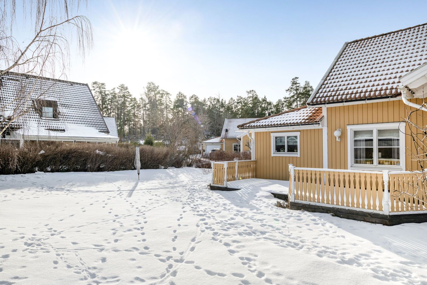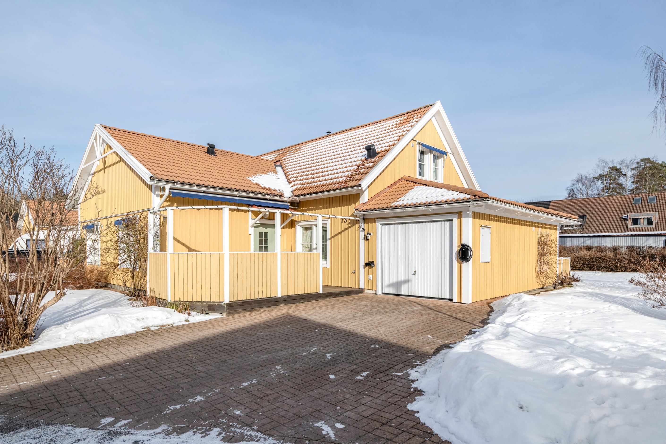 Gavelläget på tomten gör att den är stor och rymmer allt du önskar, samtidigt som den är insynsskyddad längst in på gatan. Två rymliga trädäckade altaner finns, på både fram- och baksida, inkl markiser. Solläget är optimalt, med sol hela dagen, morgonsol på baksidan, sol under hela dagen på sidan av huset och kvällssolen har du på altanen på framsidan. Här har du dessutom en stor uppfart med plats för 2 bilar, och dessutom även i garaget. I gararet finns en vindslucka och förvaring på vinden. På uppfarten finns det installerat laddstolpe för elbil.