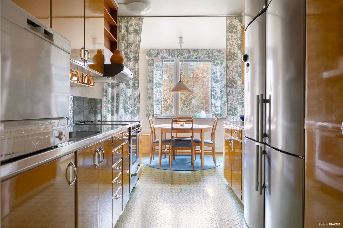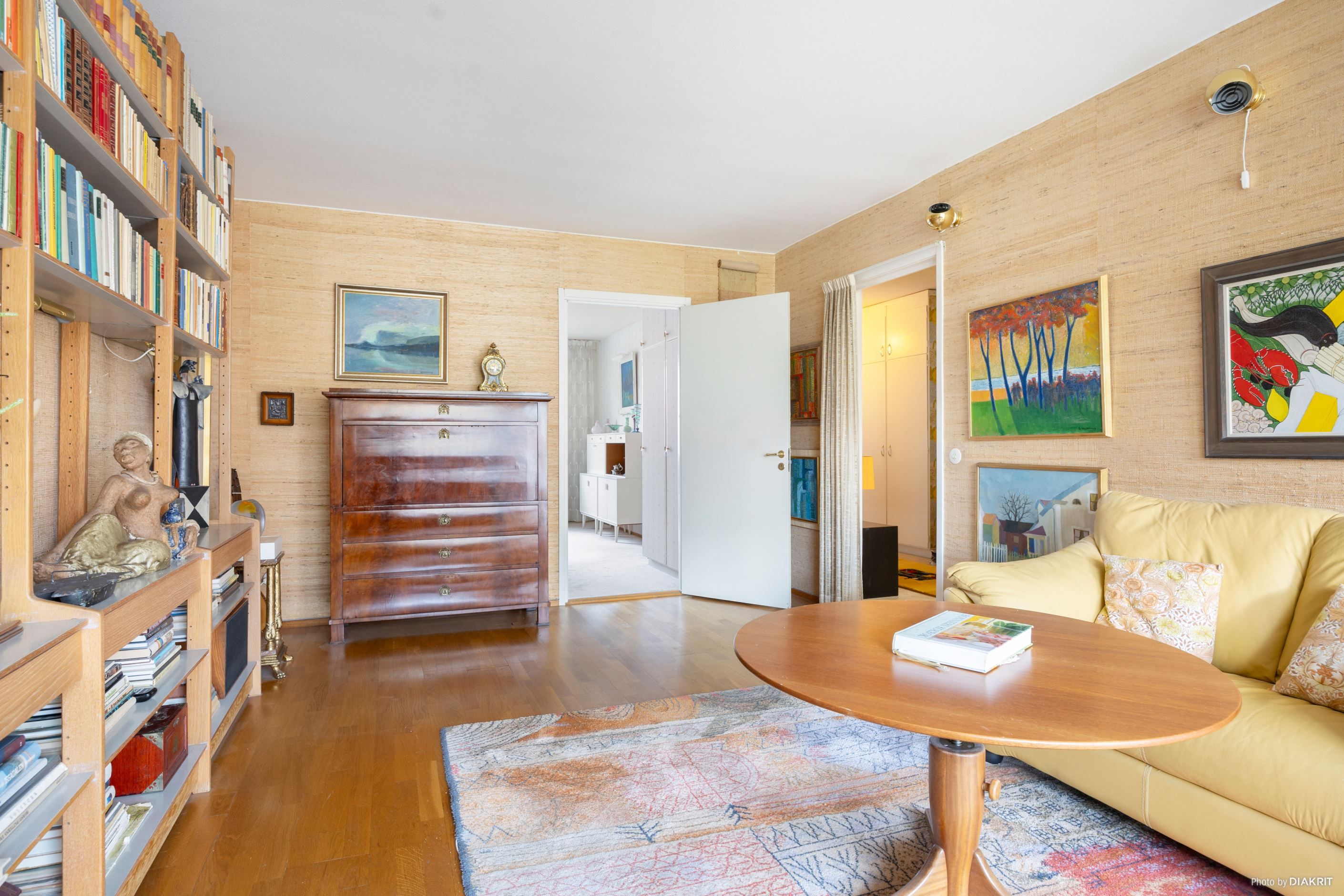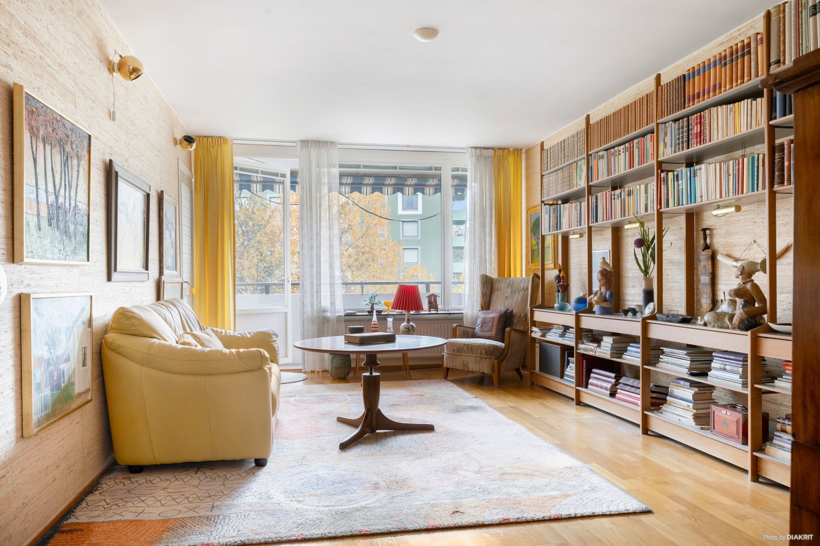 Bostaden är välplanerad och genomtänkt in i minsta detalj. Här möts du av två generösa sovrum, två badrum, ett stort dubbelsidigt kök med bevarade originaldetaljer samt ett luftigt vardagsrum med direkt utgång till den härliga balkongen, perfekt för sociala stunder året om. Läget är insynsskyddat och bostaden badar i naturligt ljus från stora fönsterpartier.