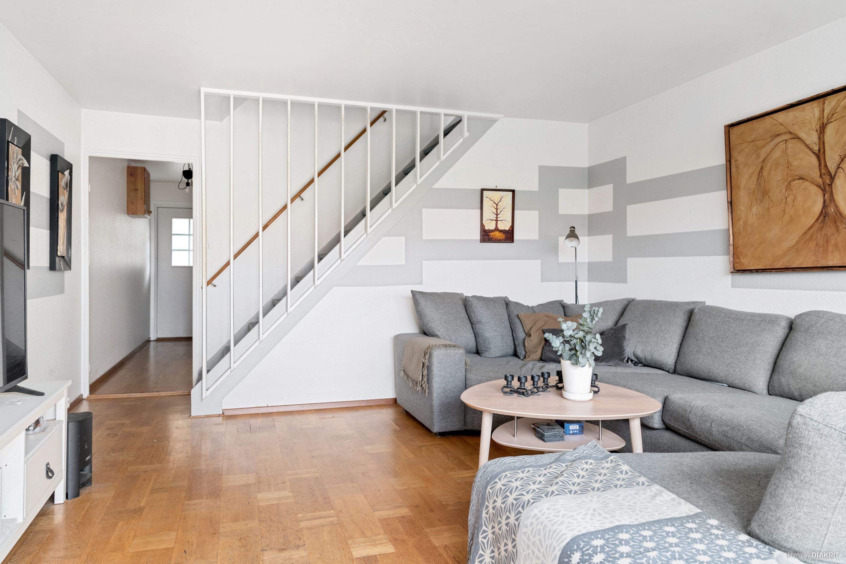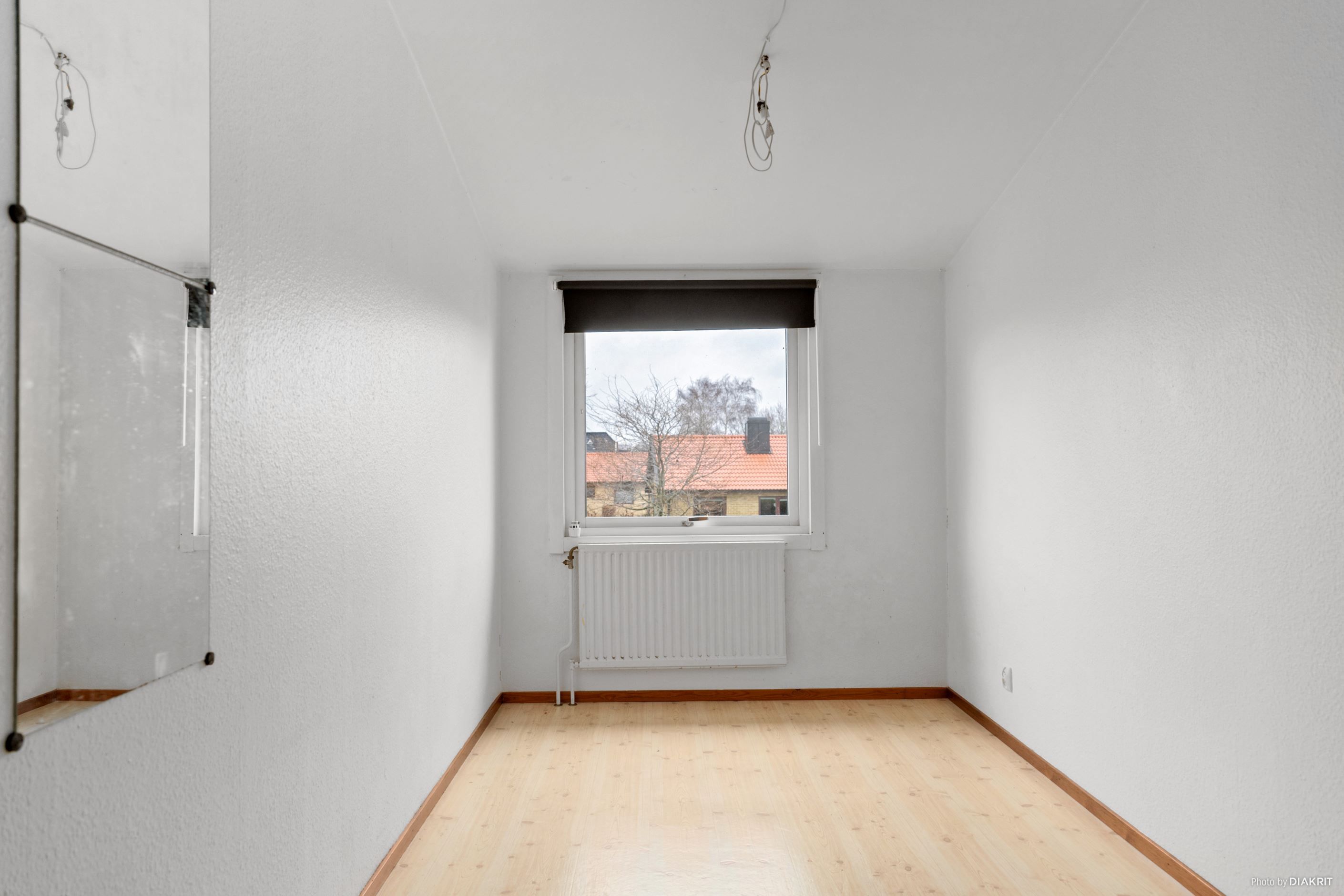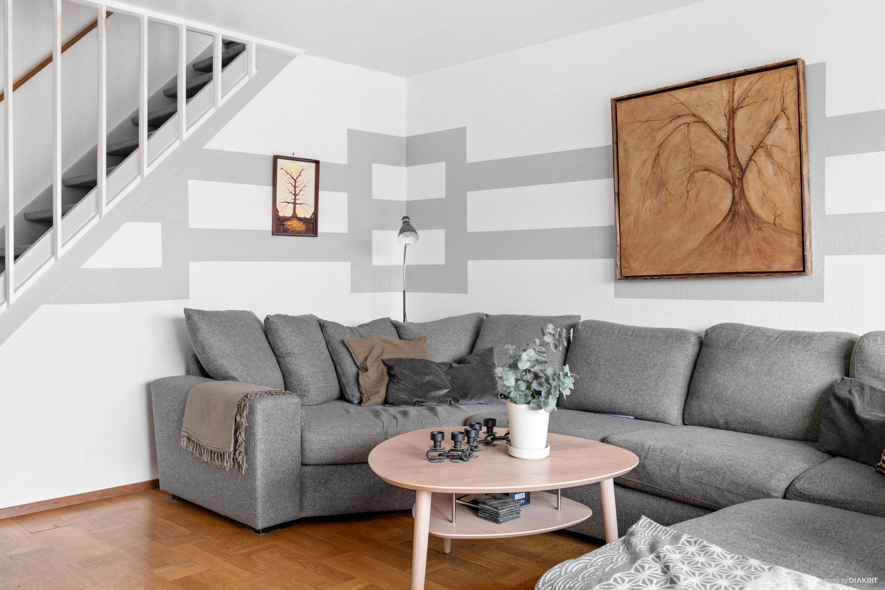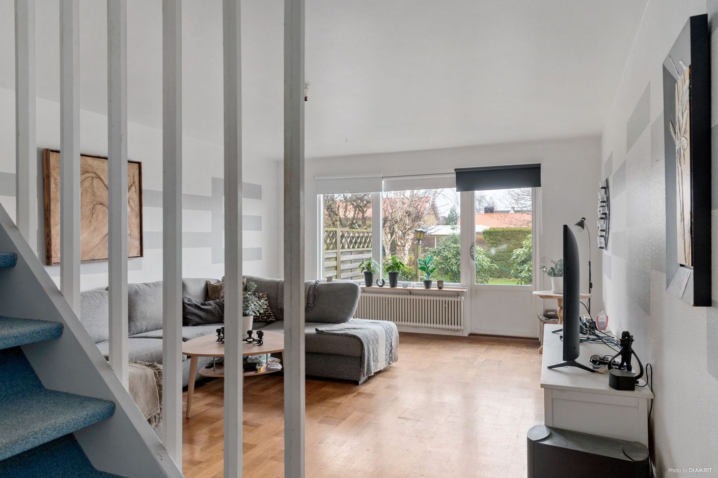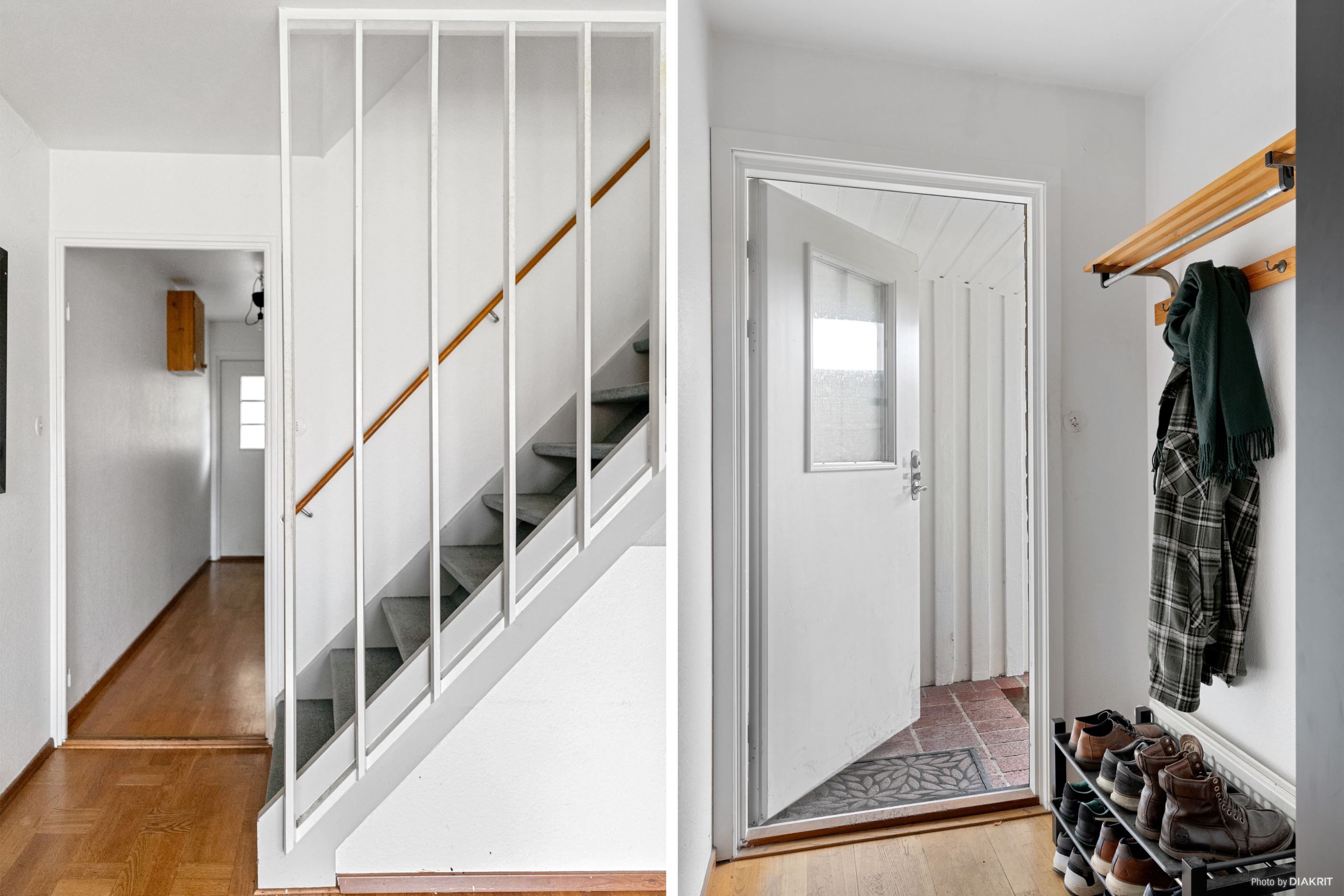 Huset fördelar sig över två plan och erbjuder en planlösning som passar både den mindre familjen och dig som vill ha extra rum för arbete eller hobby. På entréplanet finns kök, vardagsrum och bra förvaring. Från vardagsrummet nås den egna trädgårdstäppan – en härlig plats för utemöbler, odlingar och sköna sommarkvällar.