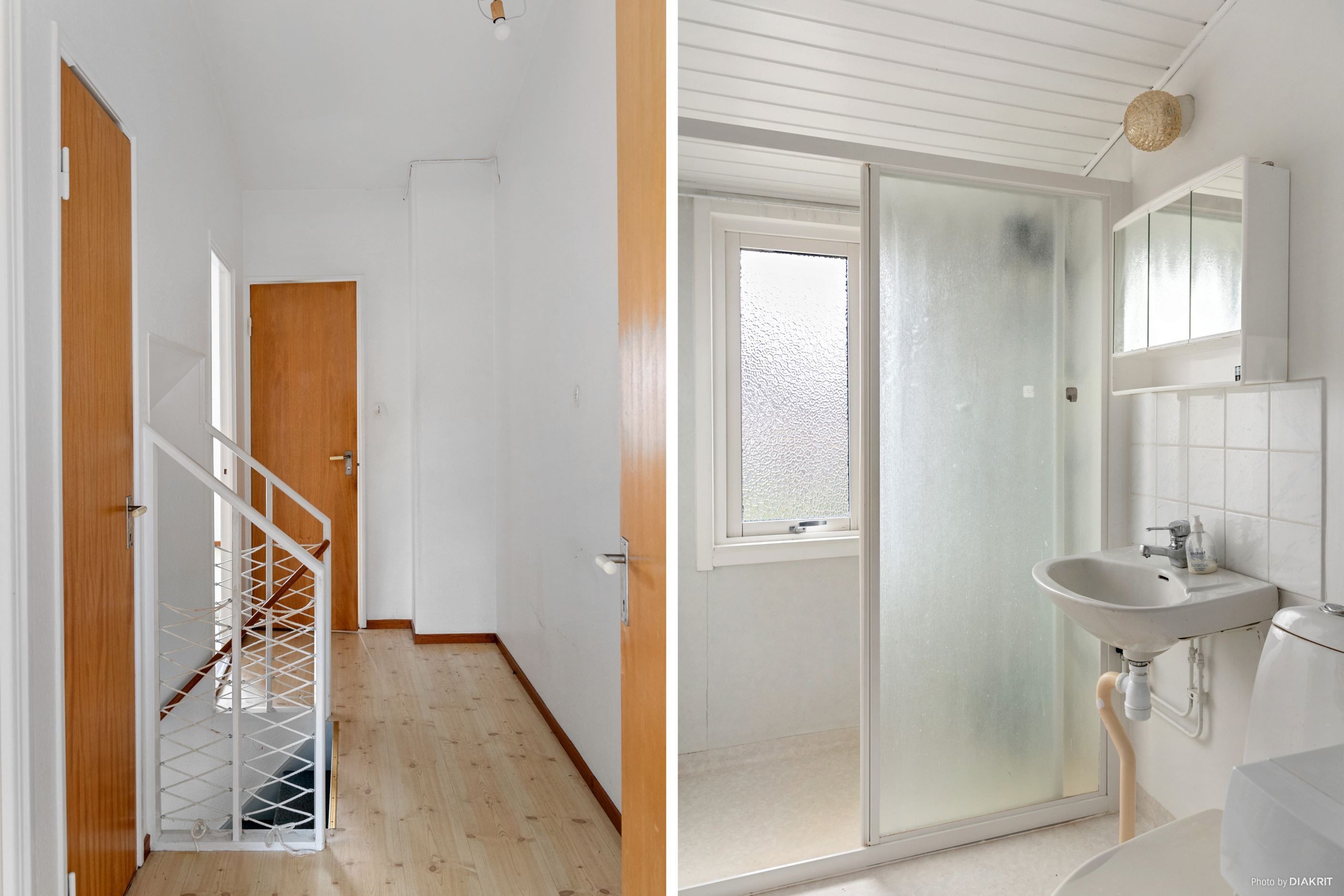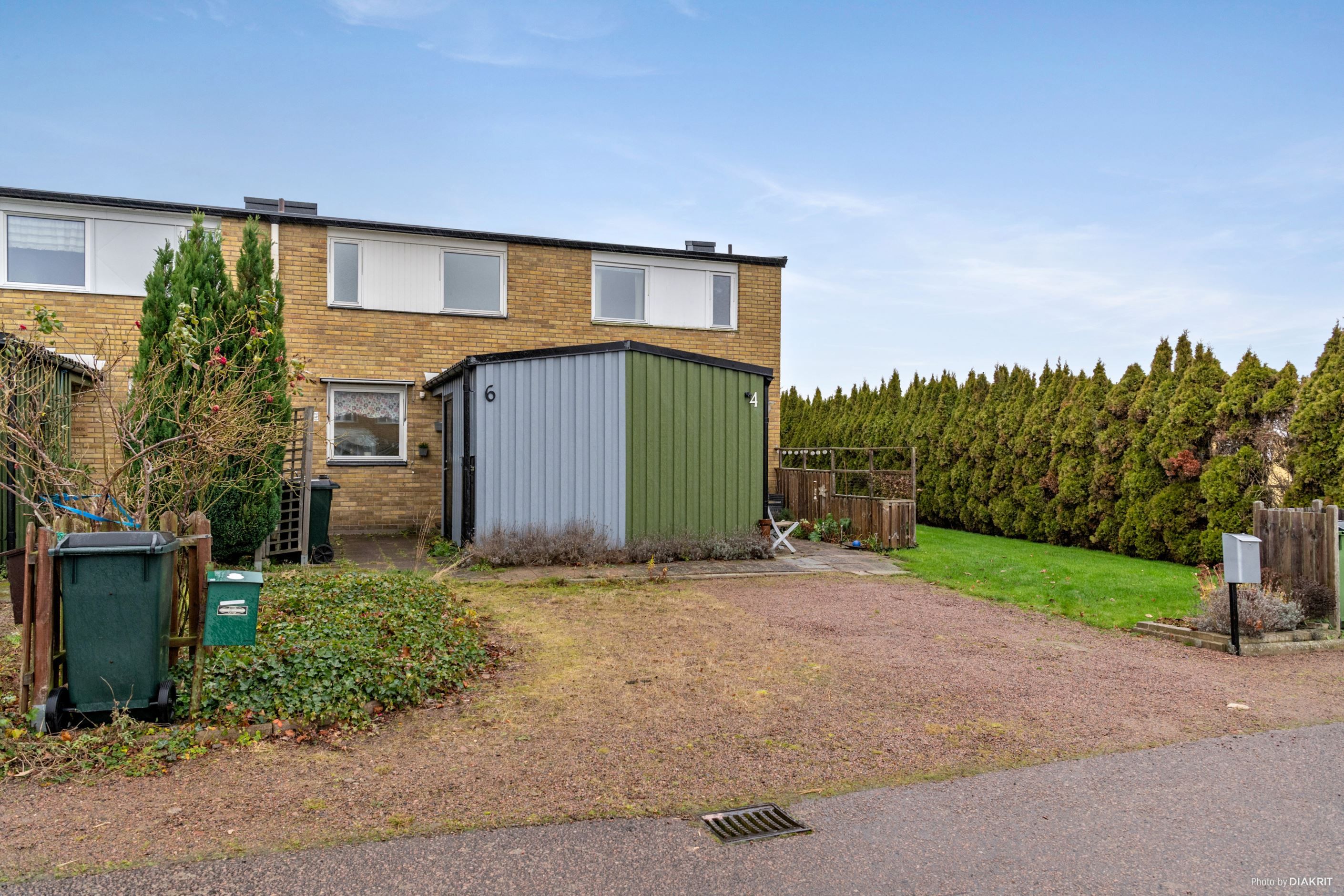 Utanför entrén finns ett praktiskt förråd som ger plats för cyklar, redskap och säsongssaker. Dessutom finns en egen uppfart med plats för bil – en uppskattad bekvämlighet i vardagen.