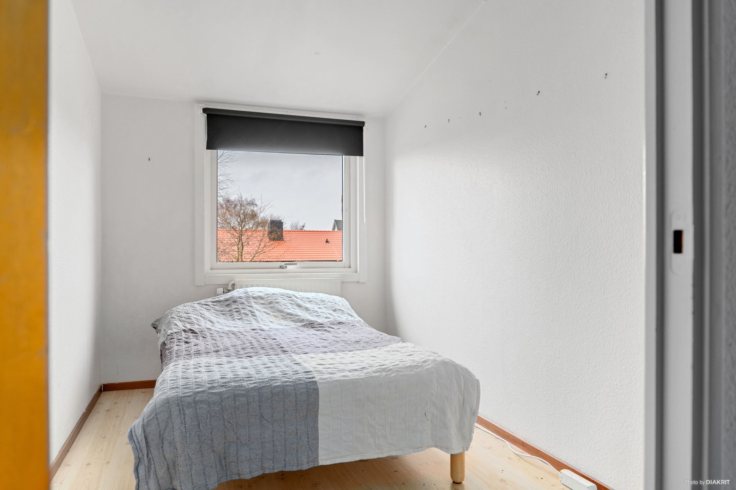 På övre plan finns tre sovrum i varierande storlek, ett badrum och en klädkammare. Här får alla sin egen plats och vardagen flyter smidigt.