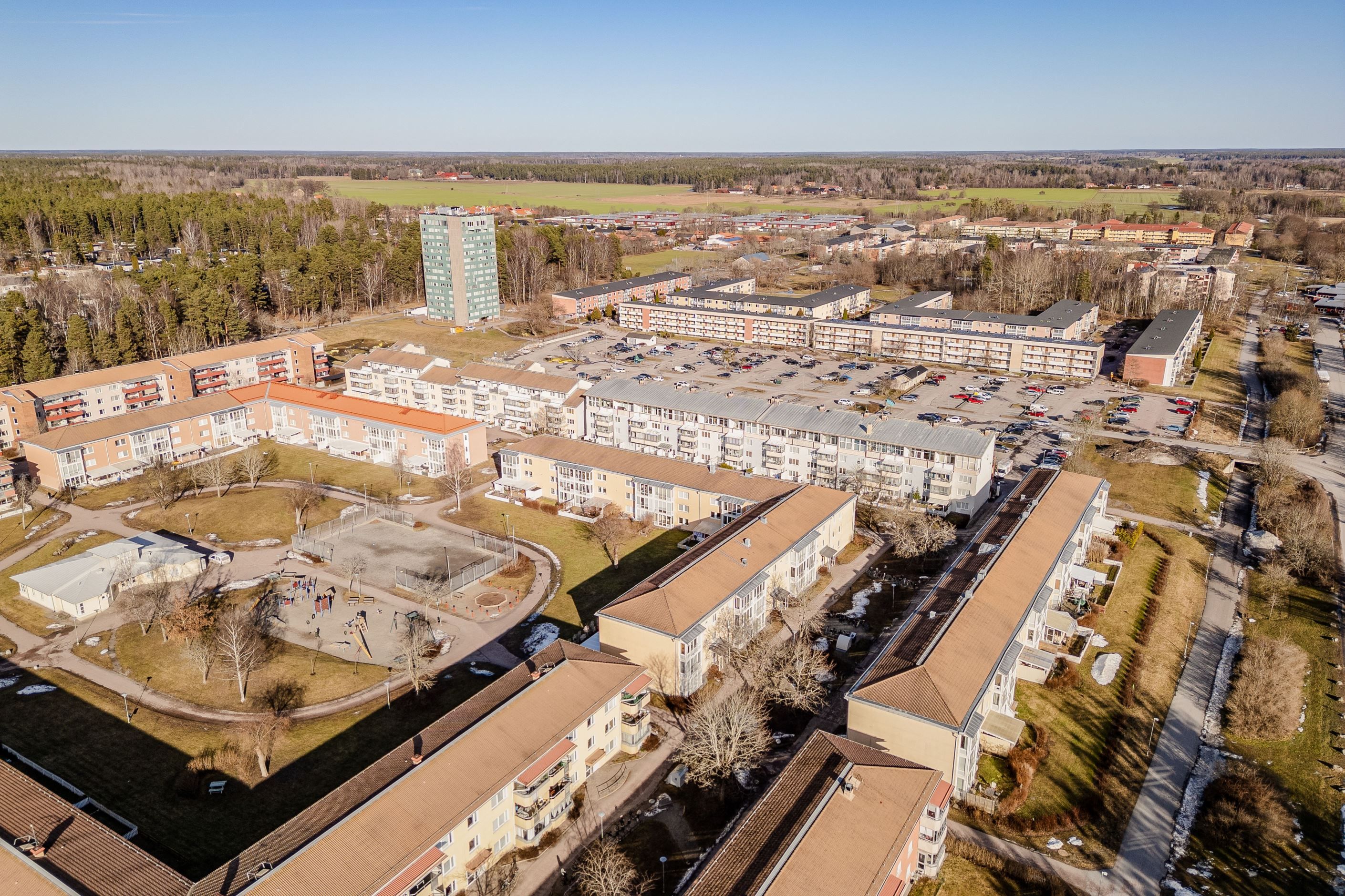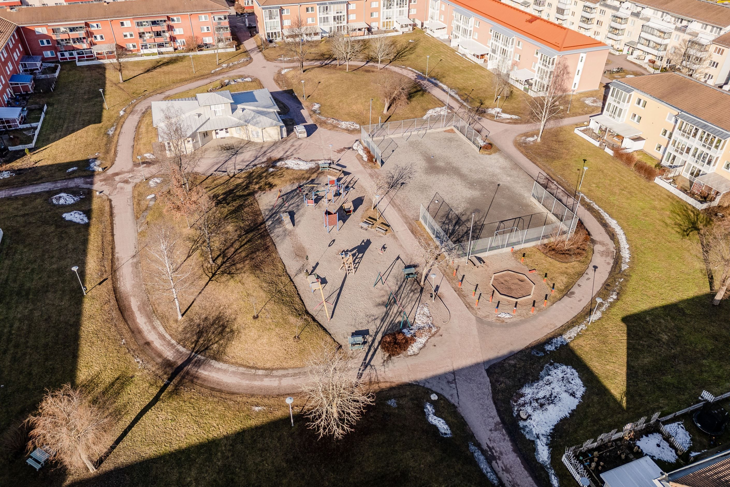 Här bor du i en välskött förening i ett lugnt och barnvänligt område. Precis utanför dörren finns lekplats och fotbollsplan där barnen kan leka tryggt. I närområdet hittar du dessutom allt som förenklar vardagen så som livsmedelsbutik, bensinstation, grundskola och förskola, allt inom bekvämt avstånd. Praktiskt förråd finns dessutom precis utanför bostaden.