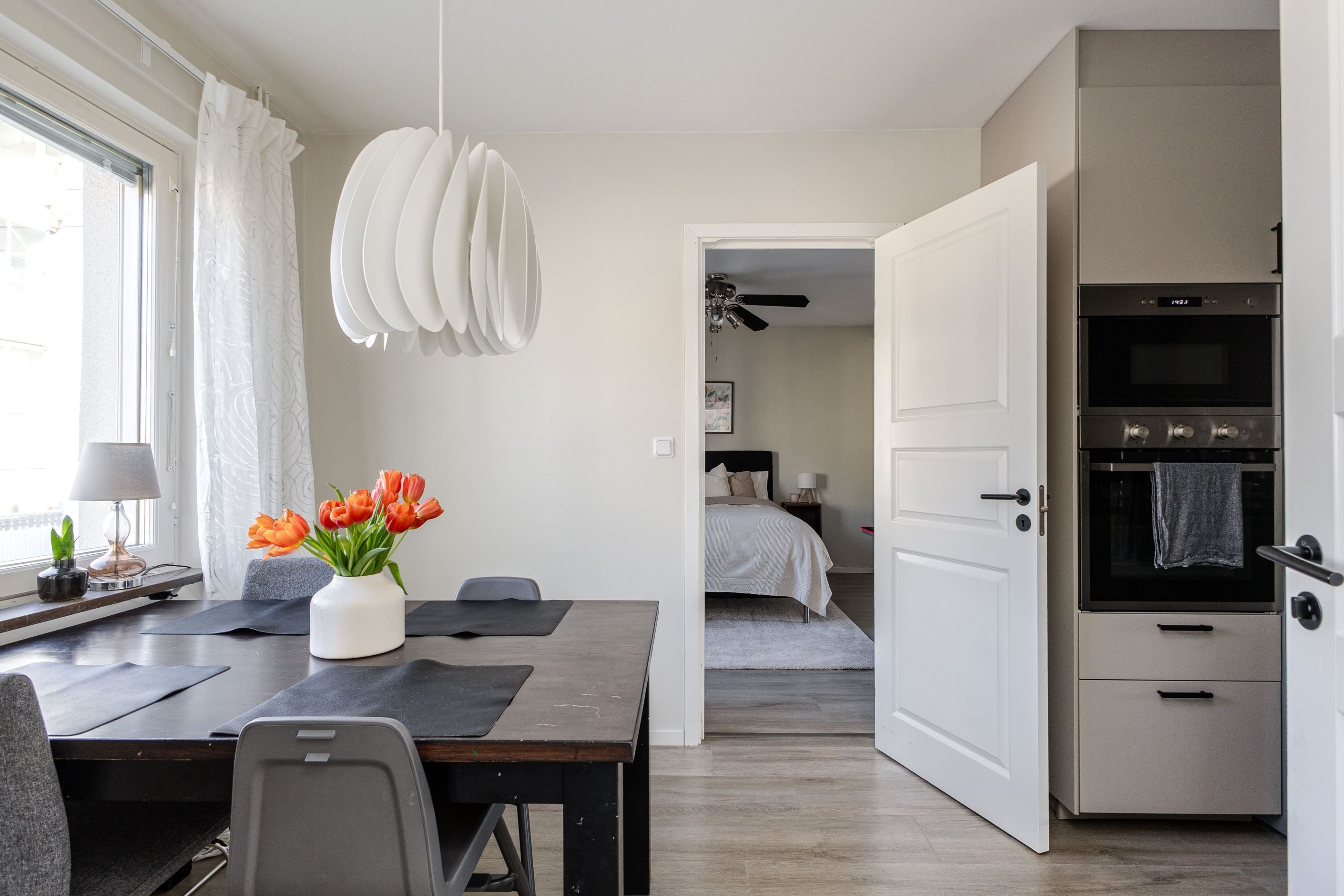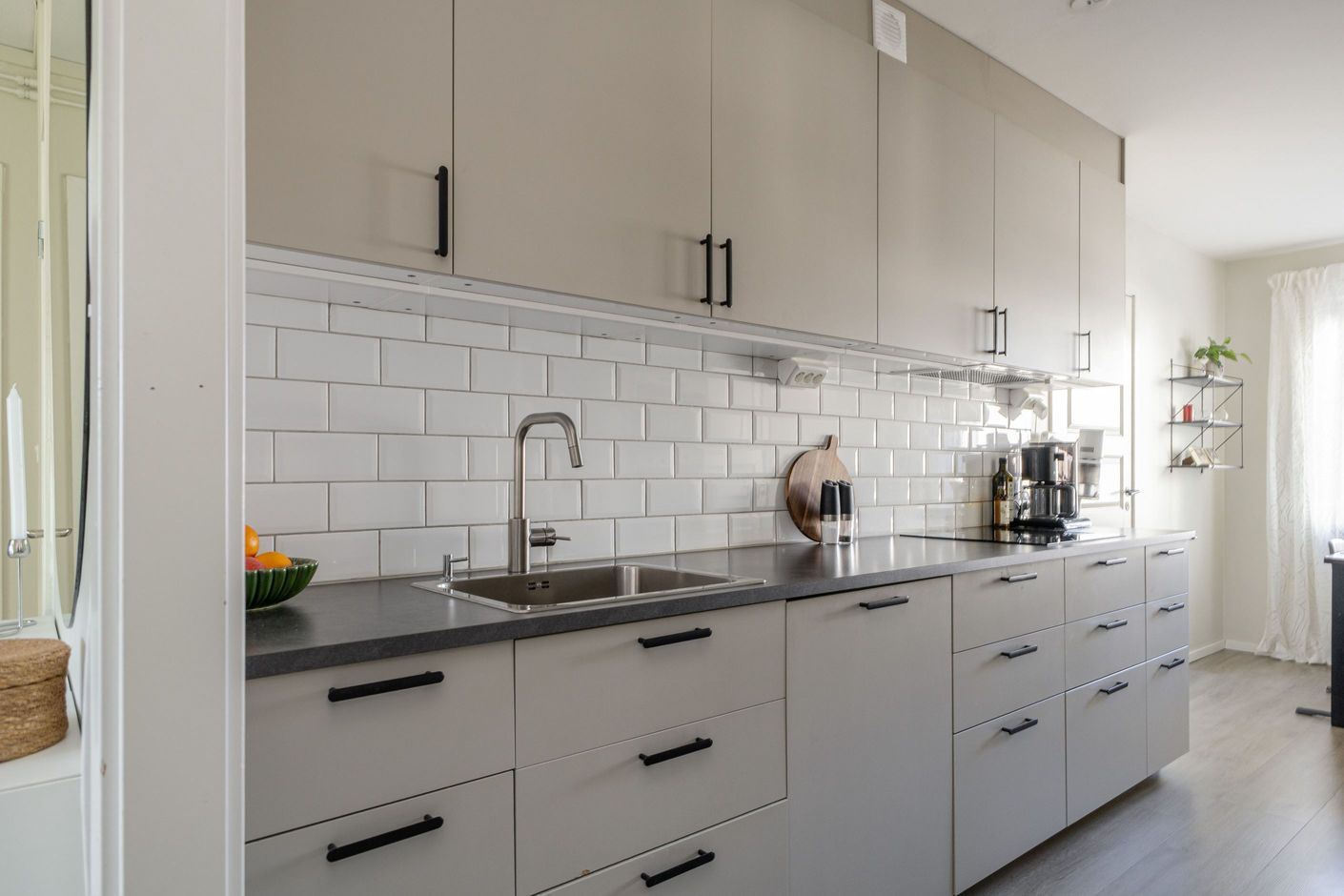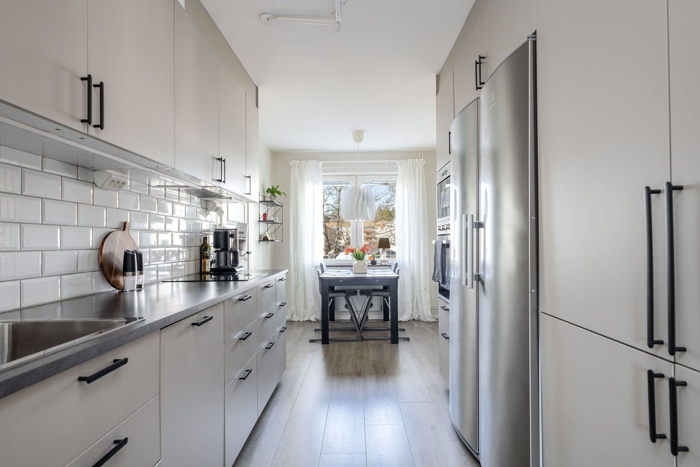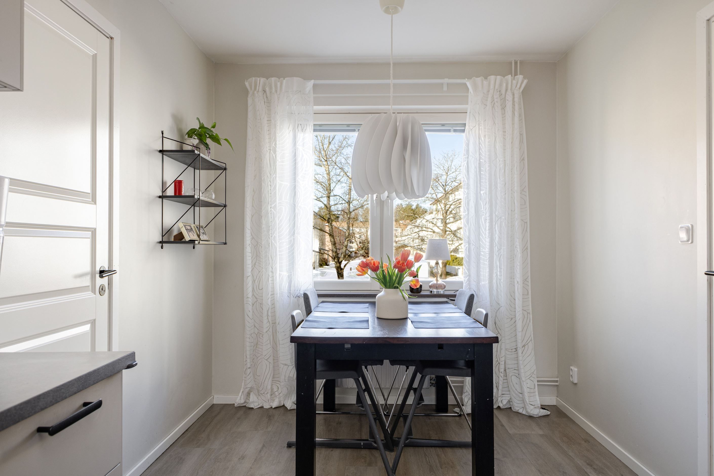 Redan i hallen möts du av en härlig känsla av rymd. Här finns gott om plats för ytterkläder och skor, och hela familjen kan klä på sig utan att behöva trängas. Vidare in i bostaden väntar det stilrent renoverade köket från 2022 - en plats där design möter funktion. Här finns gott om arbetsytor och förvaring, och vid det stora fönsterpartiet ryms en generös matplats där både vardagsmiddagar och långa helgfrukostar kan avnjutas i lugn och ro.