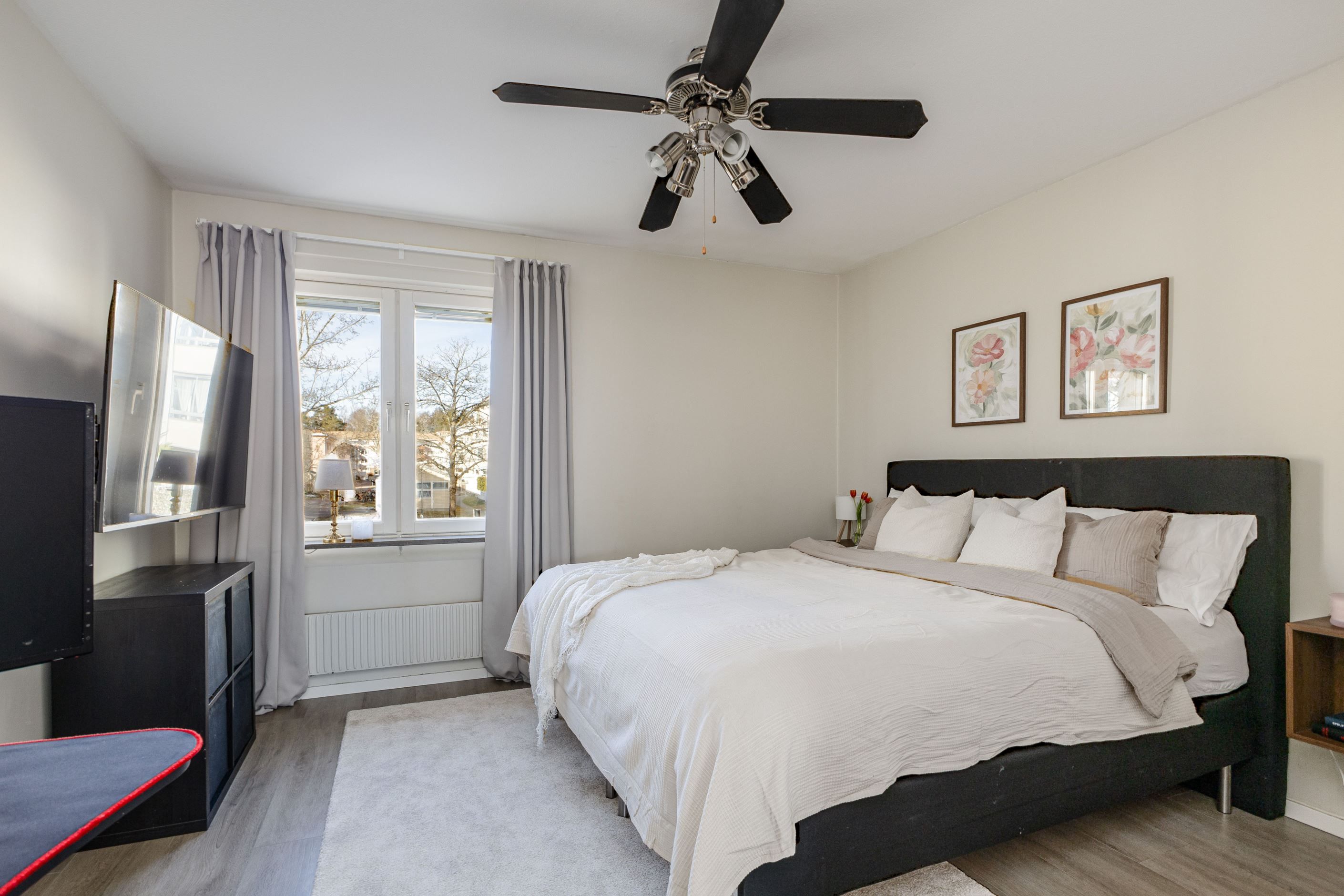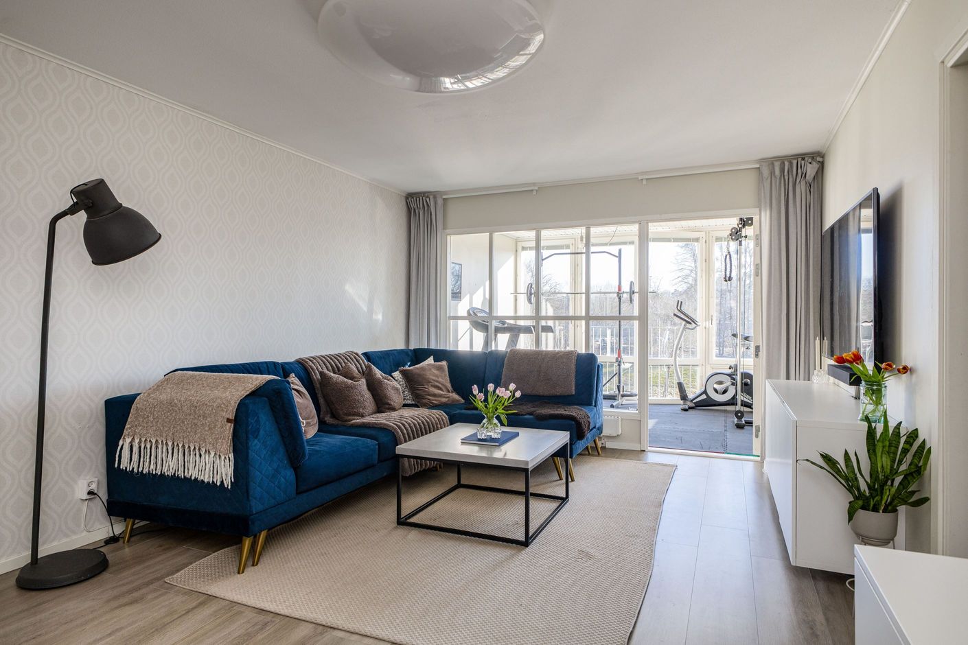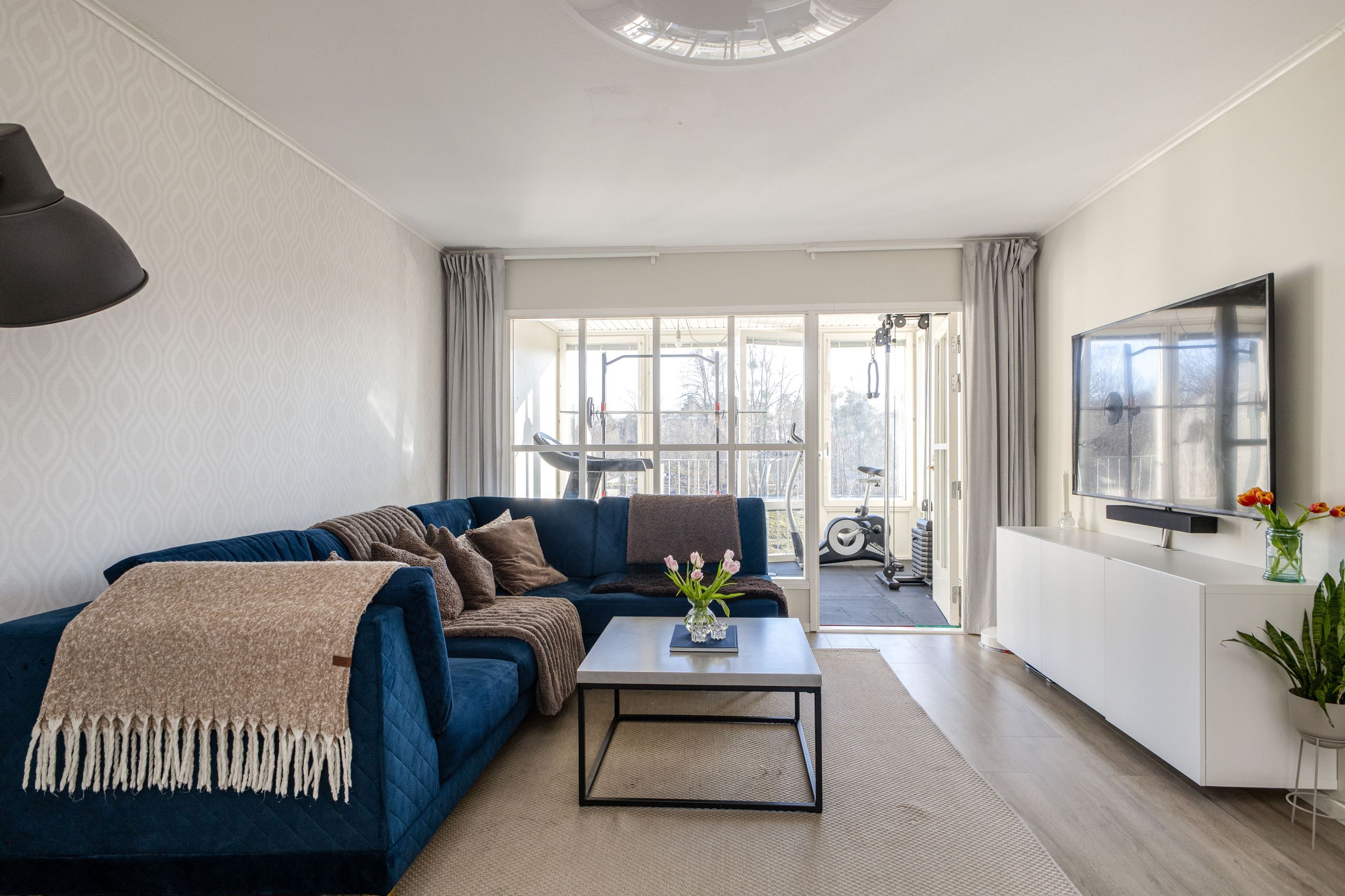 Vardagsrummet är hemmets naturliga samlingsplats för hela familjen - rymligt och perfekt för både avkoppling och sociala tillfällen. Härifrån nås den härliga loggian som fungerar som en förlängning av vardagsrummet och bjuder in till härliga stunder året om. Du utnyttjar denna yta efter dina behov - kanske som ytterligare sällskapsyta, gym som nuvarande säljare eller en plats för din hobby. Vidare rymmer bostaden två rofyllda sovrum samt två badrum - varav ett utrustat med dusch och det andra med badkar, vilket ger både flexibilitet och bekvämlighet i vardagen.