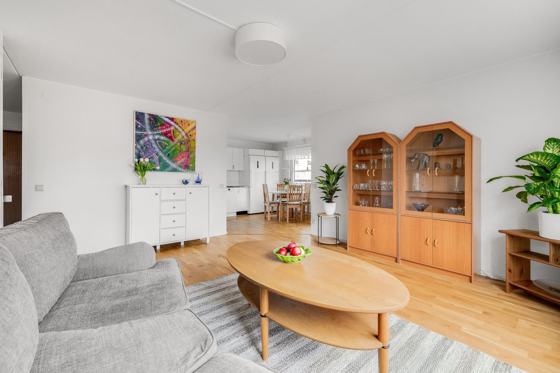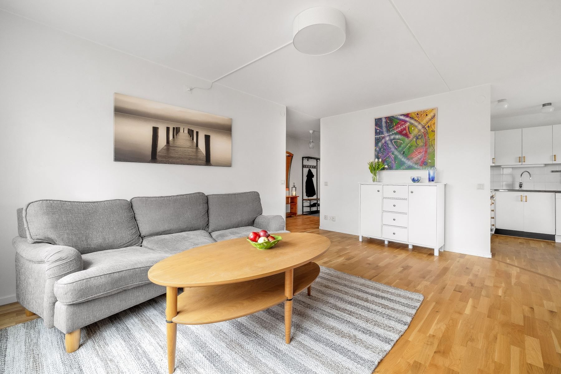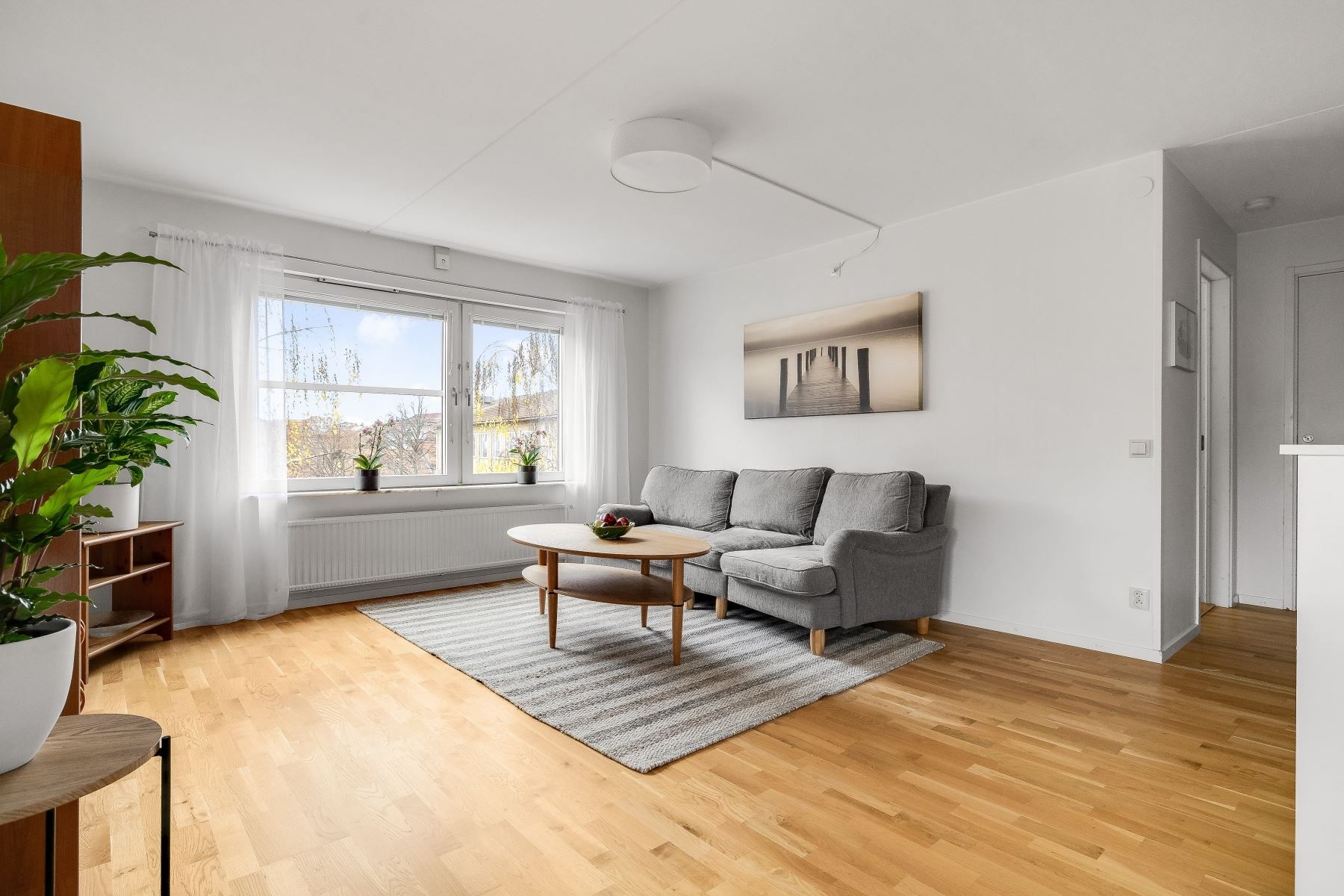 Vardagsrummet är luftigt och lättmöblerat, med gott om plats för både soffgrupp och exempelvis ett skrivbord eller bokhylla. Vardagsrummet har fint ljusinsläpp.