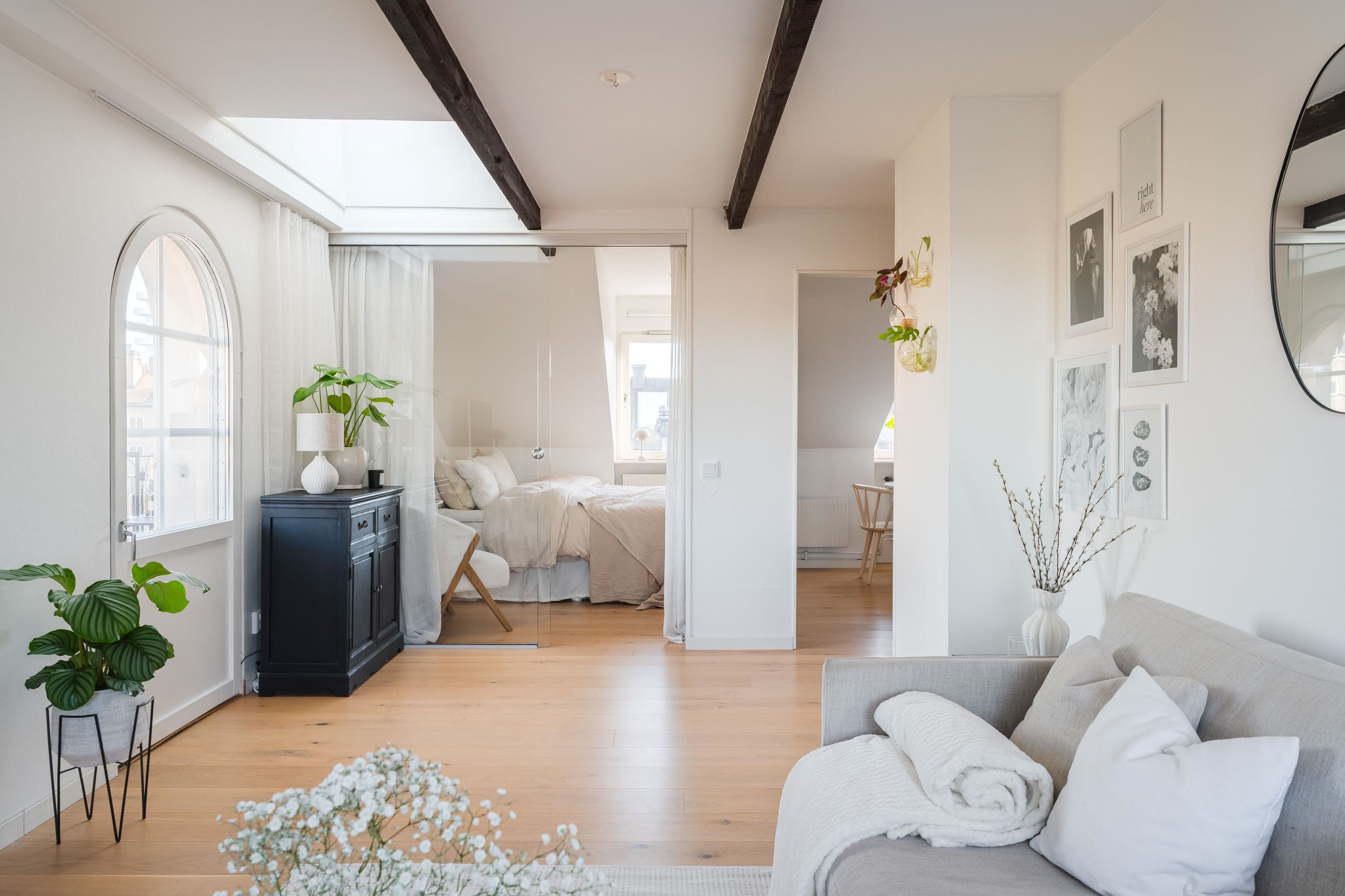 - Vindsvåning med snedtak, takbjälkar och takfönster!