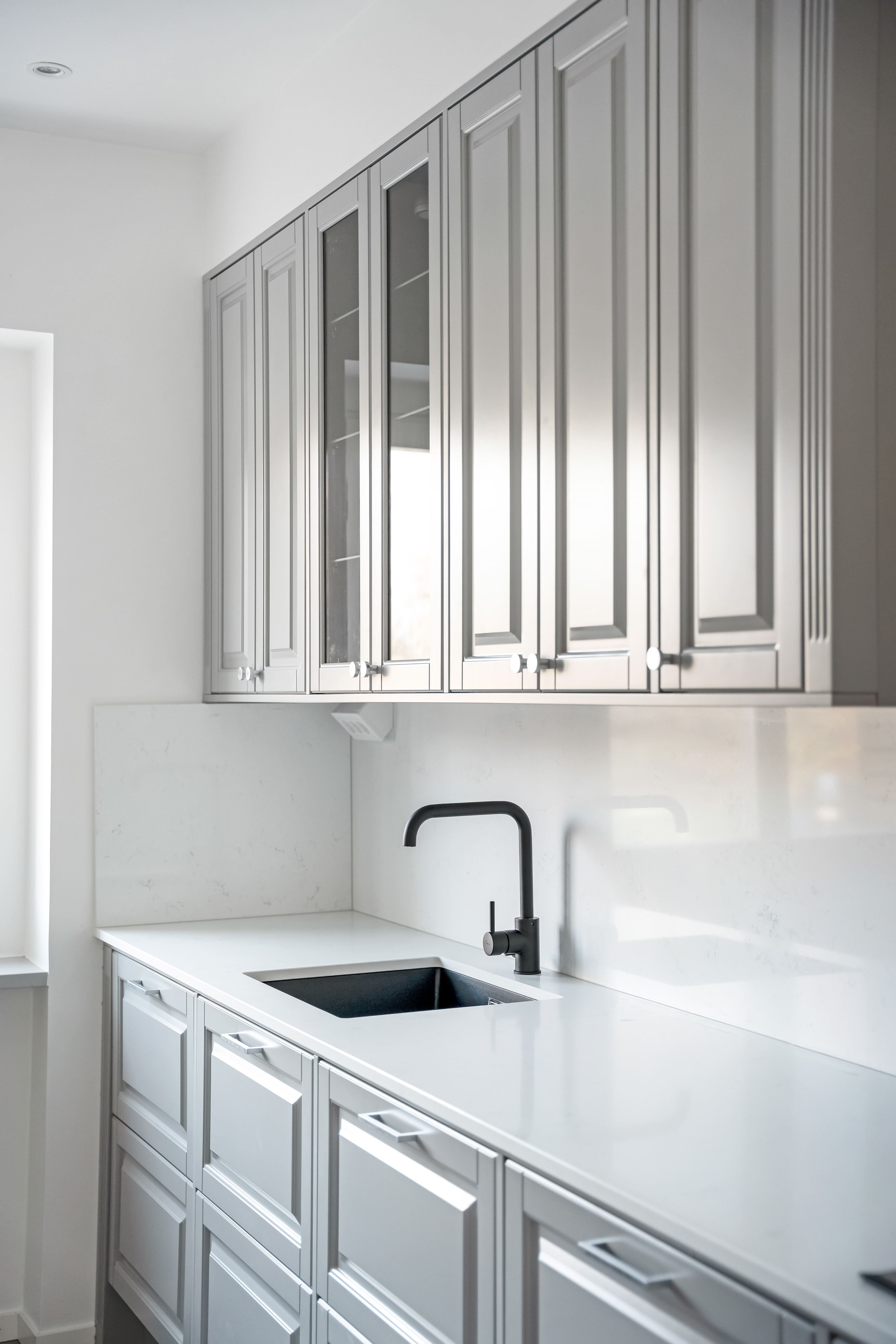Köket är ljust och praktiskt inrett, med en snygg kompositsten-bänkskiva och rostfria vitvaror. Här kan du enkelt ha ditt matbord. Det stora vardagsrummet ger plats för både soffa och matsalsbord. Lägenheten har också två sovrum och en balkong med (kvällssol) från vardagsrummet.