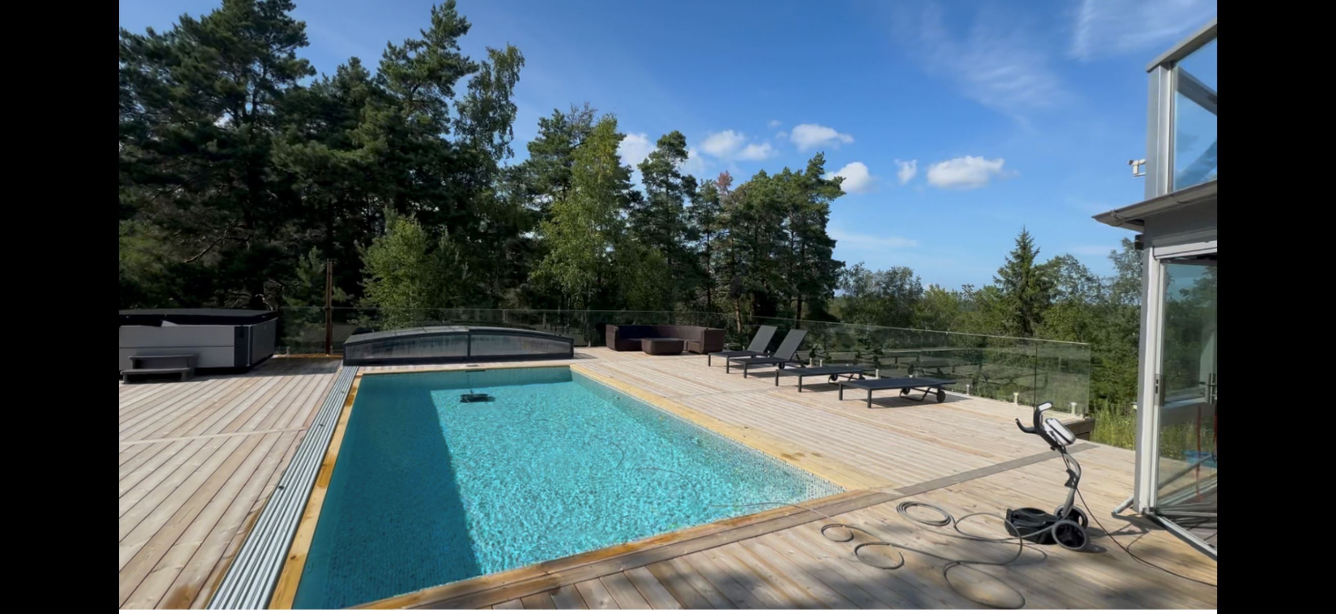 På en stillsam återvändsgata, nära glittrande hav och skyddade vikar finner vi denna rymliga och påkostade villa om dryga 300 kvm. Här bjuds på högt och fritt läge med vacker utsikt, spabad, pool och utedusch. Den stora altanen med solchanser långt in på kvällen blir en given plats för sommarens alla stunder. Det finns även en fin terrass och en inglasad loungedel med bar. Villan är arkitektritad och lösvirkesbyggd och har genomgått omfattande förbättringar under 2024-2025. Här bjuds på underbara sällskapsytor med stora glaspartier, öppen spis och ett elegant kök med exklusiv maskinpark från italienska Lofra. Ett kök som inbjuder till matlagning och social samvaro. Spisen håller restaurangklass med fem gaslågor, keramikhäll, två ugnar varav en med gastrobläck samt tillhörande stekbord och grillplatta. Sovrummen är väl tilltagna i yta, det finns mycket goda förvaringsmöjligheter och de nyrenoverade badrummen bjuder på härlig spa-känsla och bastu. Planlösningen ger fina möjligheter att anpassa huset efter egna behov och livsstilen du vill ha. Då villan har två entréer finns även möjlighet för generationsboende eller för egna företagaren som vill bedriva verksamhet i hemmet. Väl utrustat dubbelgarage och rymlig uppfart med gott om plats för bilar och båtar.