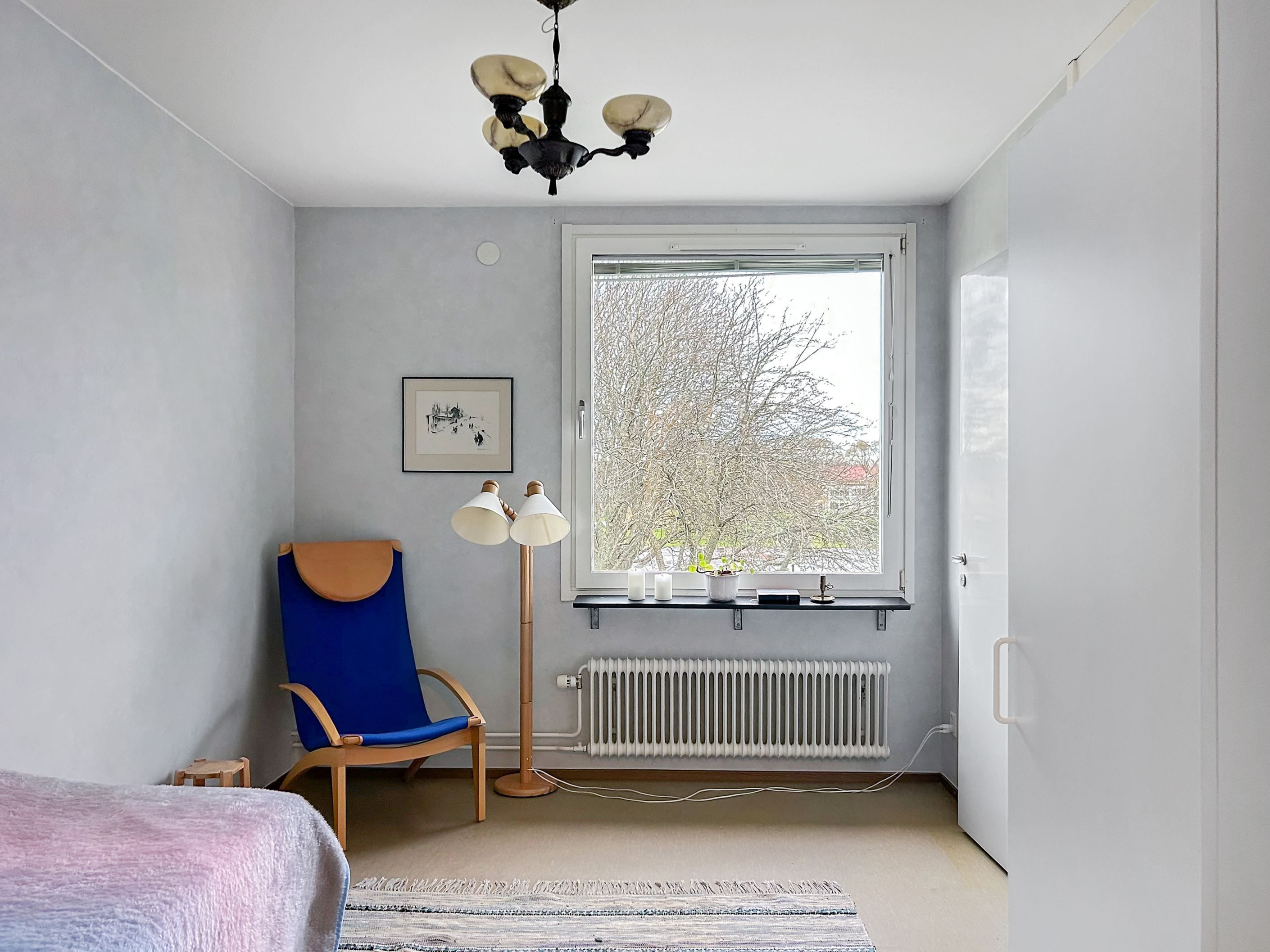 Lägenheten erbjuder två rymliga sovrum, ett ljust vardagsrum samt ett funktionellt kök med gott om förvaring. Balkongen vetter mot den grönskande gården – en perfekt plats för morgonkaffet eller en lugn stund i eftermiddagssolen.