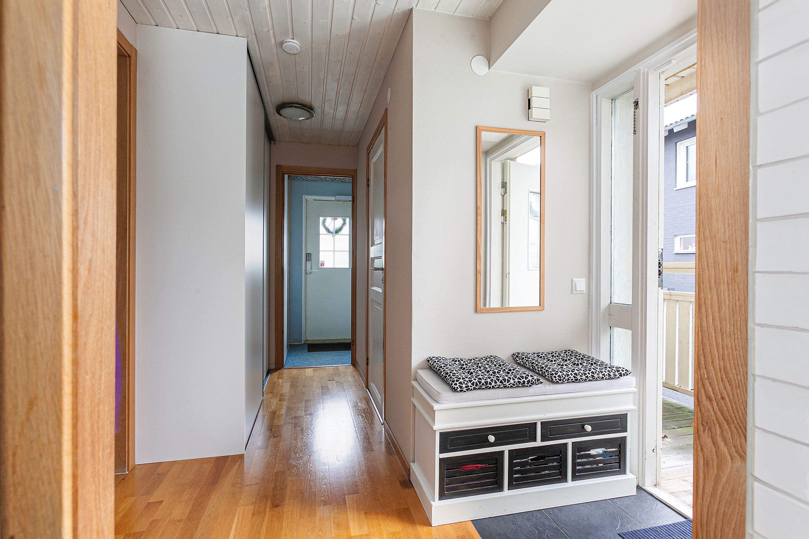 På entréplan erhålles även ett större sovrum med garderober för förvaring.