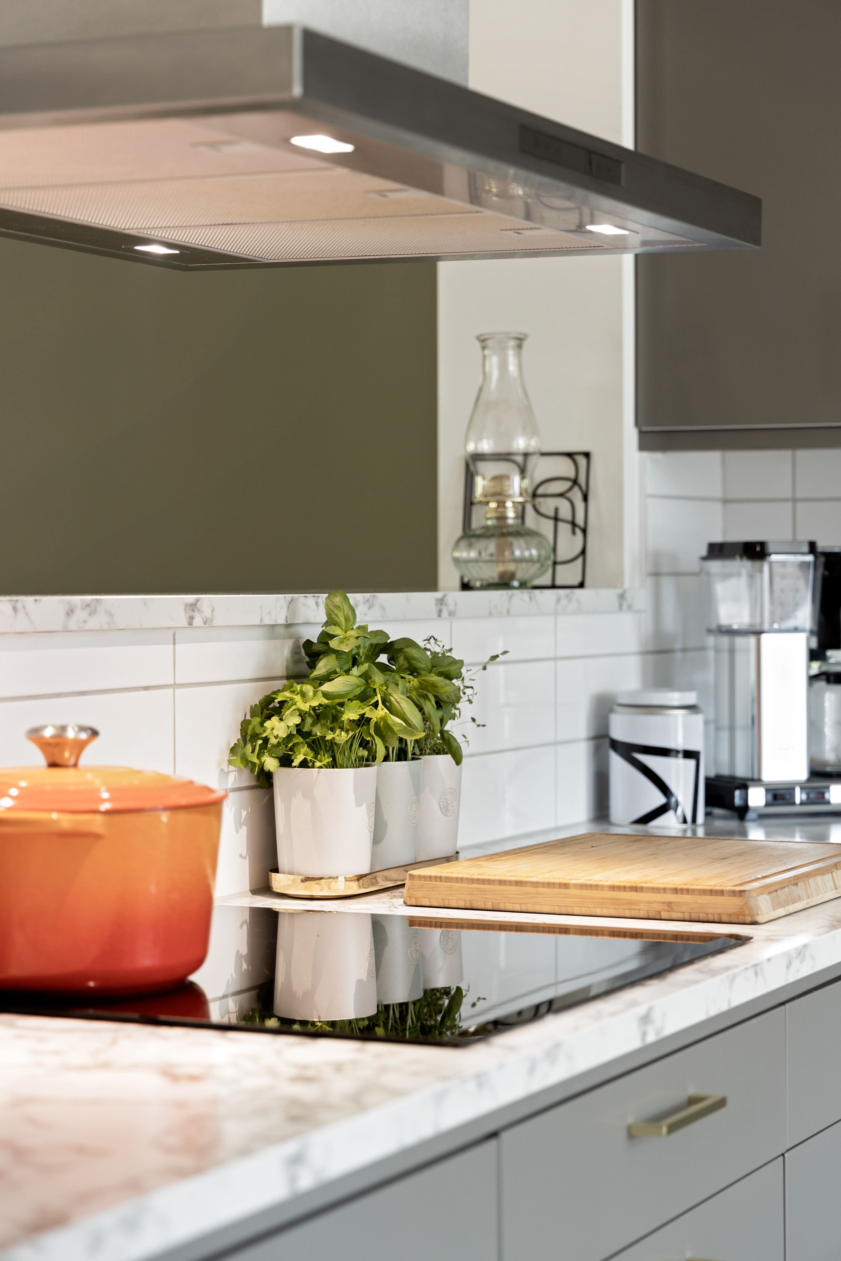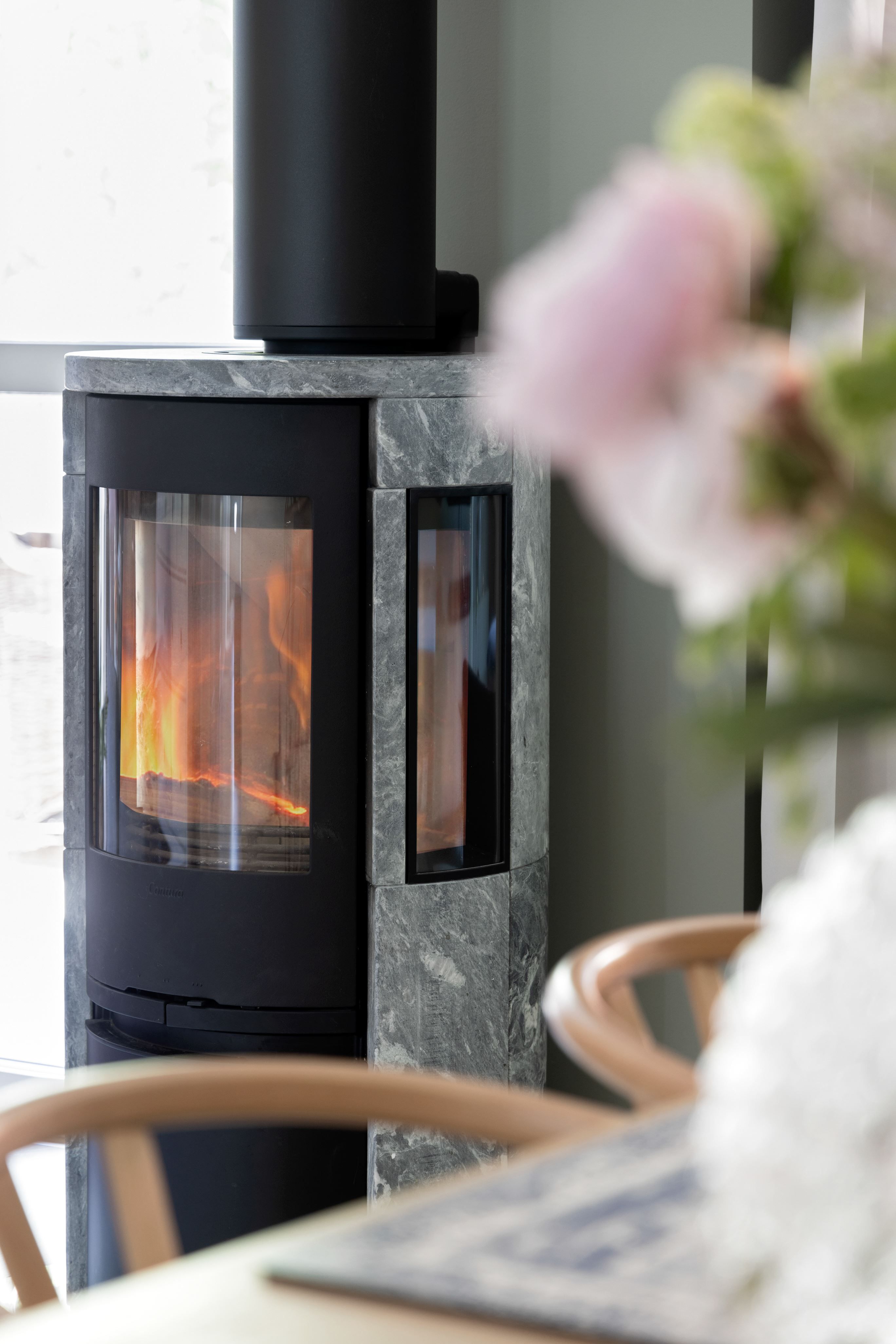 Detta hem är på hela 130kvm fördelat på två plan. Planlösningen är väl genomtänkt med de sociala ytorna i entréplan medan den privata delen disponeras en trappa upp. Köket från Vedum har rostfria vitvaror från Siemens och är i delvis öppen planlösning till vardagsrummet med bl.a. en stilren täljstenskamin samt access till tralldäck och trädgård som ramas in av ett staket.