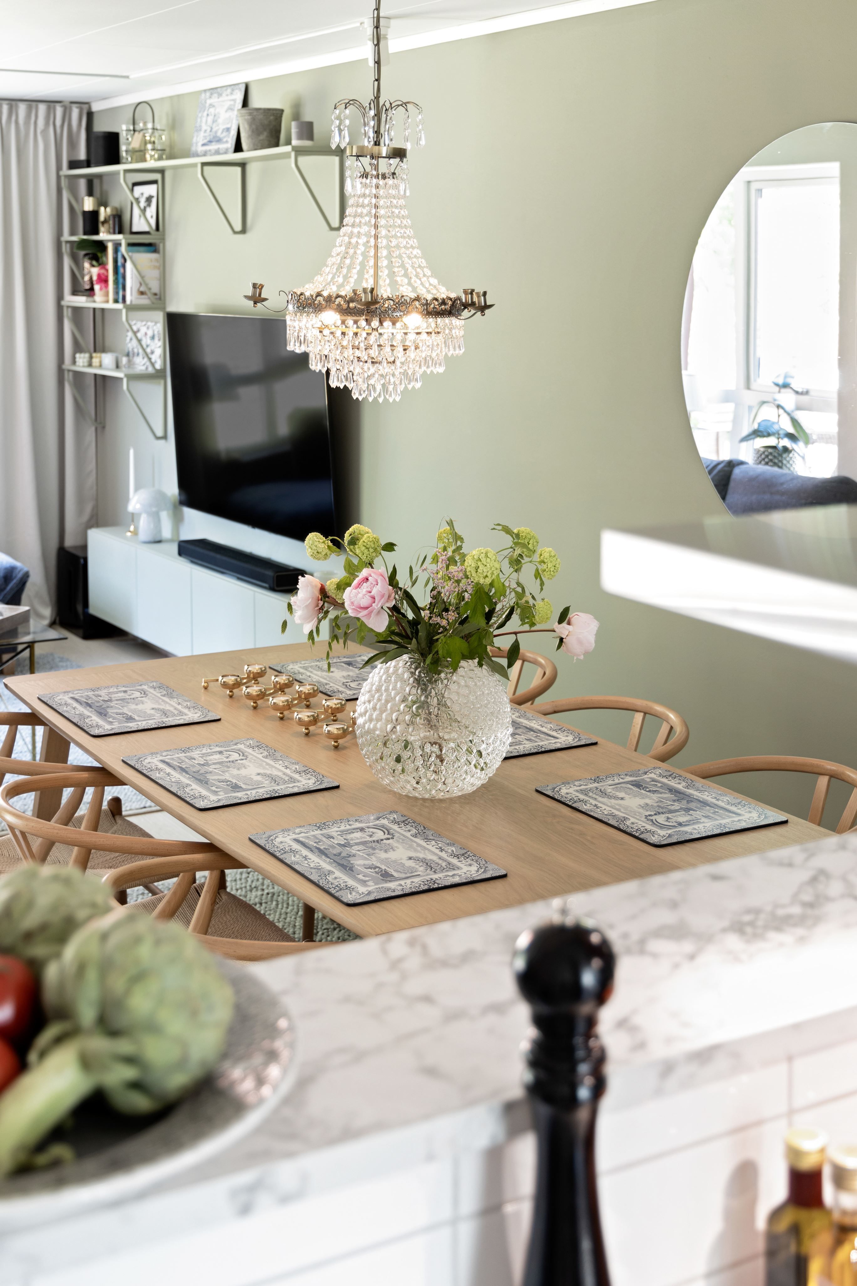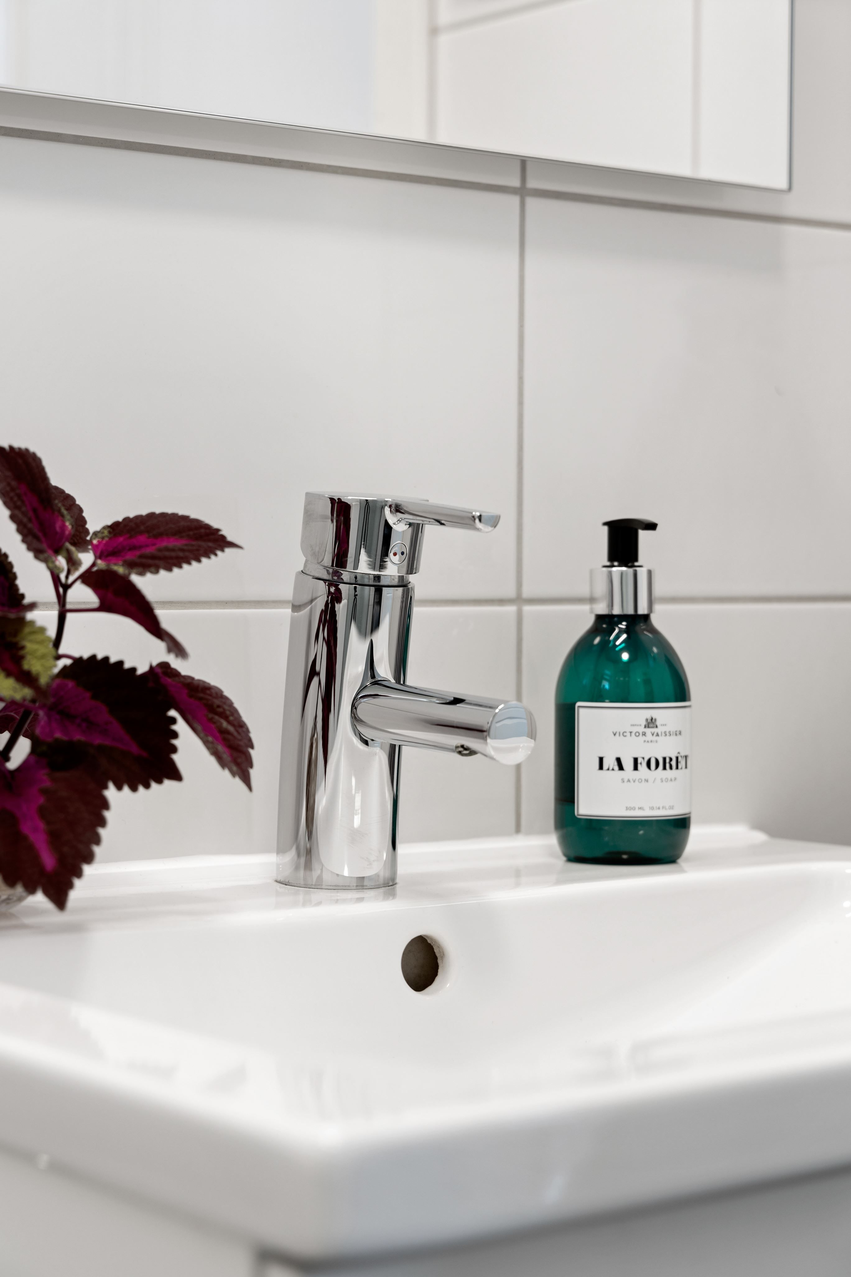 På övre plan väntar tre generösa sovrum och ett allrum samt ett rymligt badrum med badkar. Ytterligare ett badrum är placerat i anslutning till hallen, båda med inredning från Vedum. För extra bekvämlighet finns det en tvättstuga/groventré med direktanslutning till carporten. Carporten är utrustad med en elbilsladdare från Charge Amp installerad. År 2023 monterades solceller på husets tak med en installerad effekt på 7,5 kWp. I carporten finns också ett kallförråd.