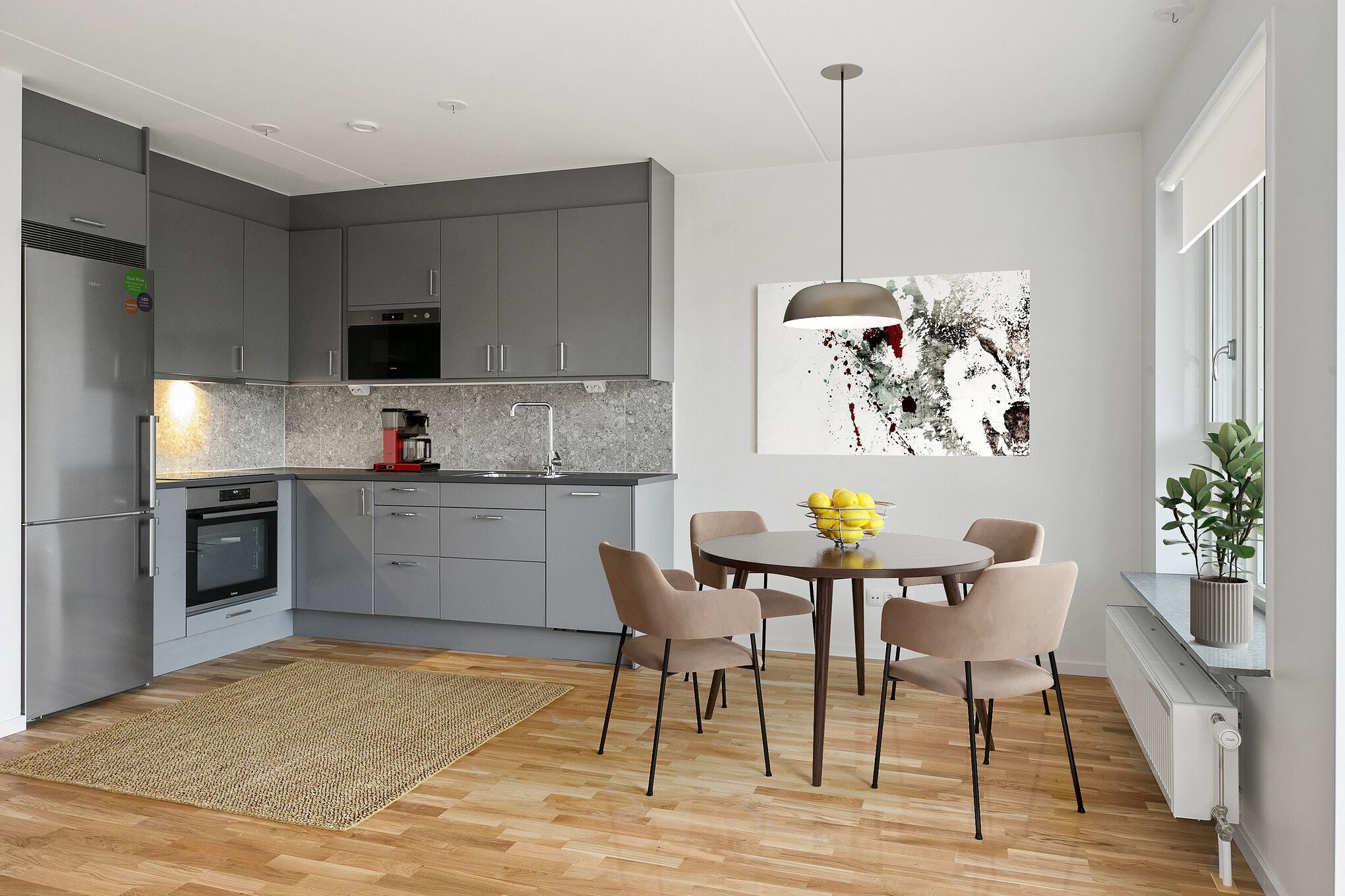 Återigen har vi fått förtroendet att sälja en elegant välplanerad 1:a om 34 kvm, som är helt ny! Lägenheten är mycket välutrustad och har en stor balkong med sydvästläge med grönskande utsikt. Här bor ni ett par minuters promenad från fina kommunikationer, shopping och salta klippor. Fin förening med låga avgifter!