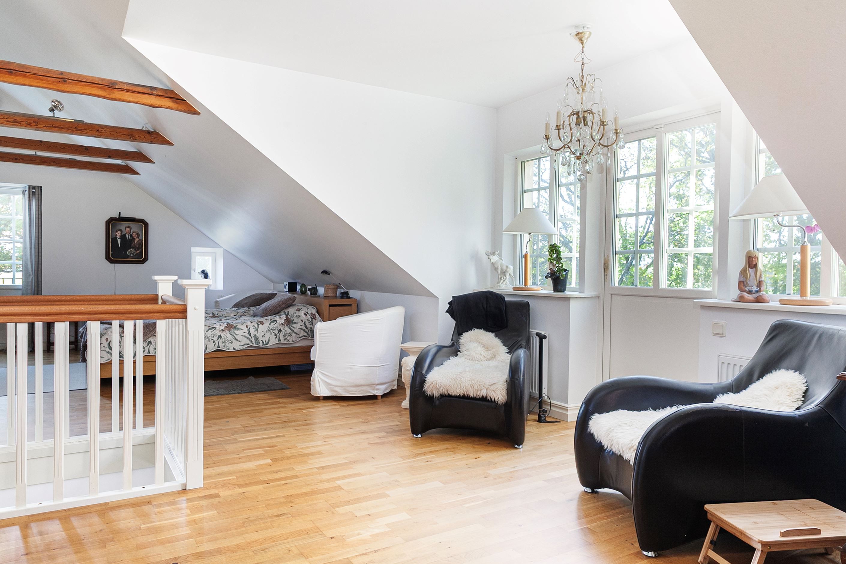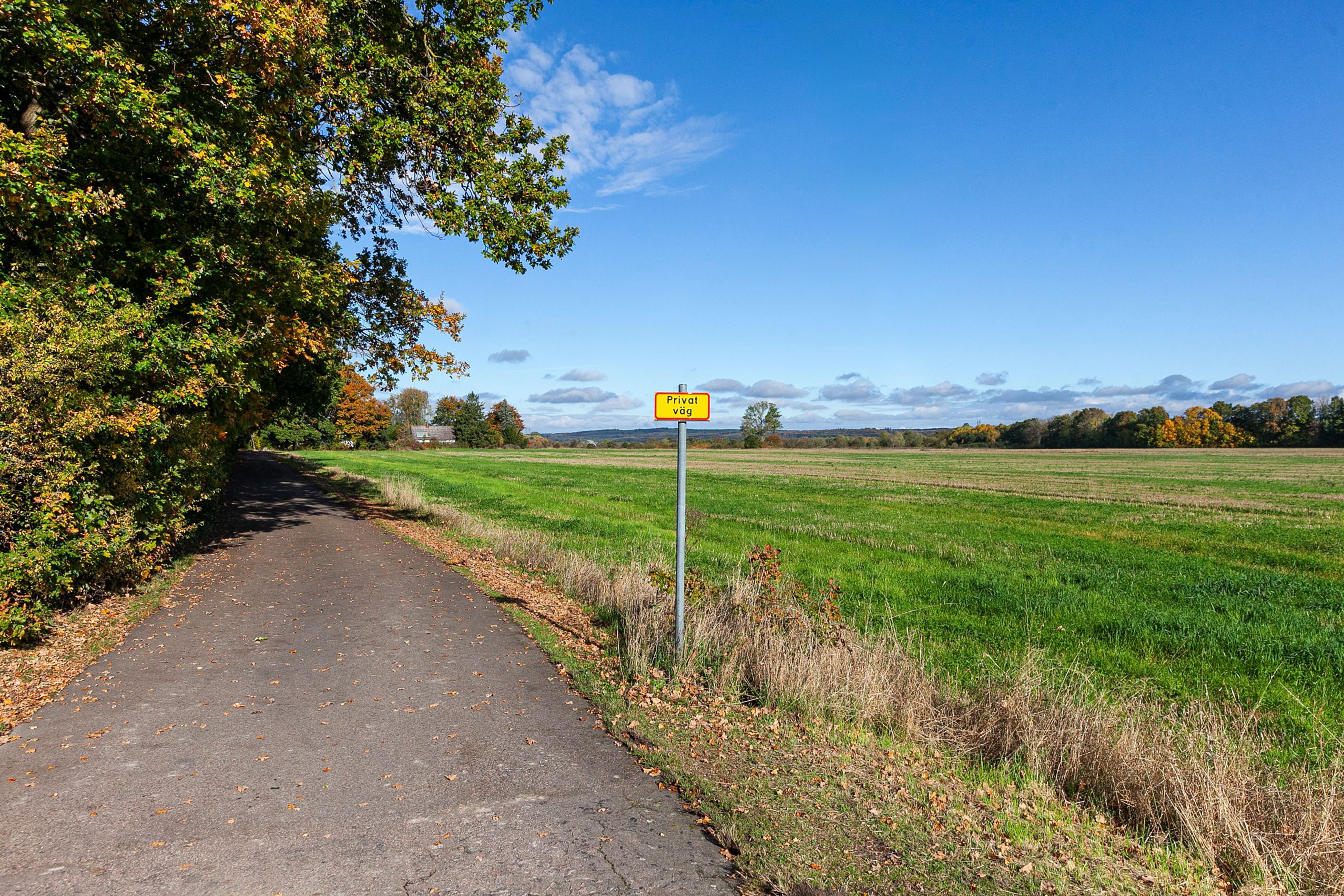 Omgivningen präglas av stillhet och fri utsikt över fälten, samtidigt som de stora träden kring huset ger insynsskydd och en känsla av lugn och avskildhet. Här bor man privat och lantligt, med alla möjligheter att njuta av naturen precis utanför dörren.