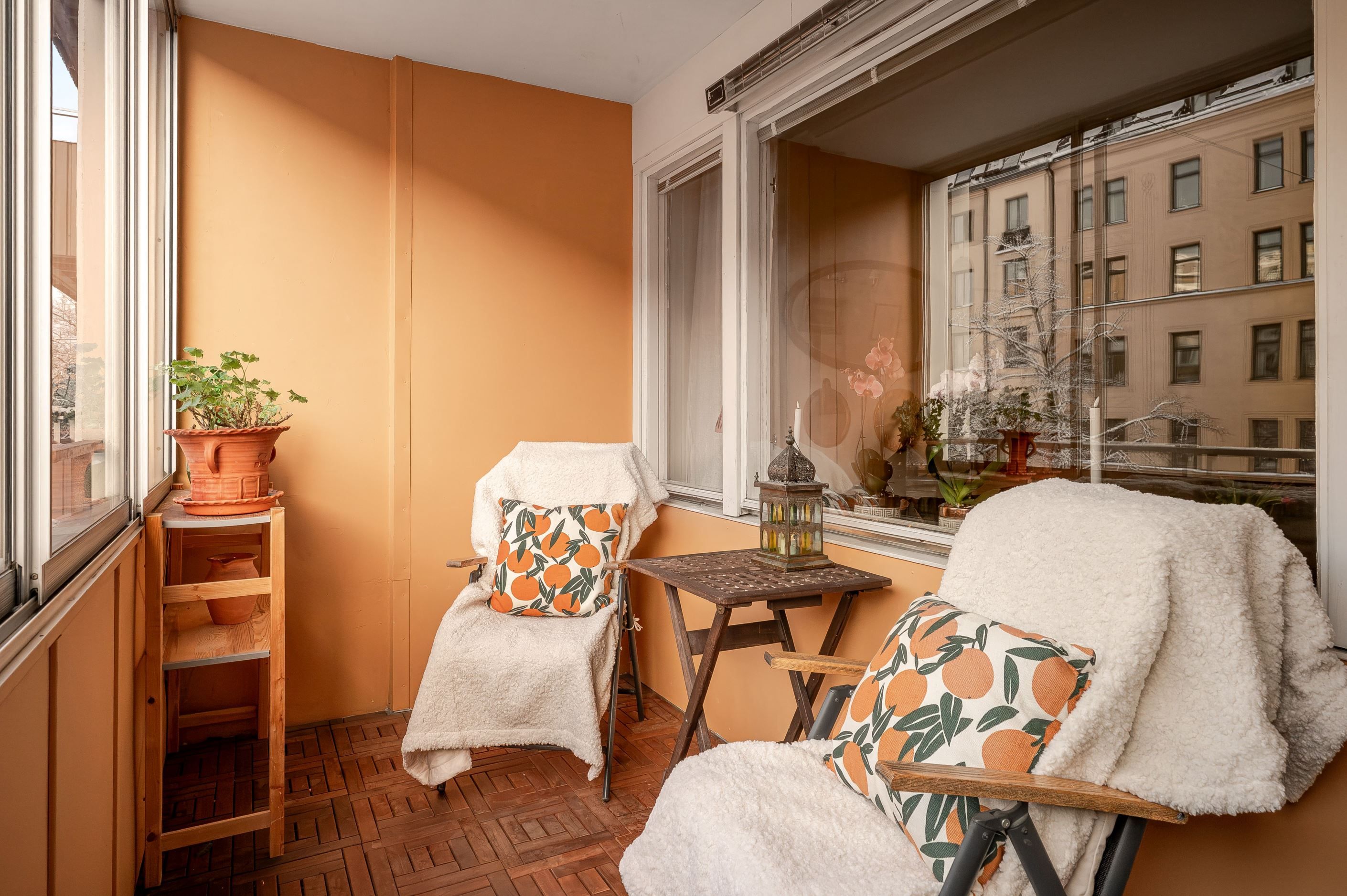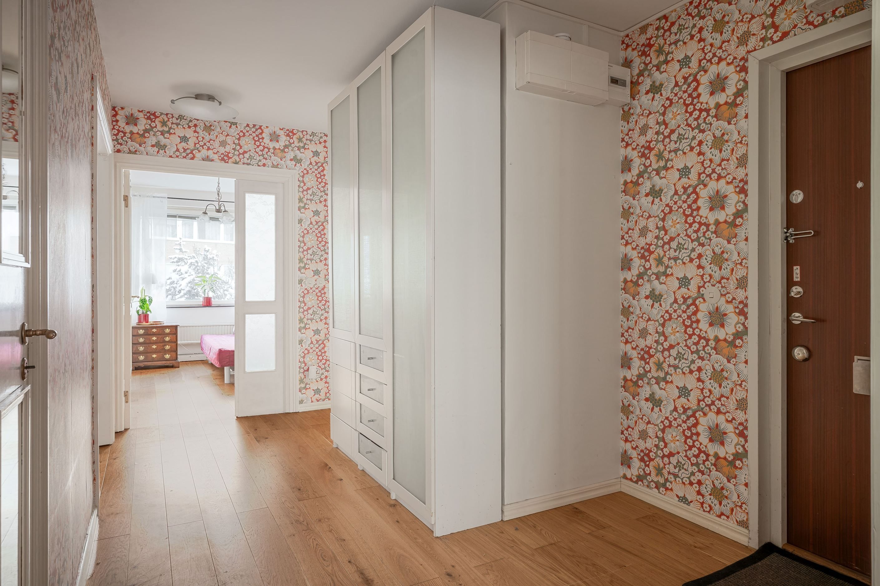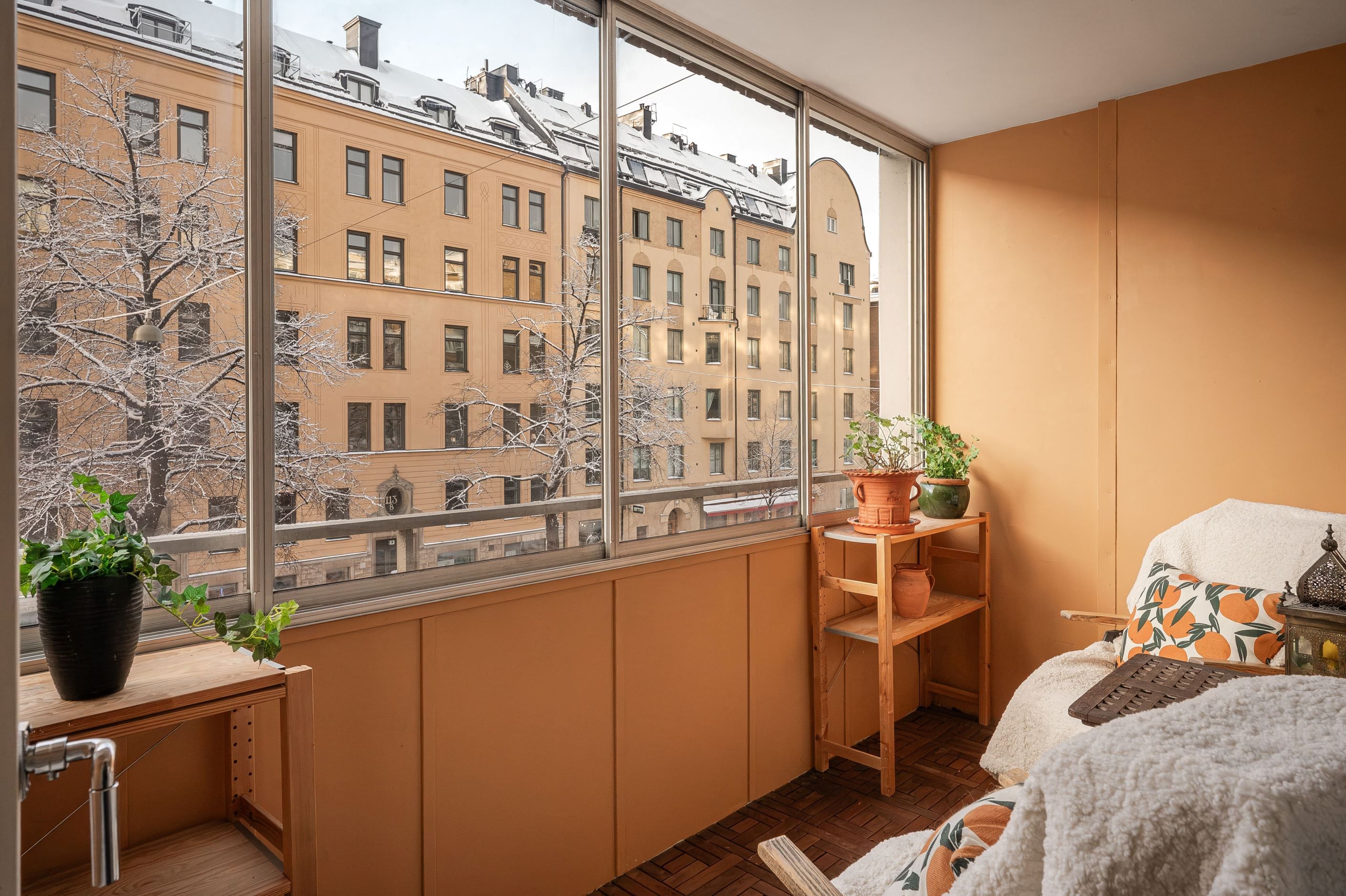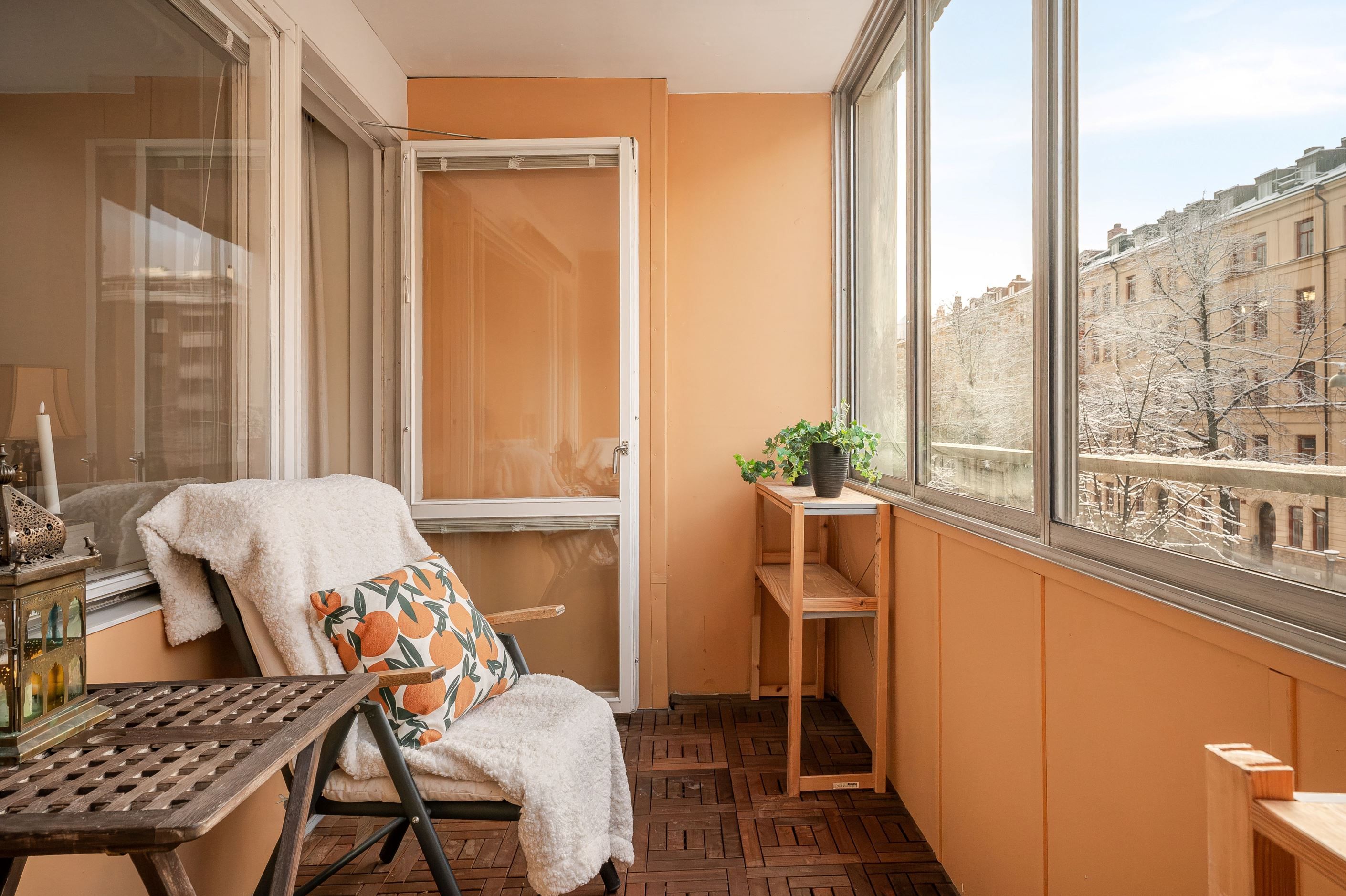 Bostaden erbjuder en genomtänkt planlösning med generösa sällskapsytor och utgång till en stor inglasad balkong. De två sovrummen är rofyllt belägna mot en stor och lummig innergård, vilket ger ett skönt lugn och en fin utsikt.